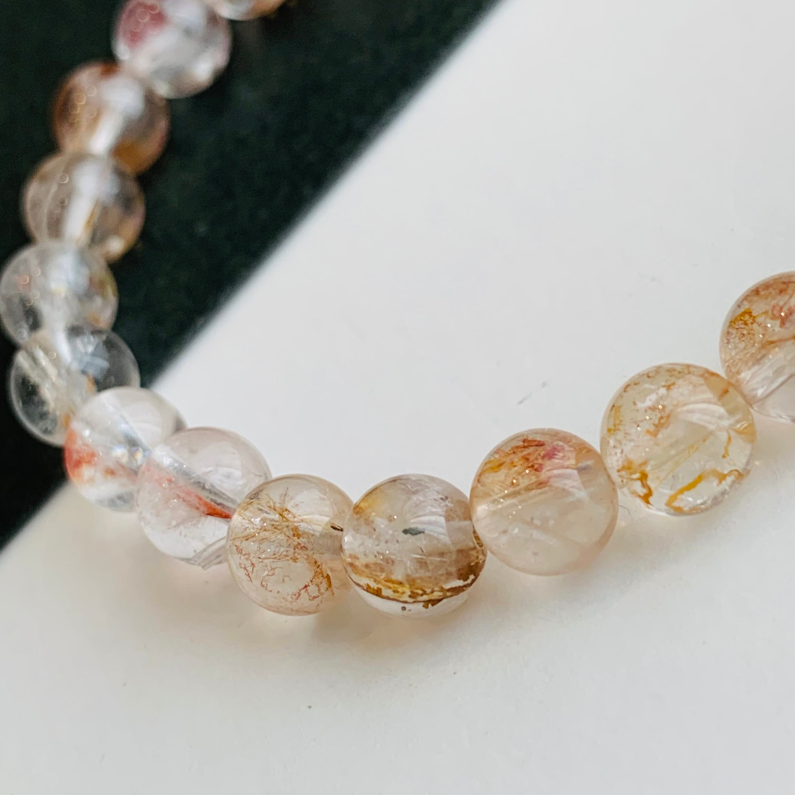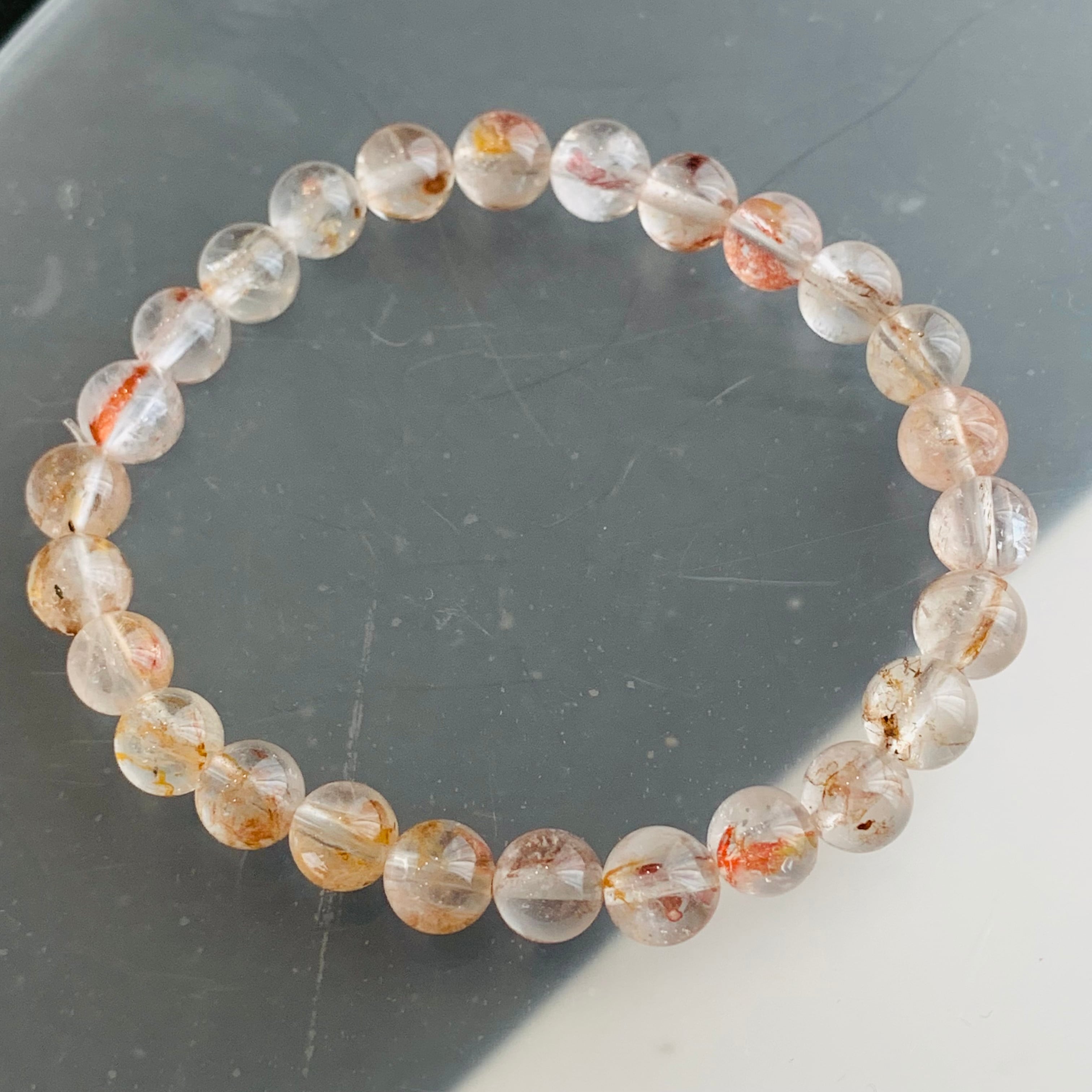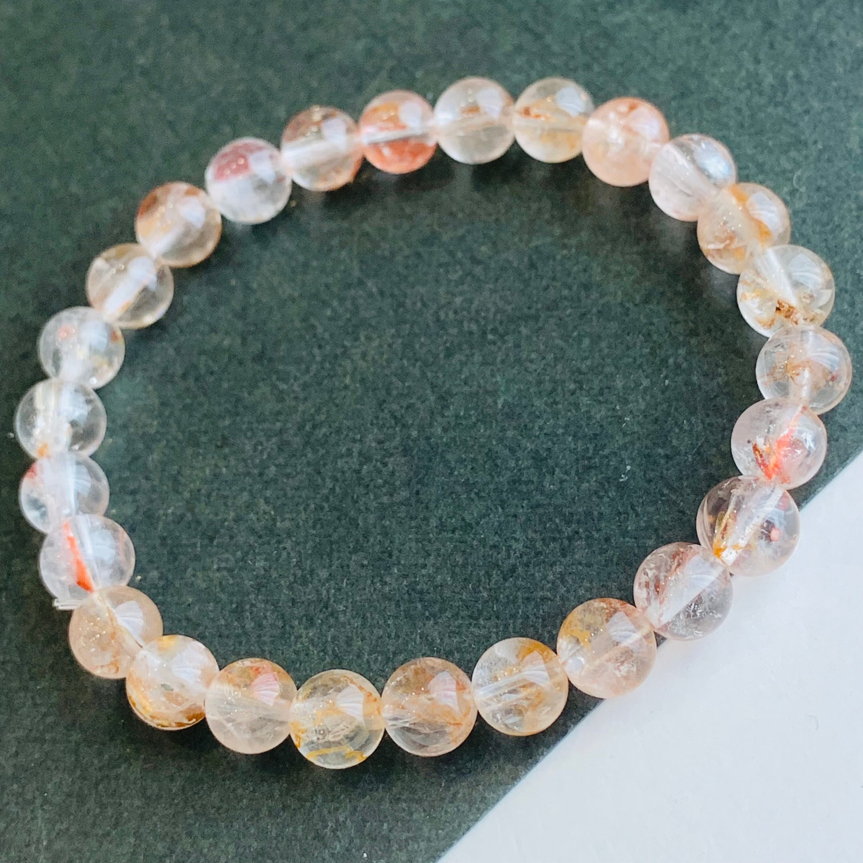 キャルコパイライト入り水晶ブレスレット 黄銅鉱 レア No.17 虹入り