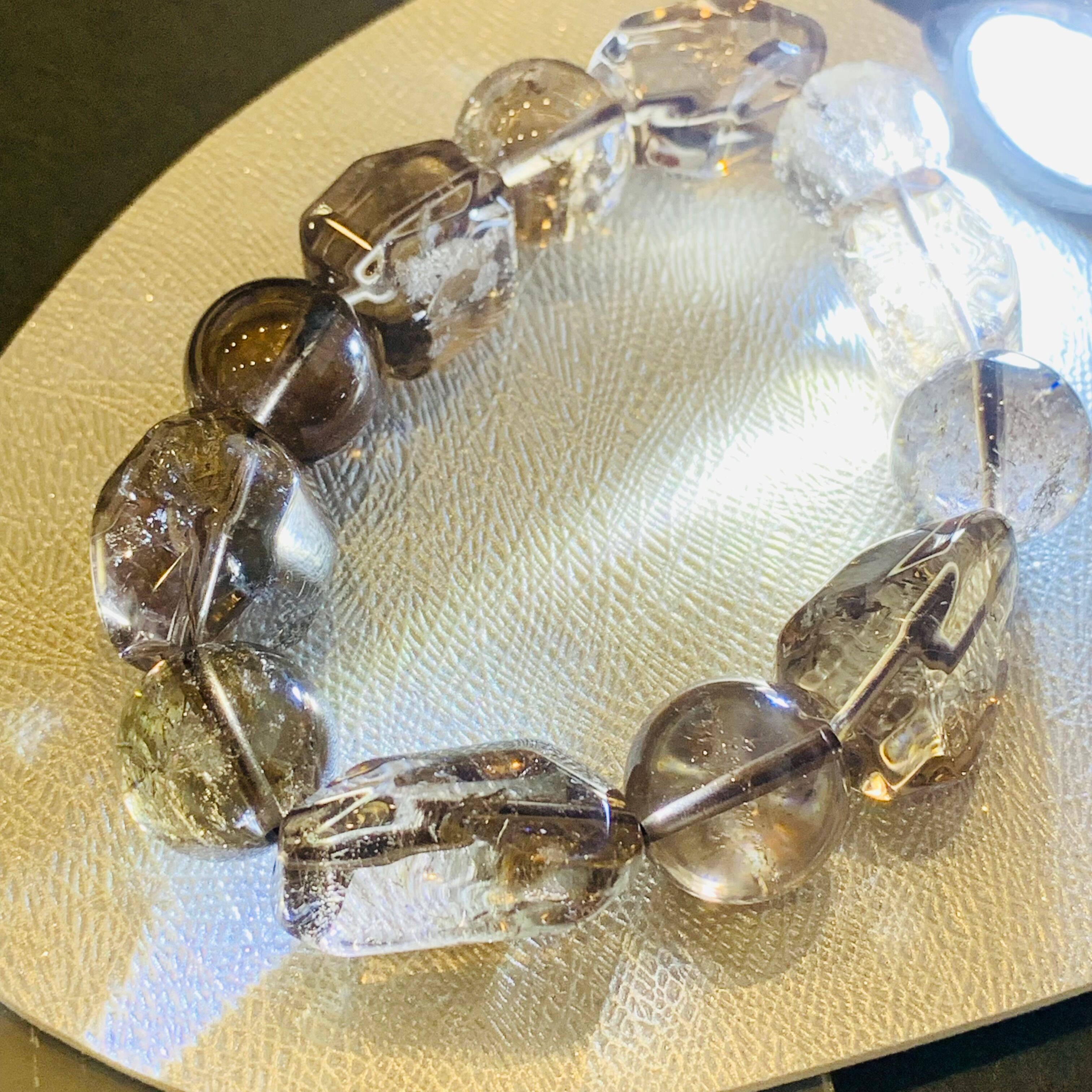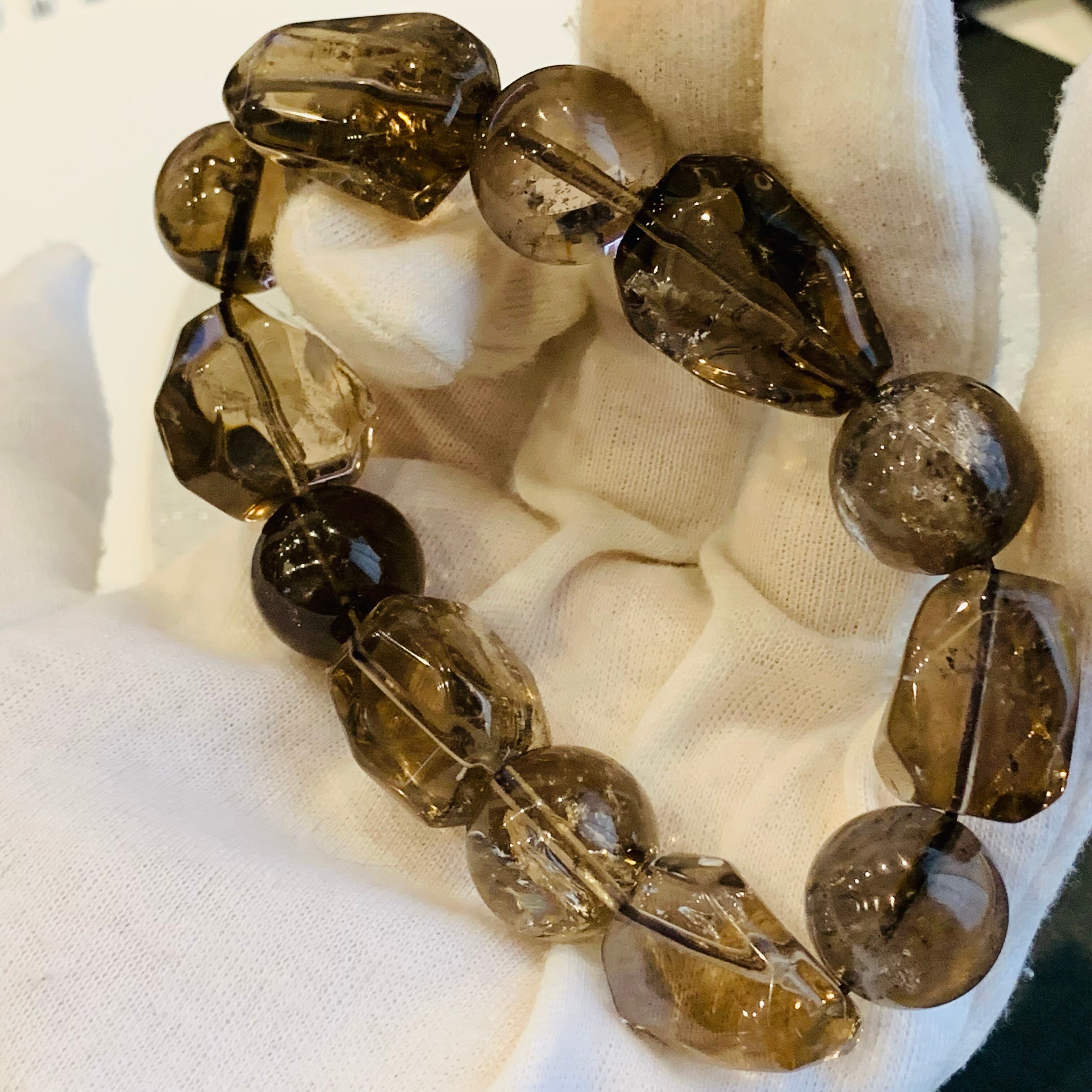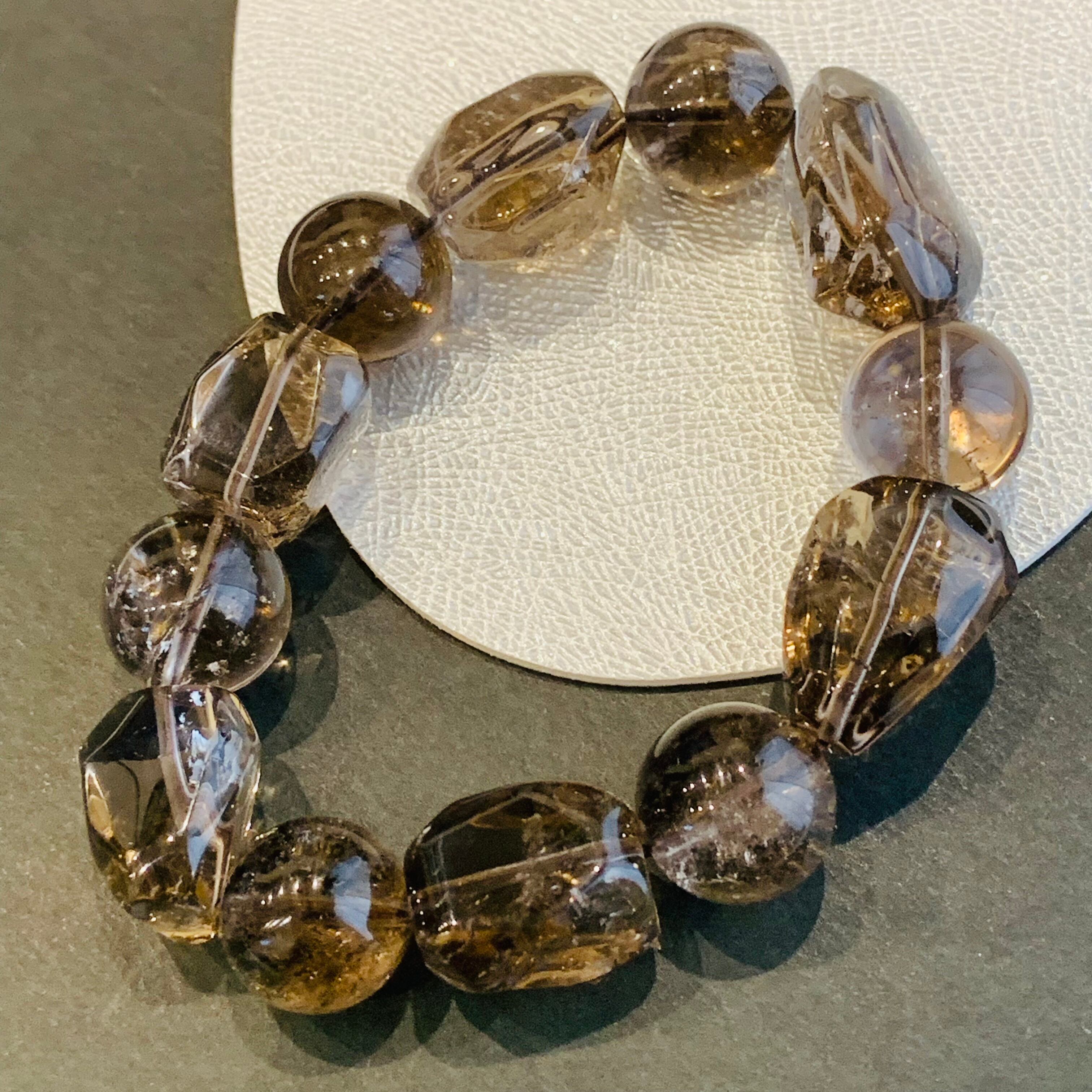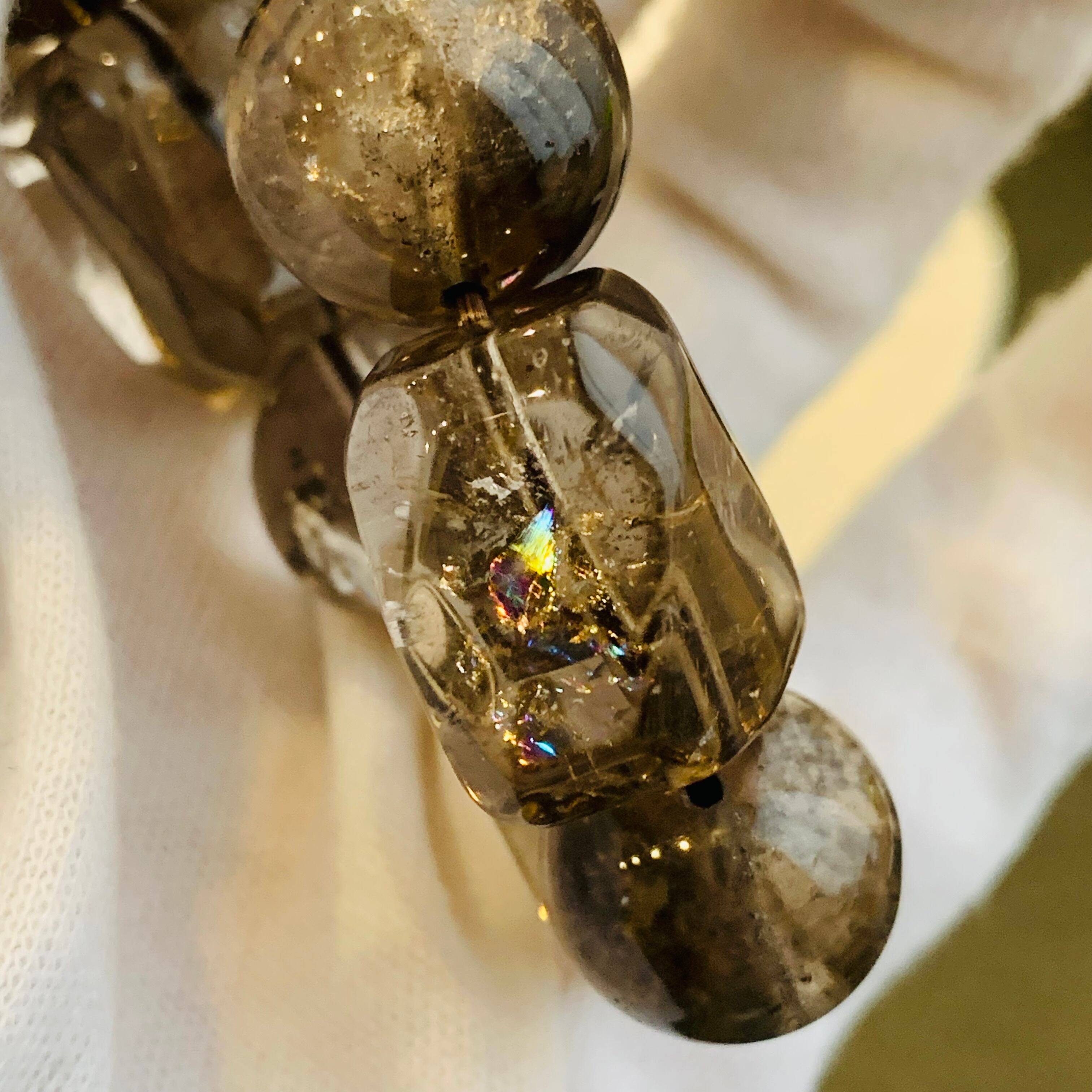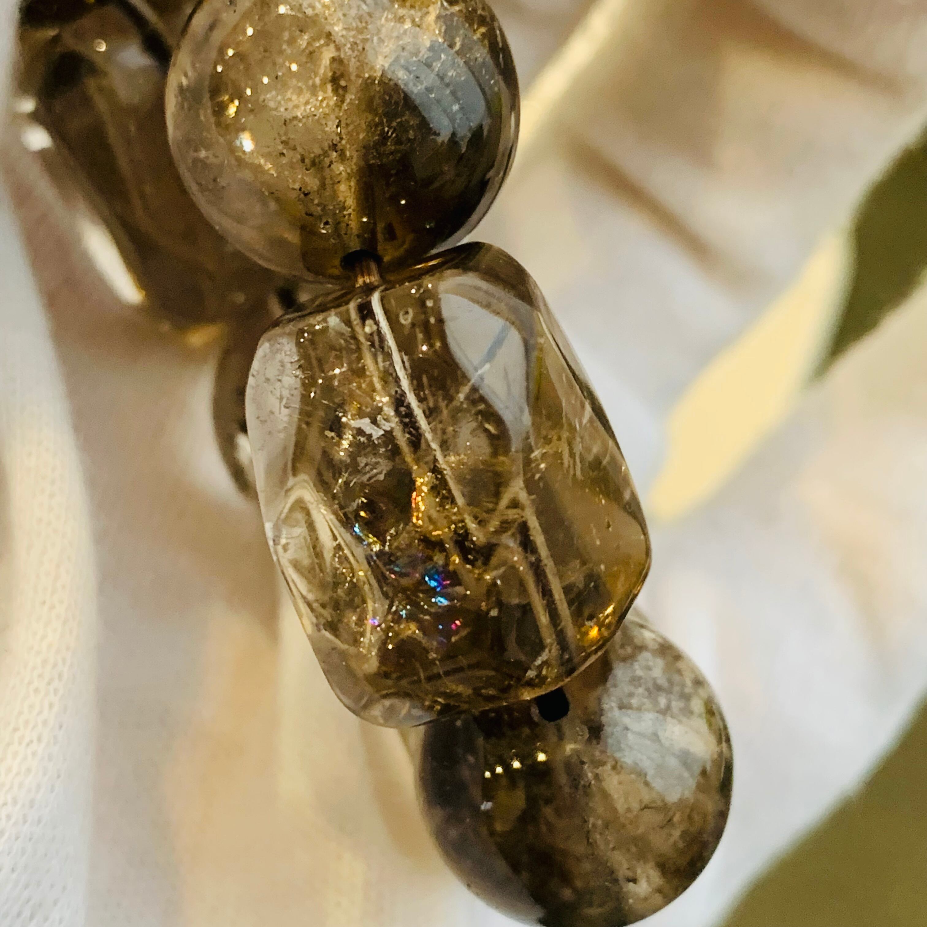 スモーキークォーツブレスレット 大珠 虹多い 天然石パワーストーン No.20