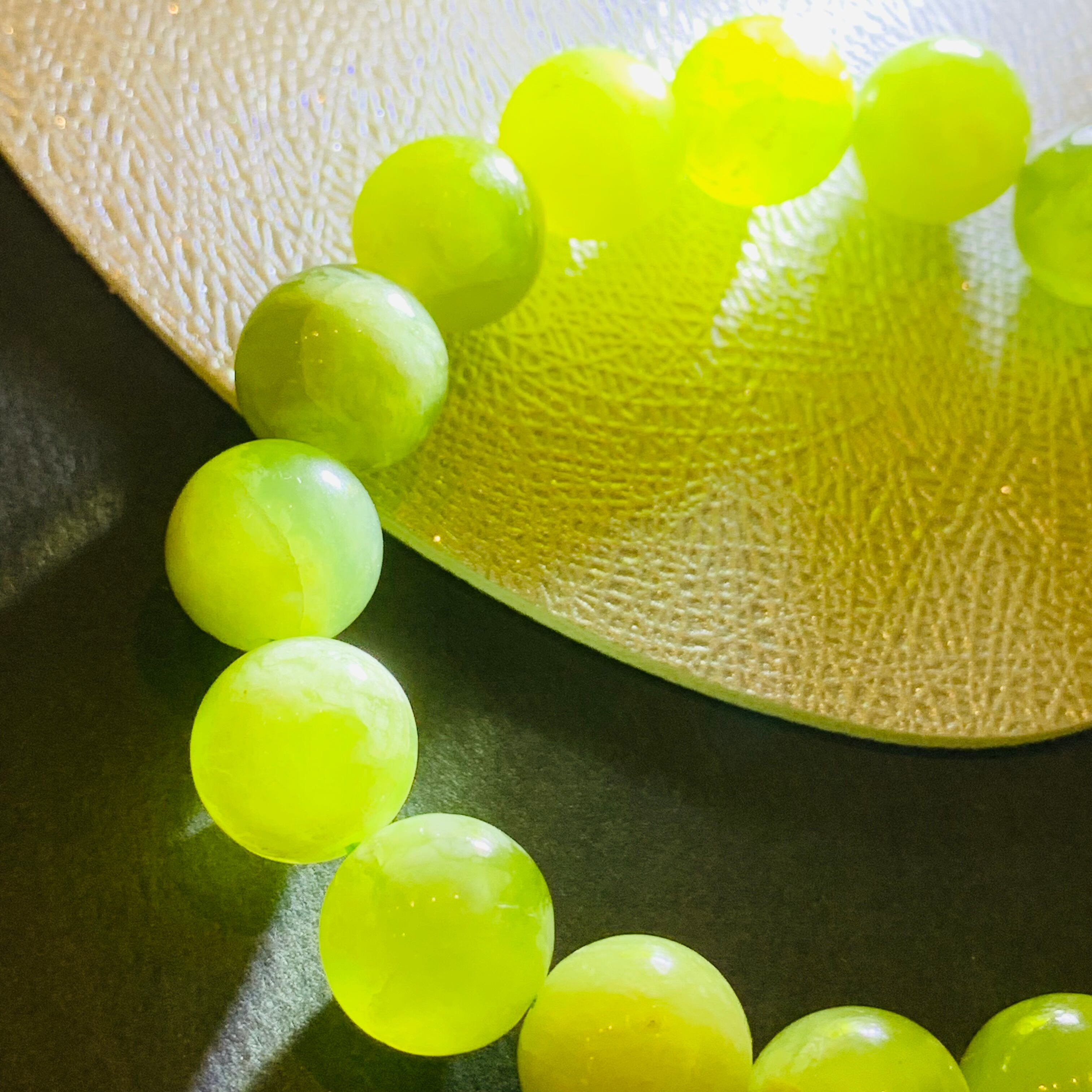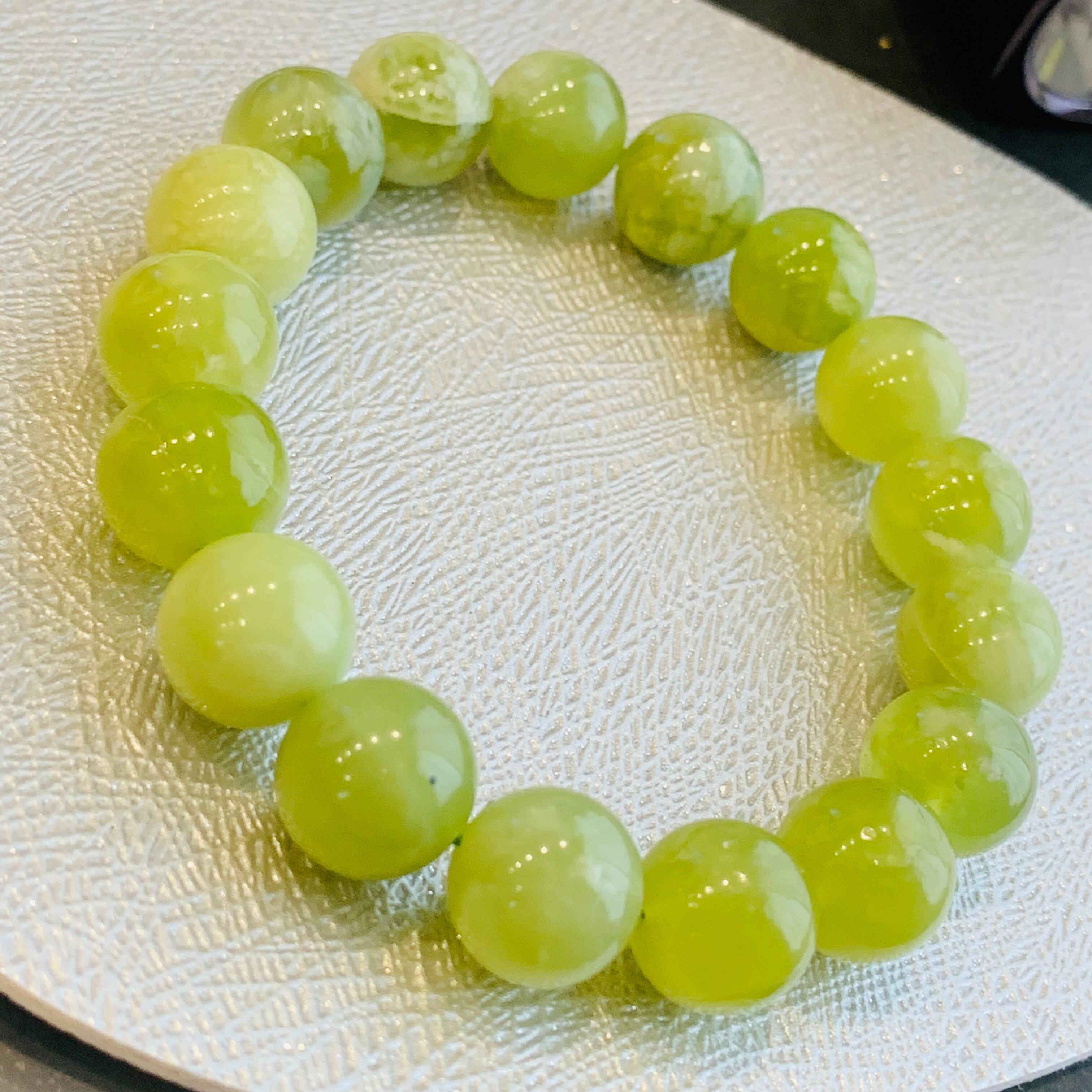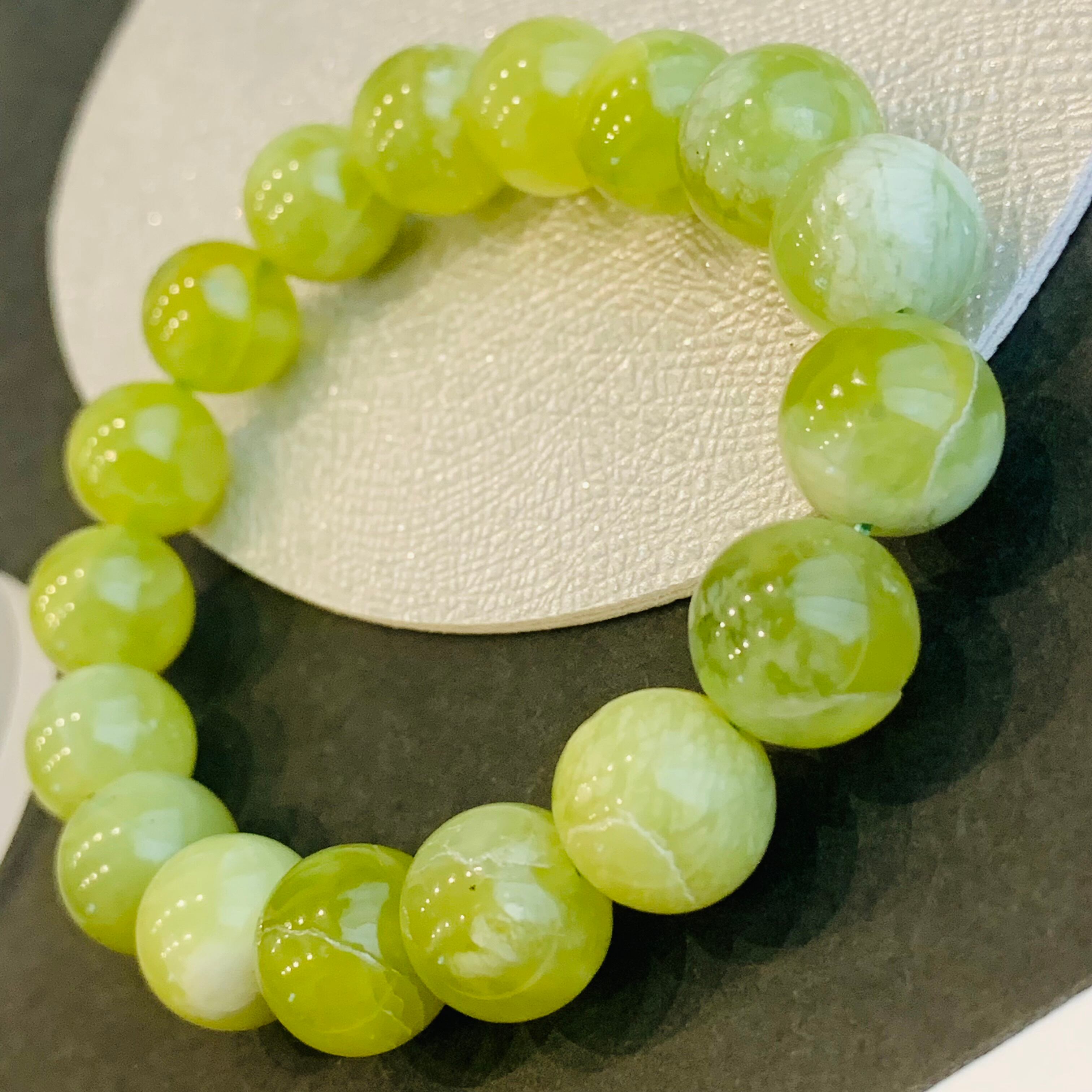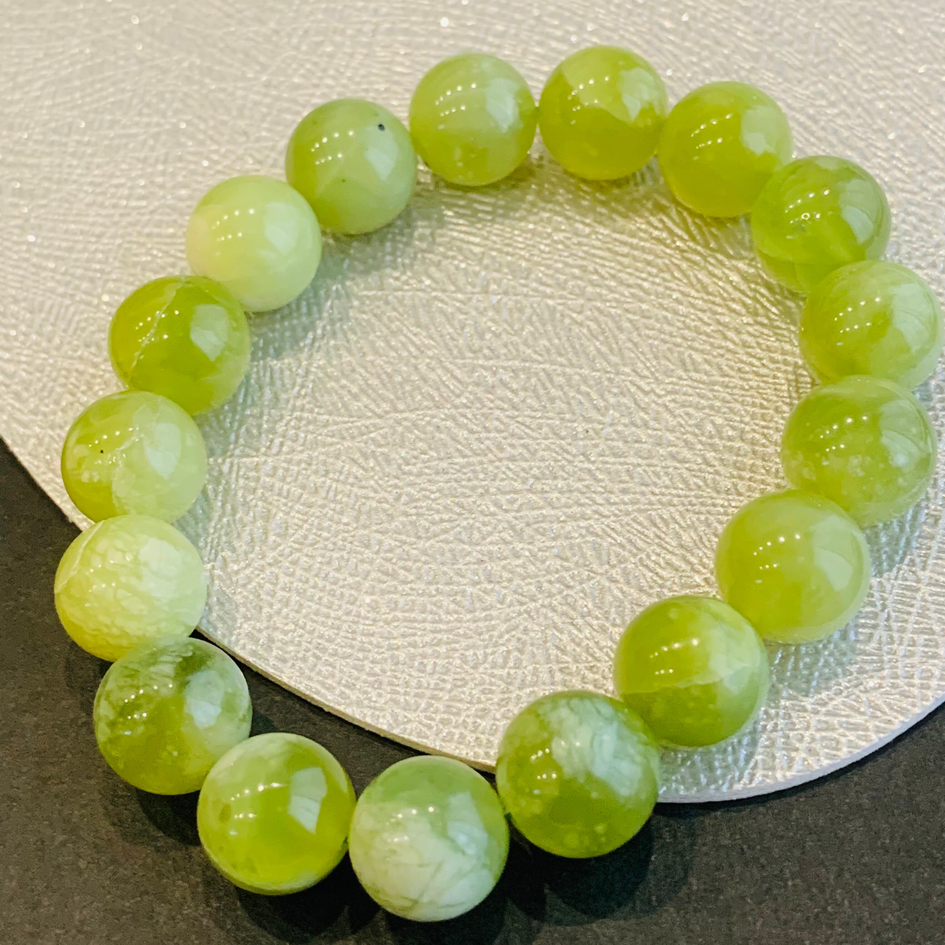 鉱物的には蛇紋岩(サーペンティン)の仲間で、透明感のある黄緑色の美しい石