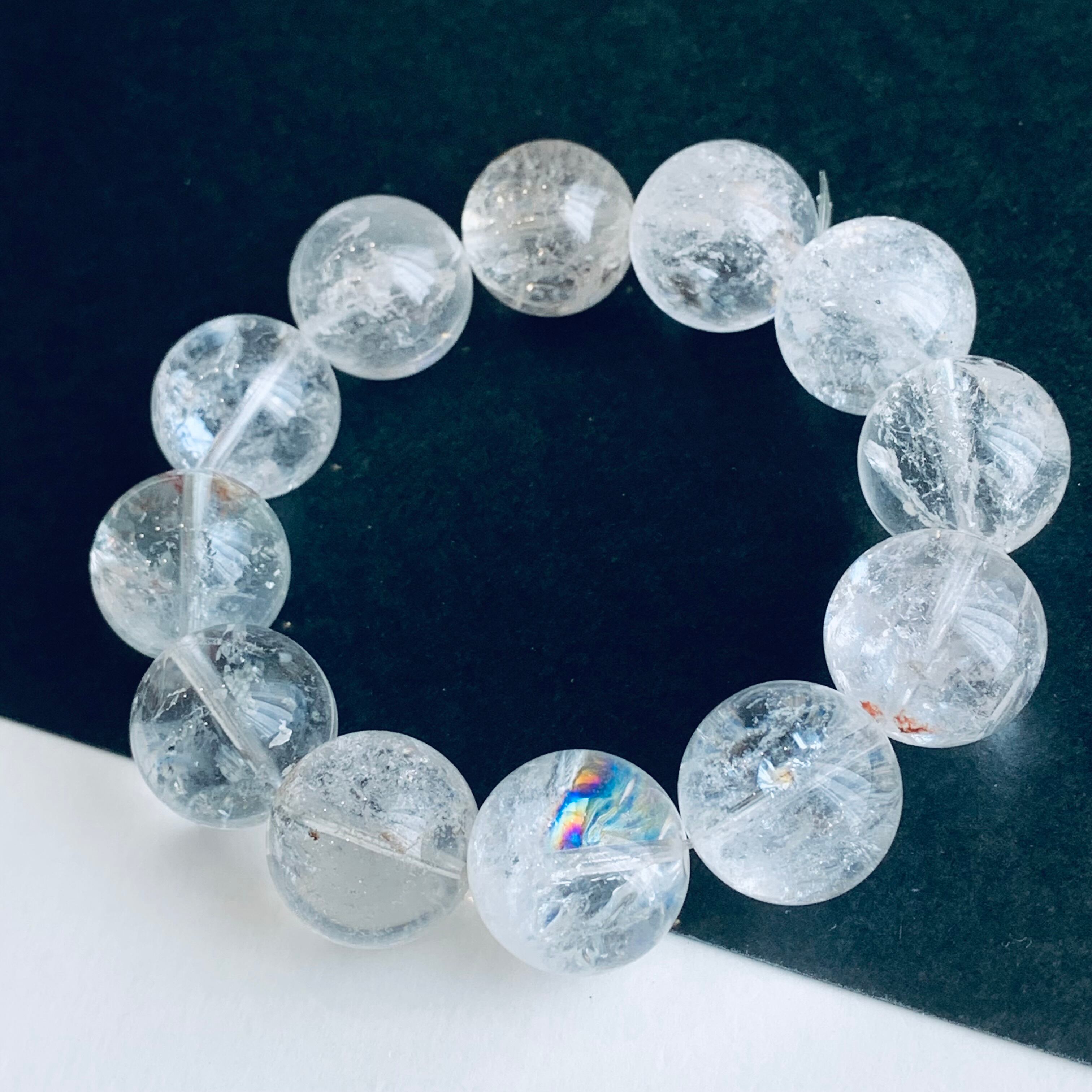 アゼツライトクォーツ アイリスクォーツ ブレスレット 大珠17㍉ 虹入 93