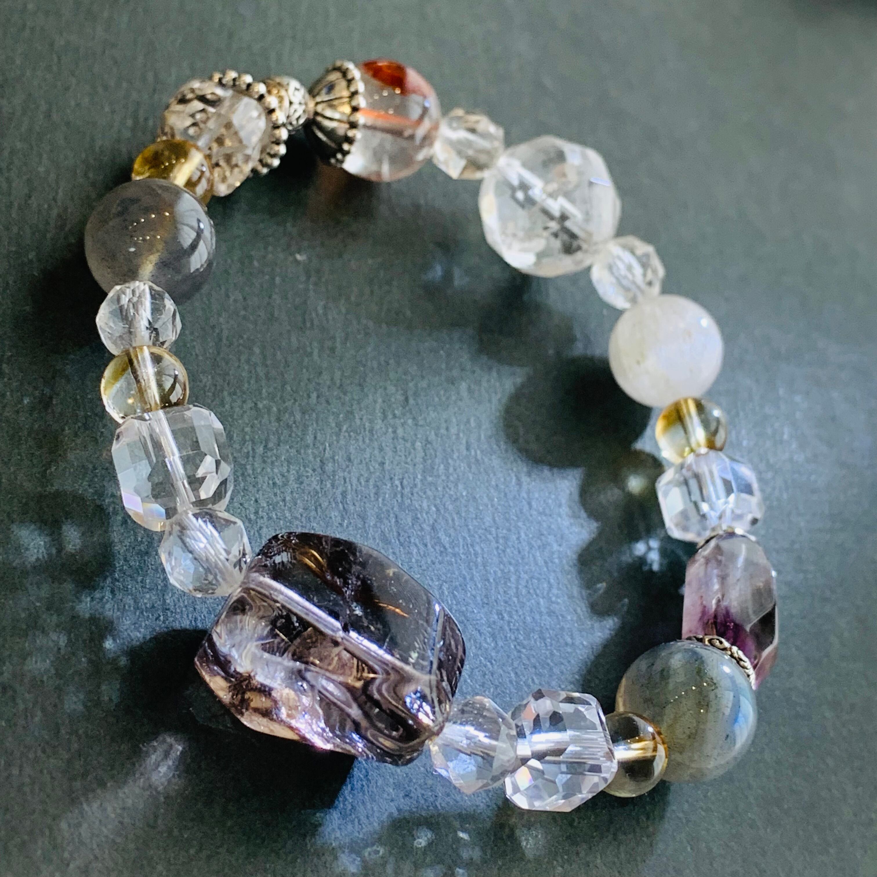 スモーキーアイリスブレスレット キラキラ 1点物 デザインブレス 天然石