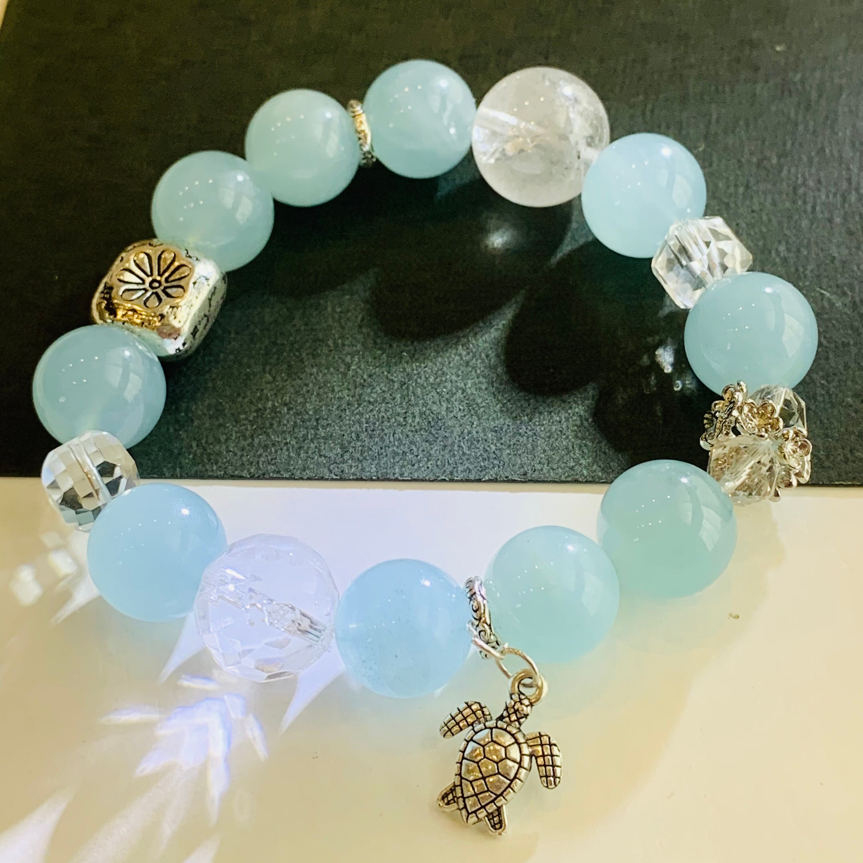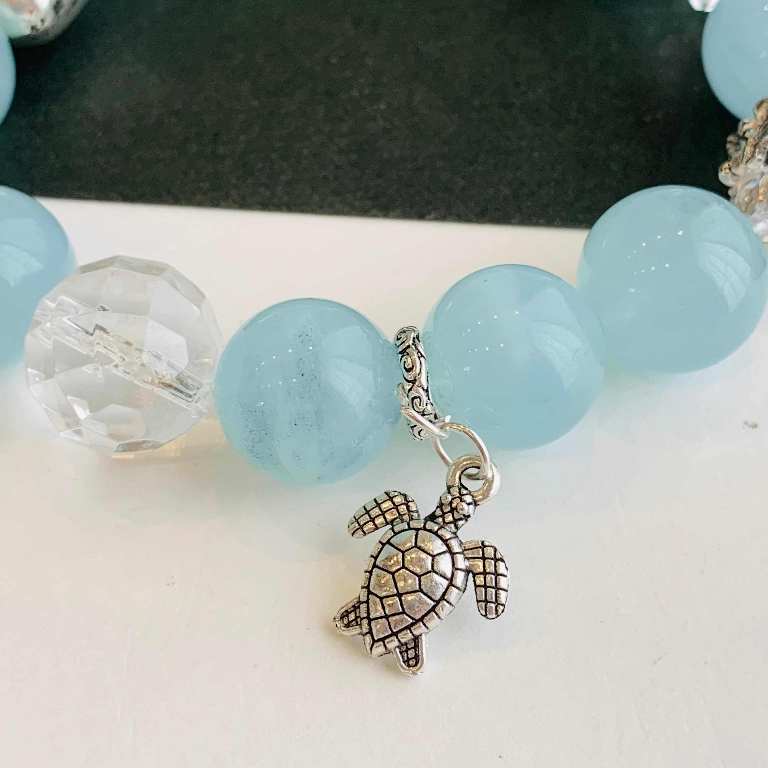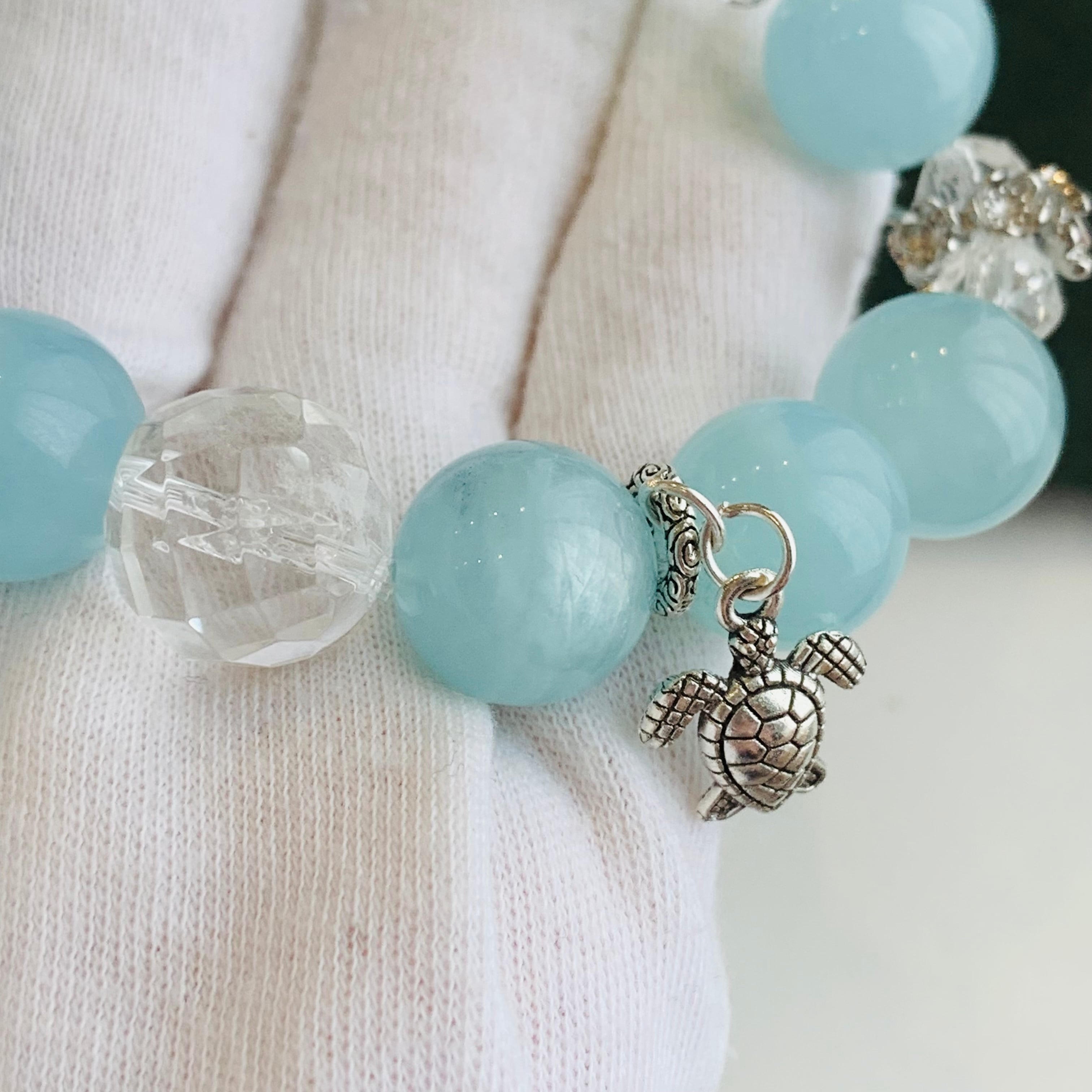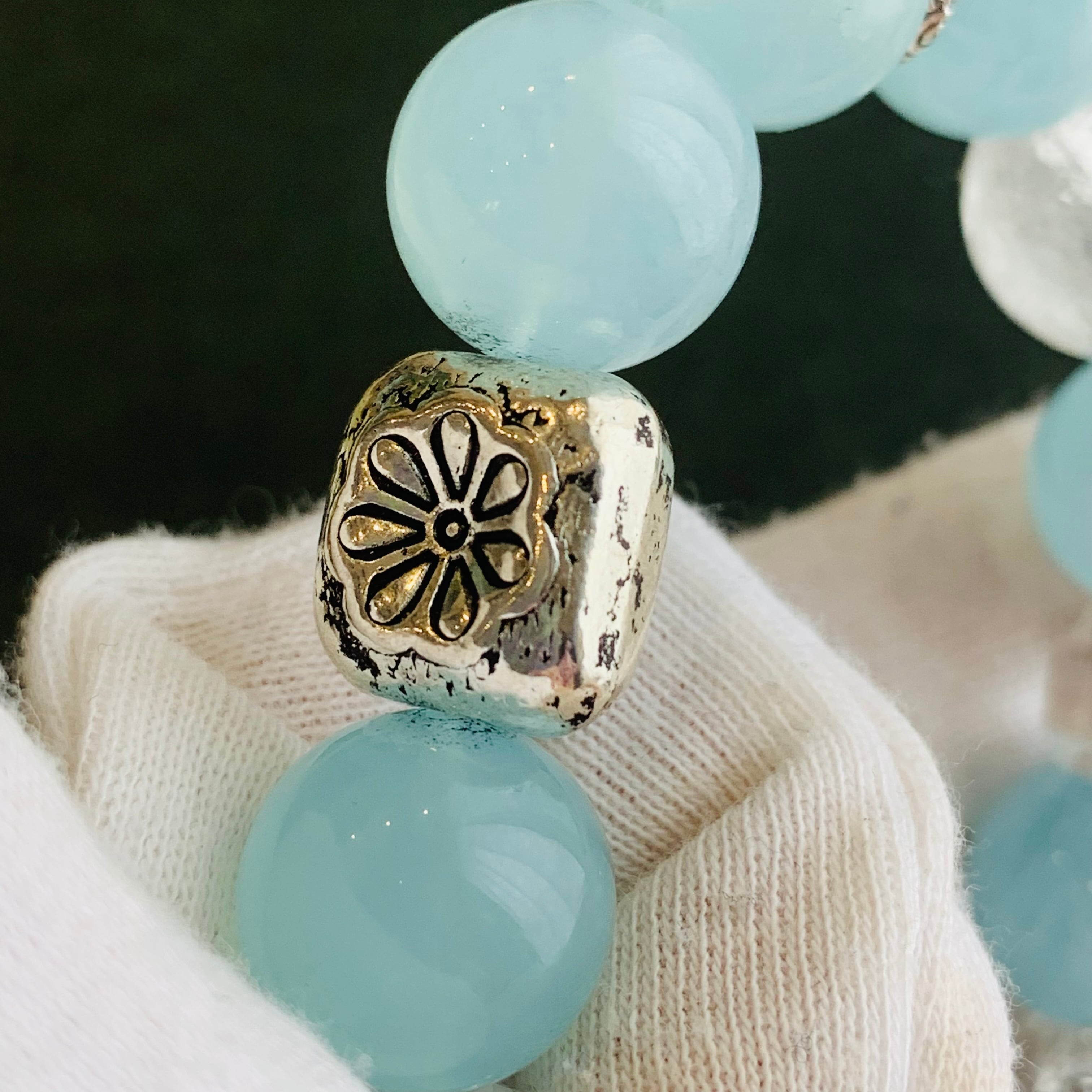 アクアマリンデザインブレスレット 大珠アゼツライト 1点物