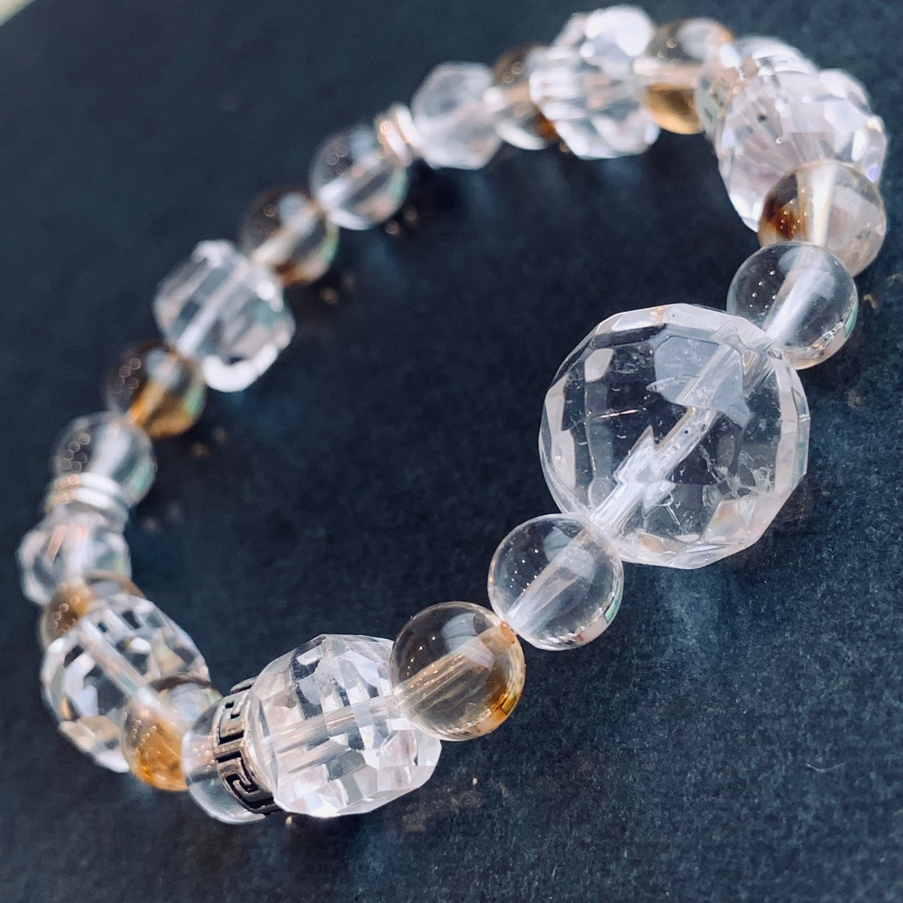インド産天然クォーツデザインブレスレット シトリンいr入り 15cm 1点物