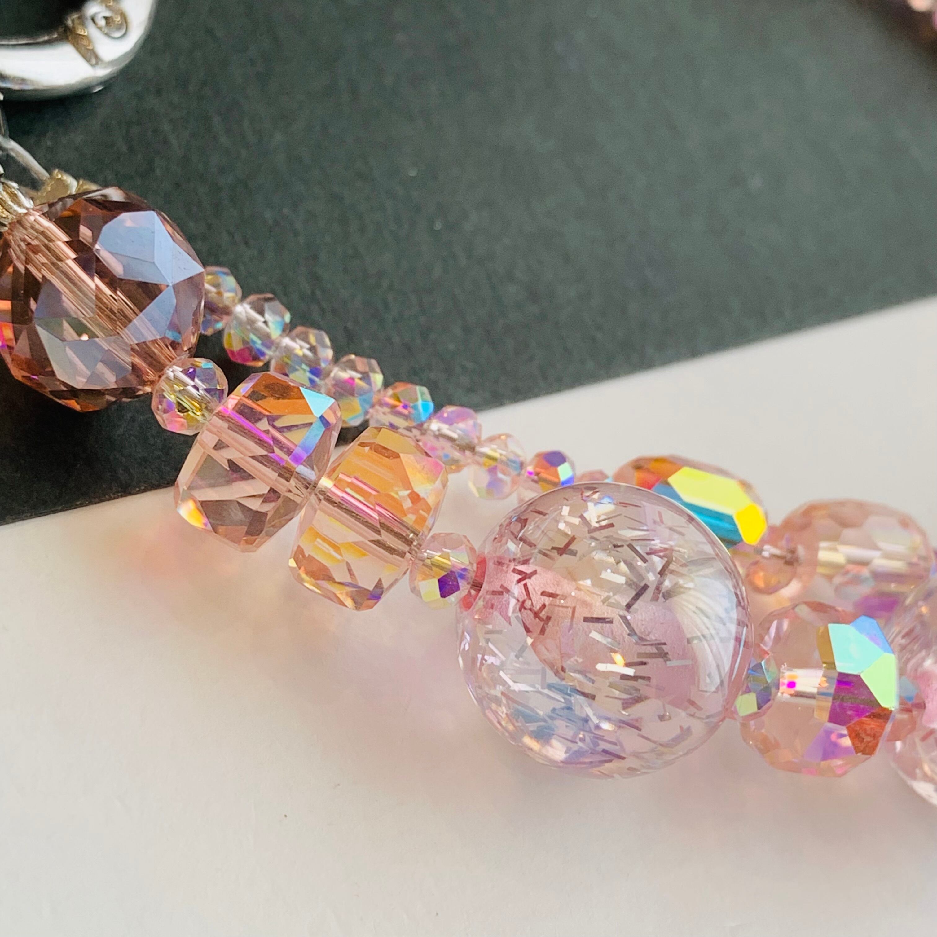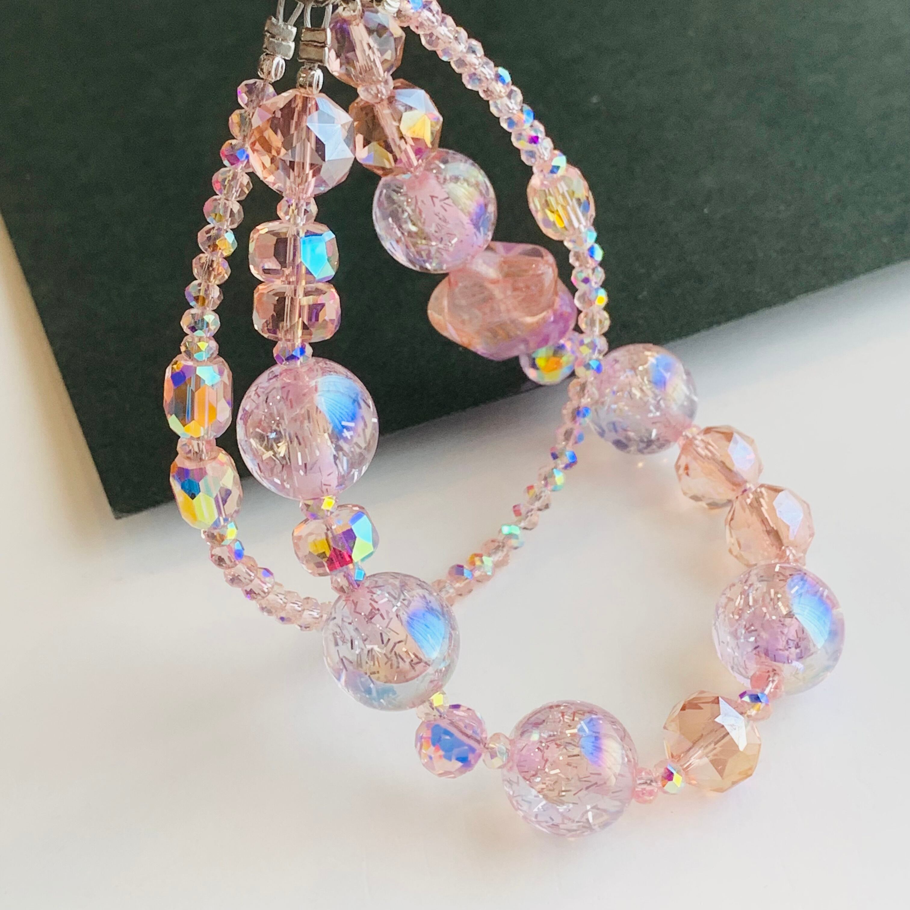 スマホストラップ スマホ 携帯 アクセサリー ピンクオーロラビーズ 420