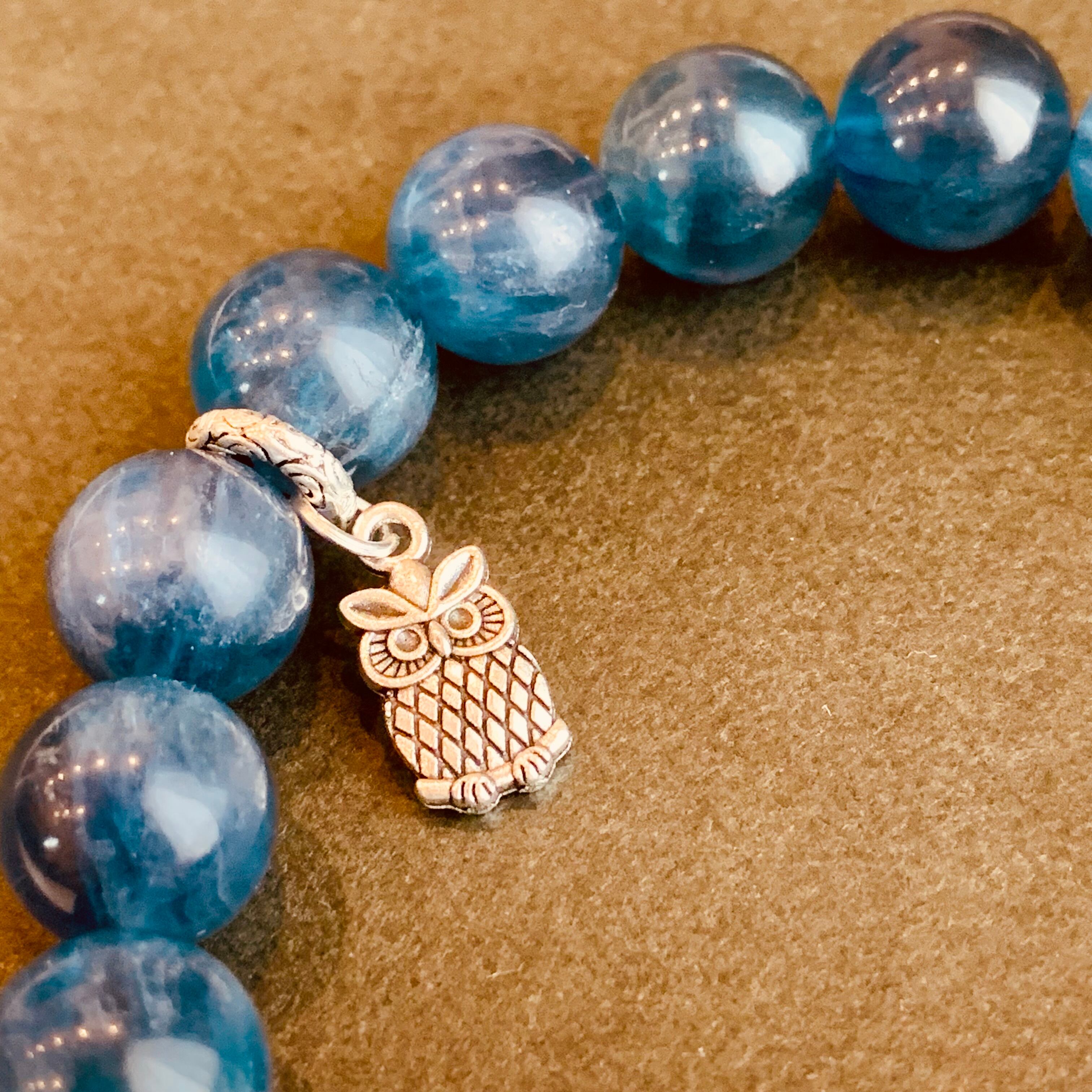 ブルーグリーンフローライト ブレスレット 11ミリ珠 天然石 希少 R98