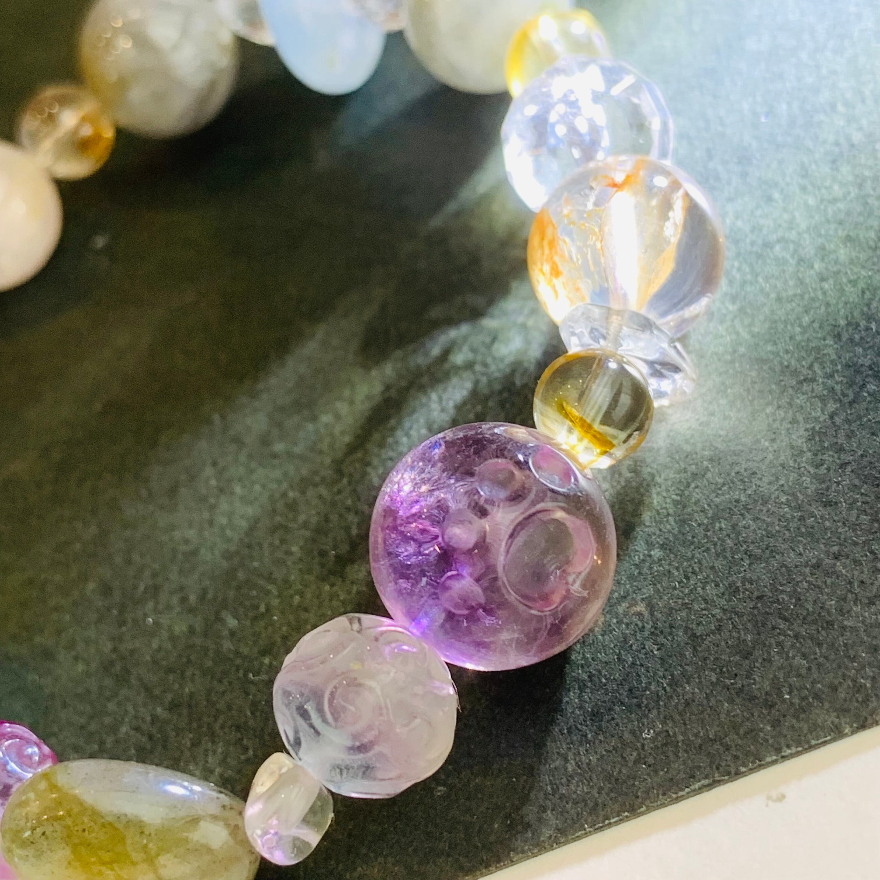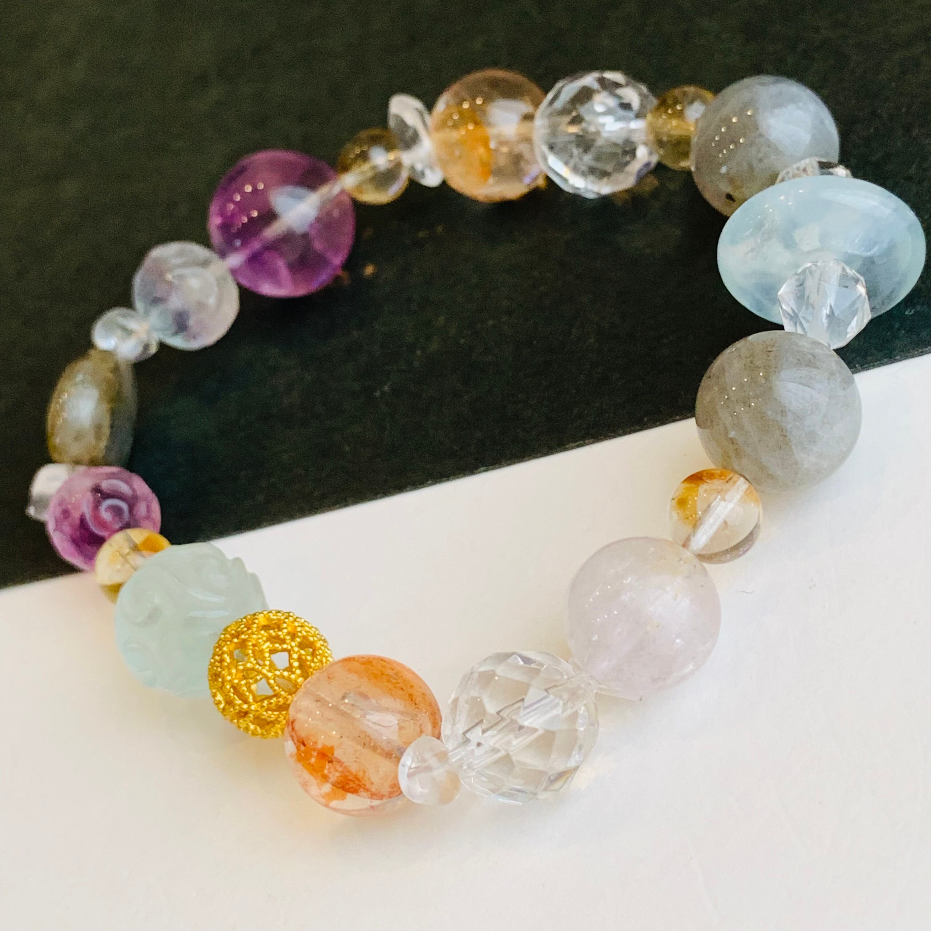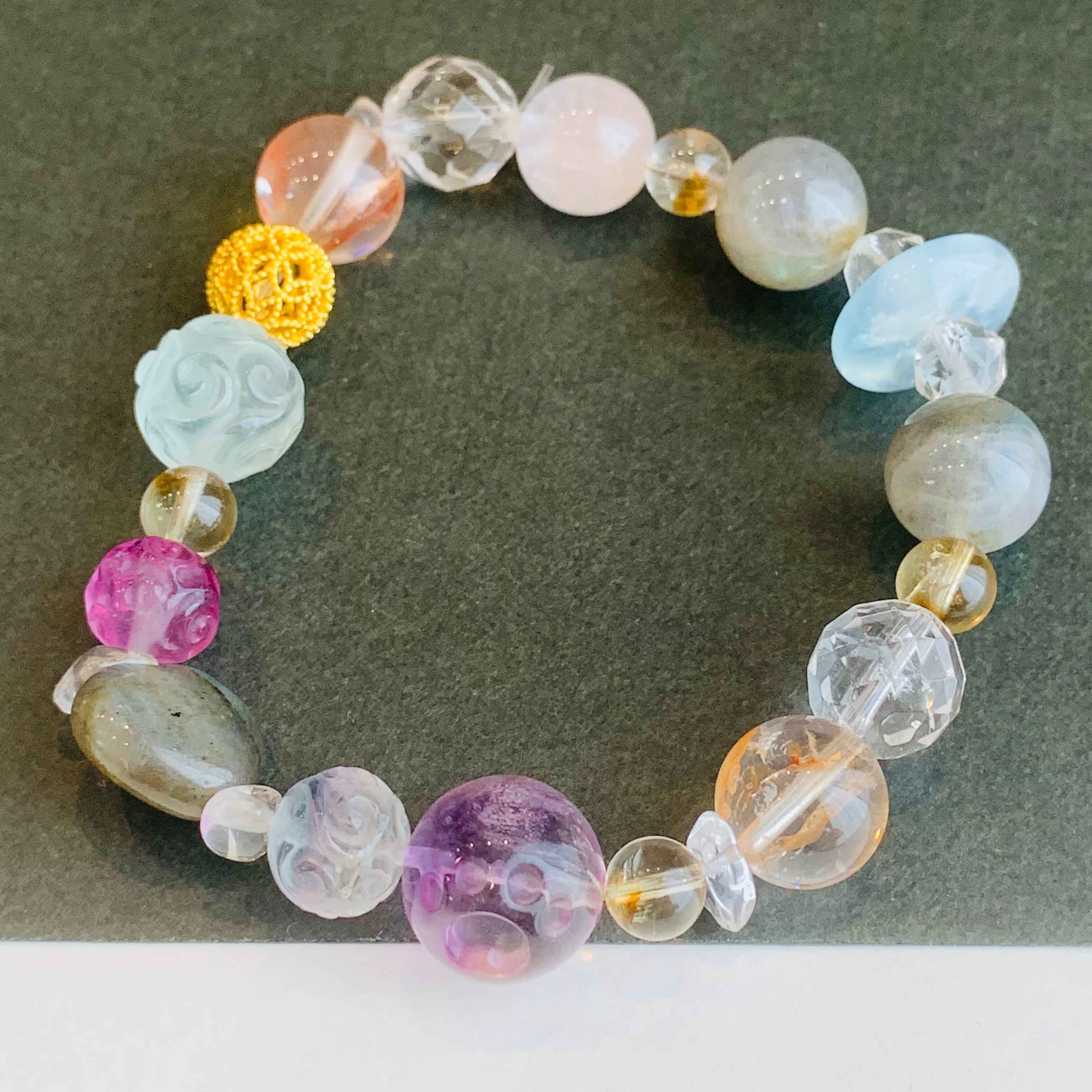 天然石ブレスレット 7種水晶ミックス パワーストーン 一点物 R88