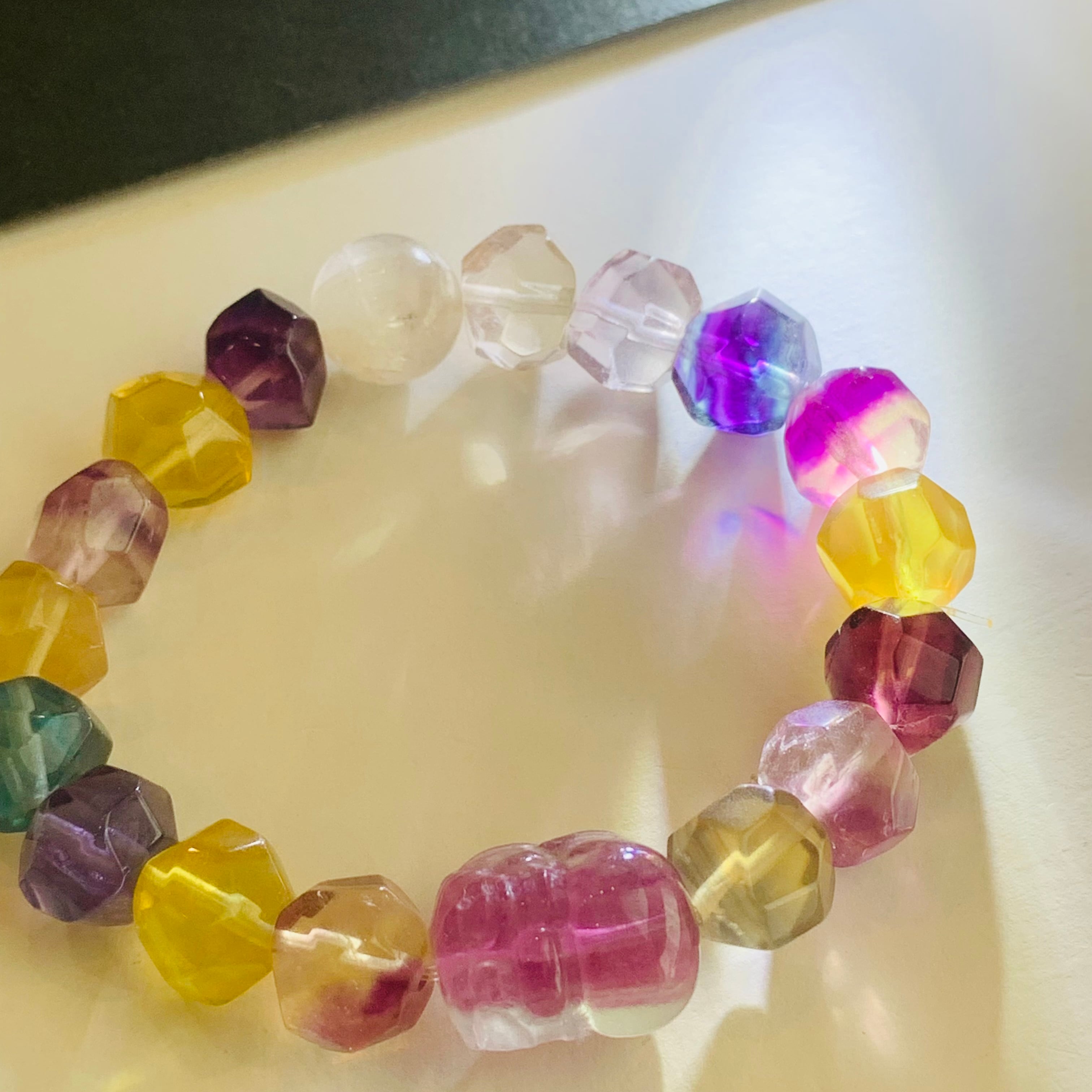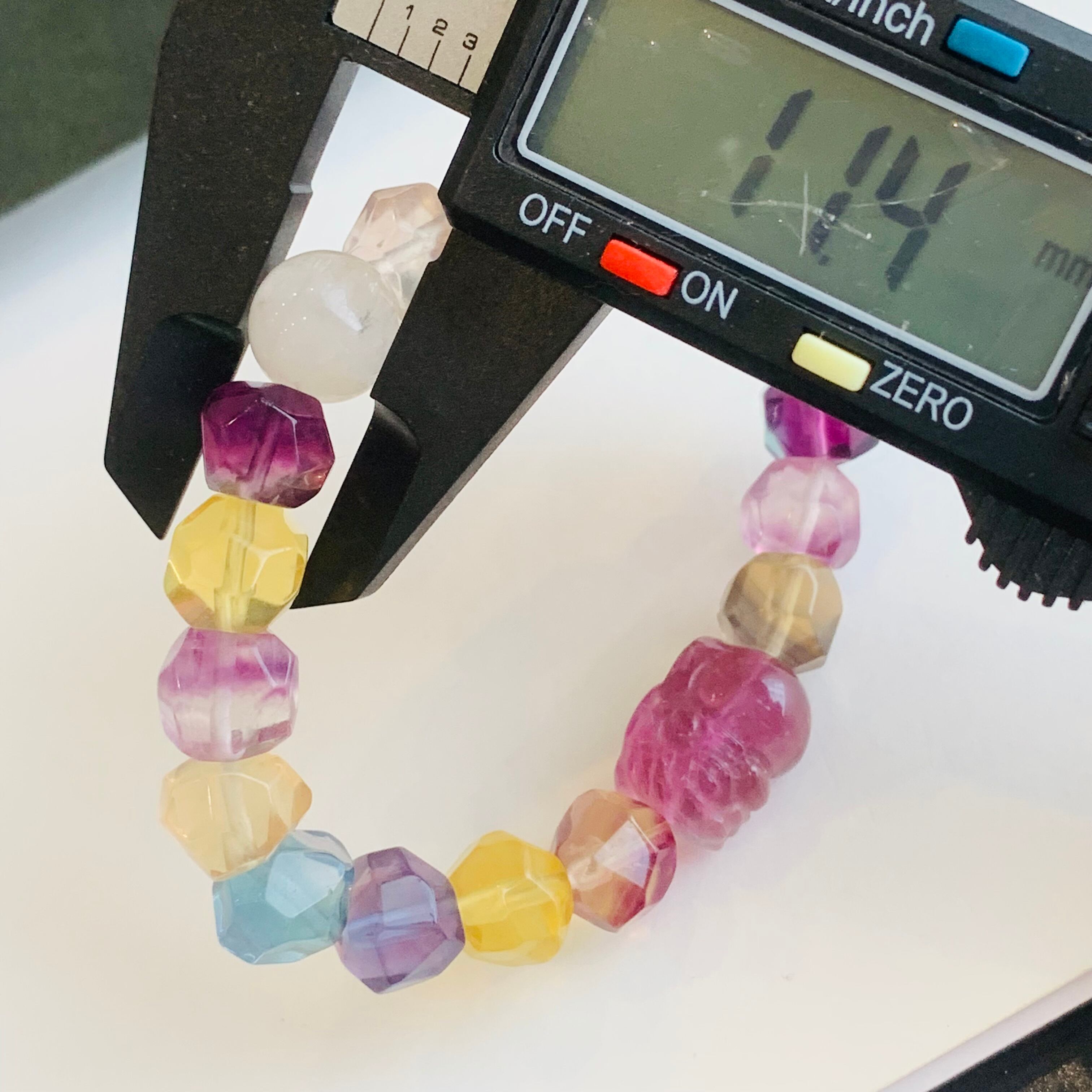 フローライトブレスレット 貔貅 クンツァイト バイカラーフローライト 15cm