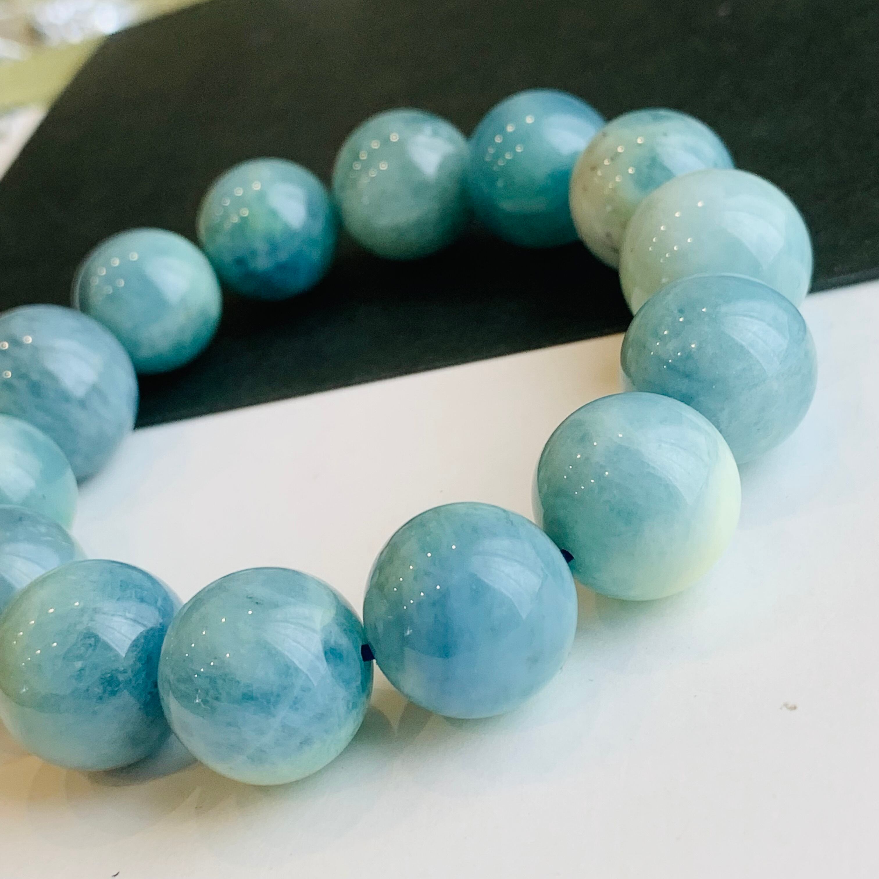 ブルーグリーンアクアマリン ブレスレット 天然石 希少 大珠 R174