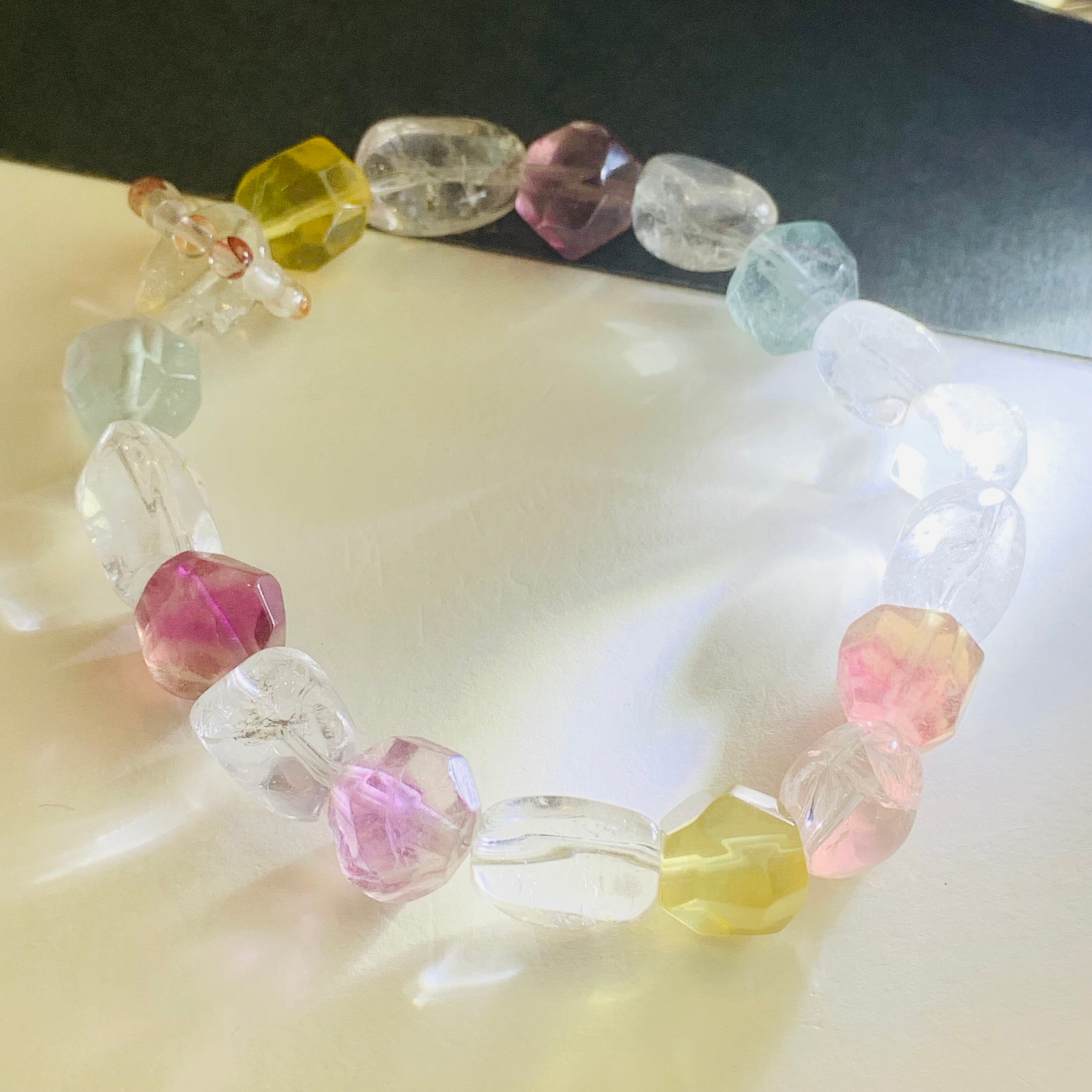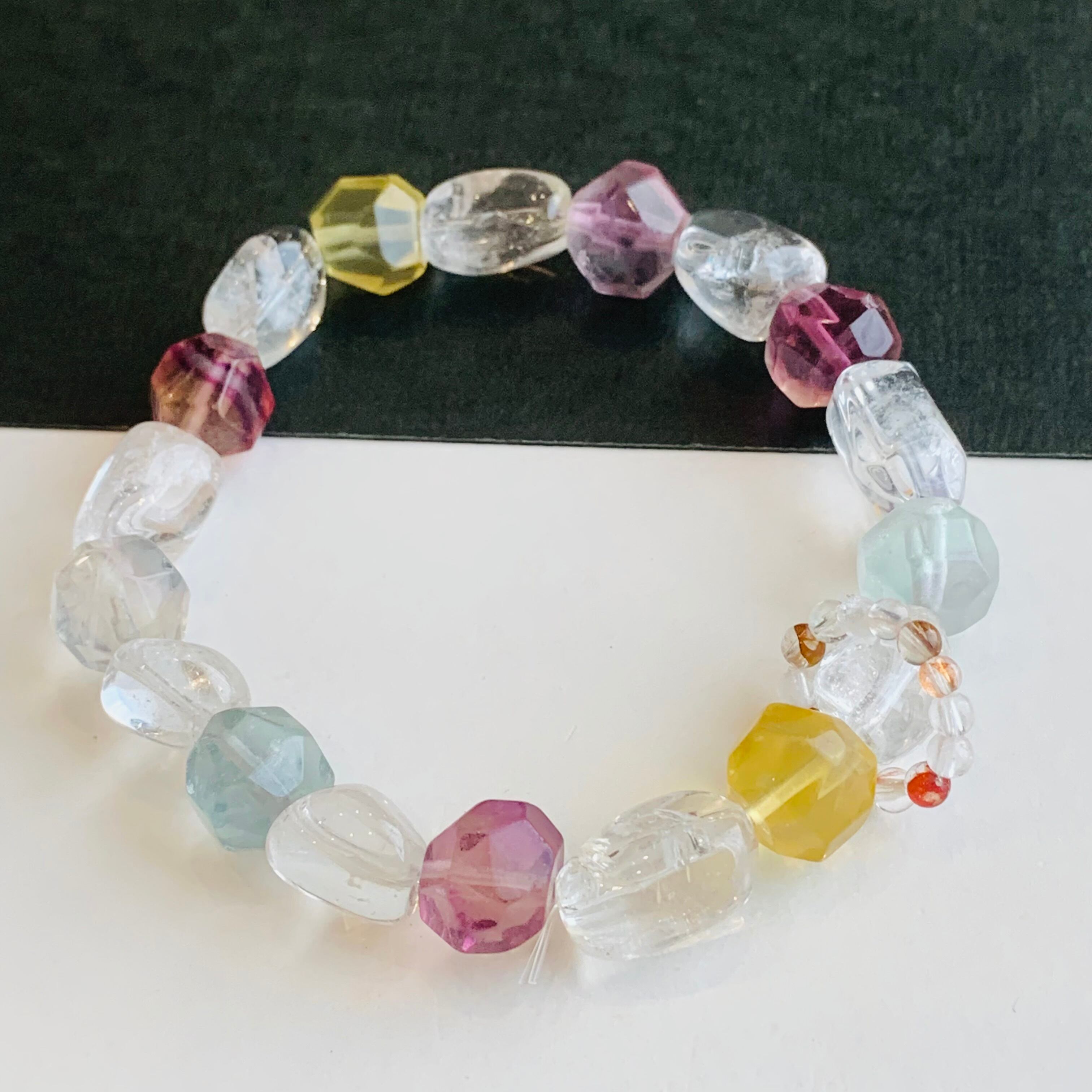 クリスタル&フローライトブレスレット 虹水晶 オーロラクォーツ R141