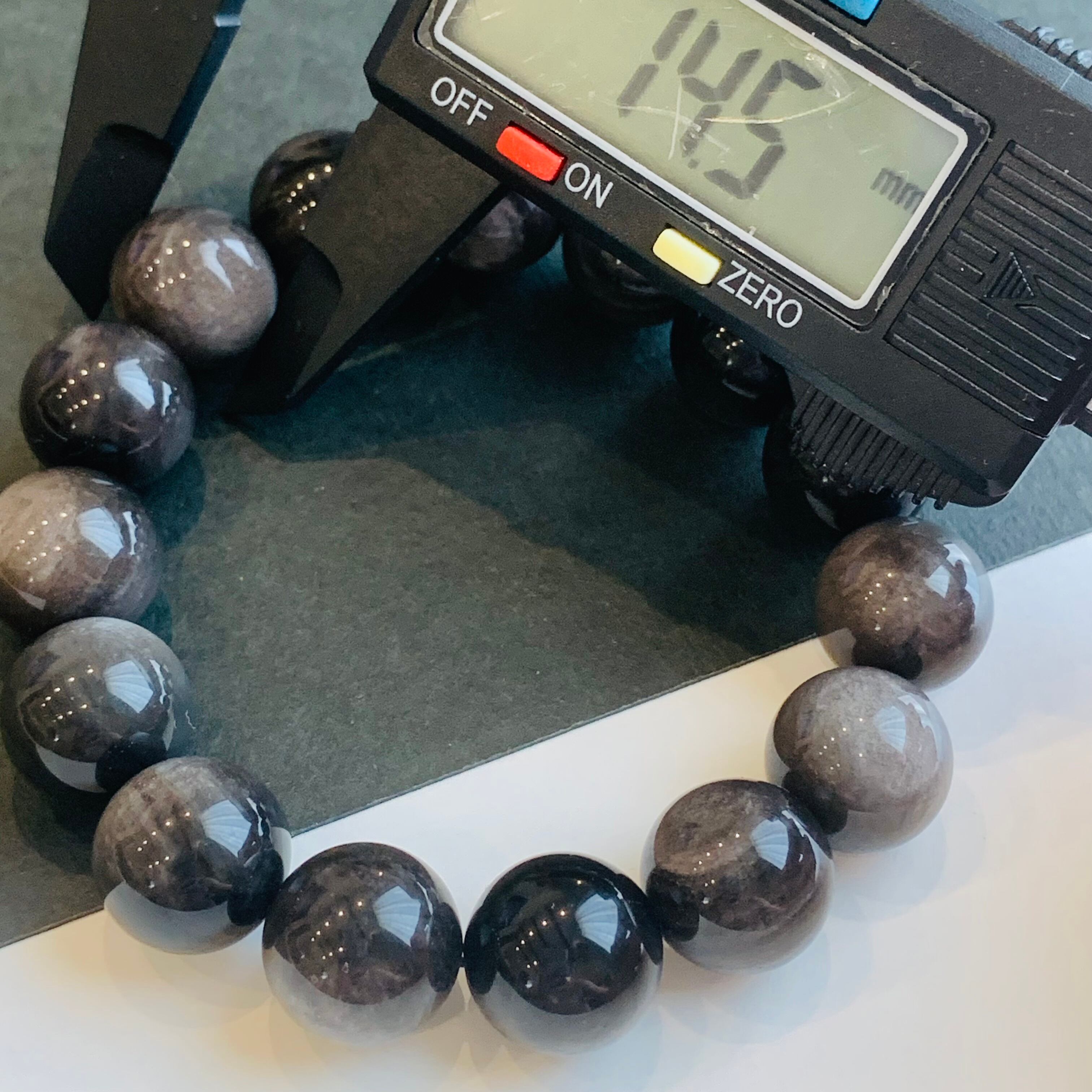 シルバーオブシディアン 銀曜石 ブレスレット 仕事運 魔除け 14㍉大珠234