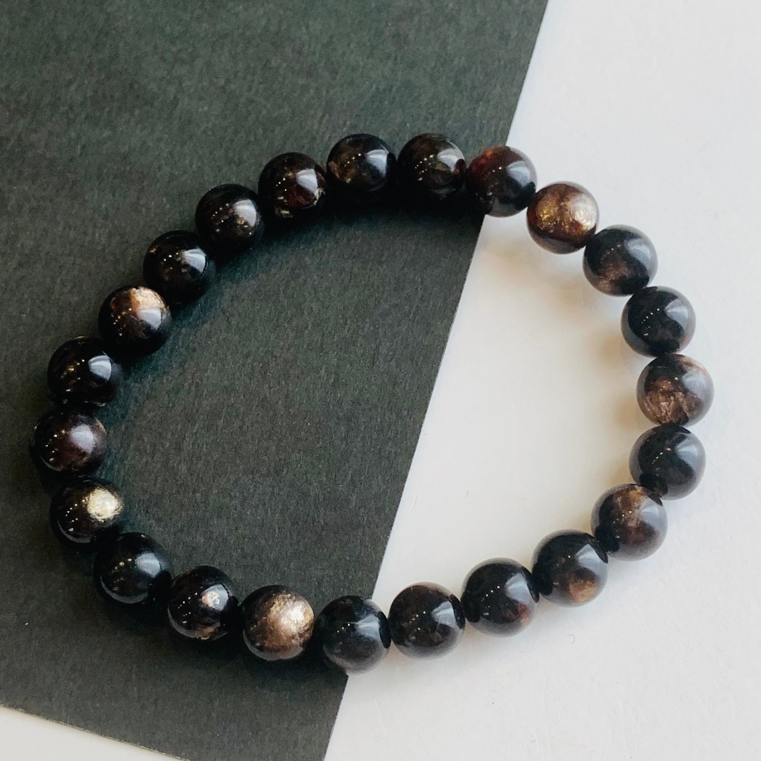 ブラウンマイカ ブラックマイカ ブレスレット パワーストーン B47