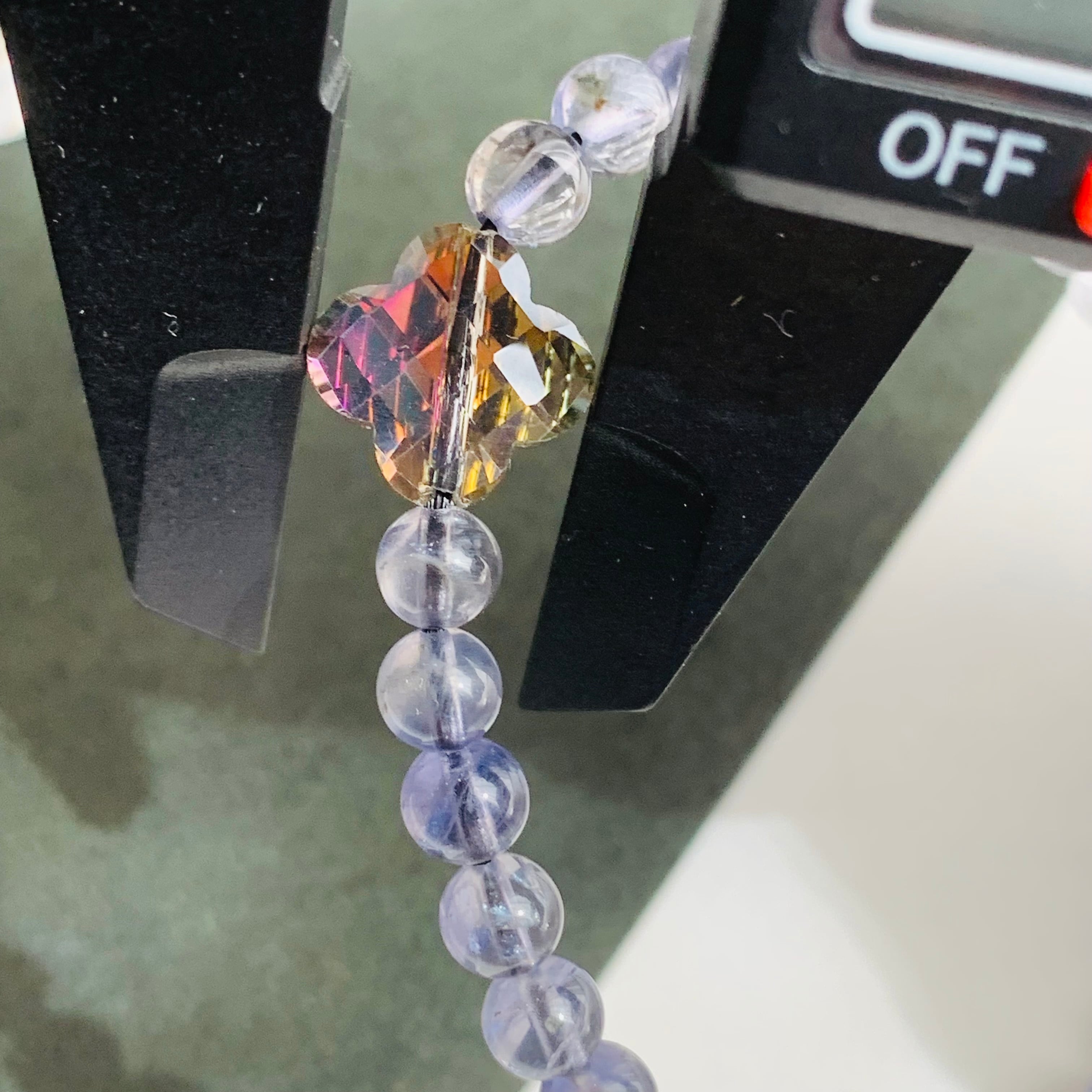 美しいスミレ色が魅力的なアイオライト、その最大の特徴は、多色性が強く見る角度によって違う色に見えること。スミレ色のアイオライトでも、角度によって黄色、グレーなどと異なる色を楽しむことができます。
