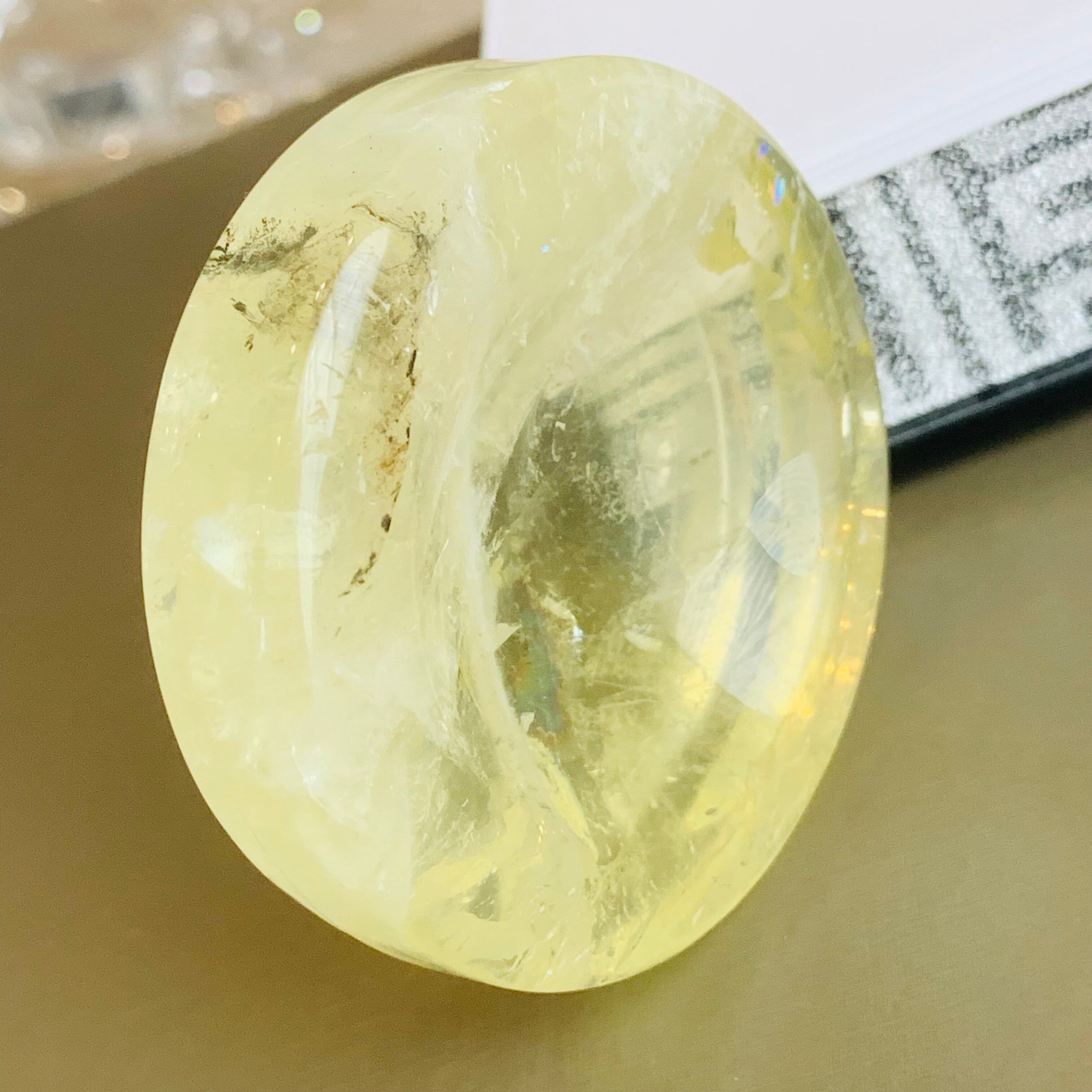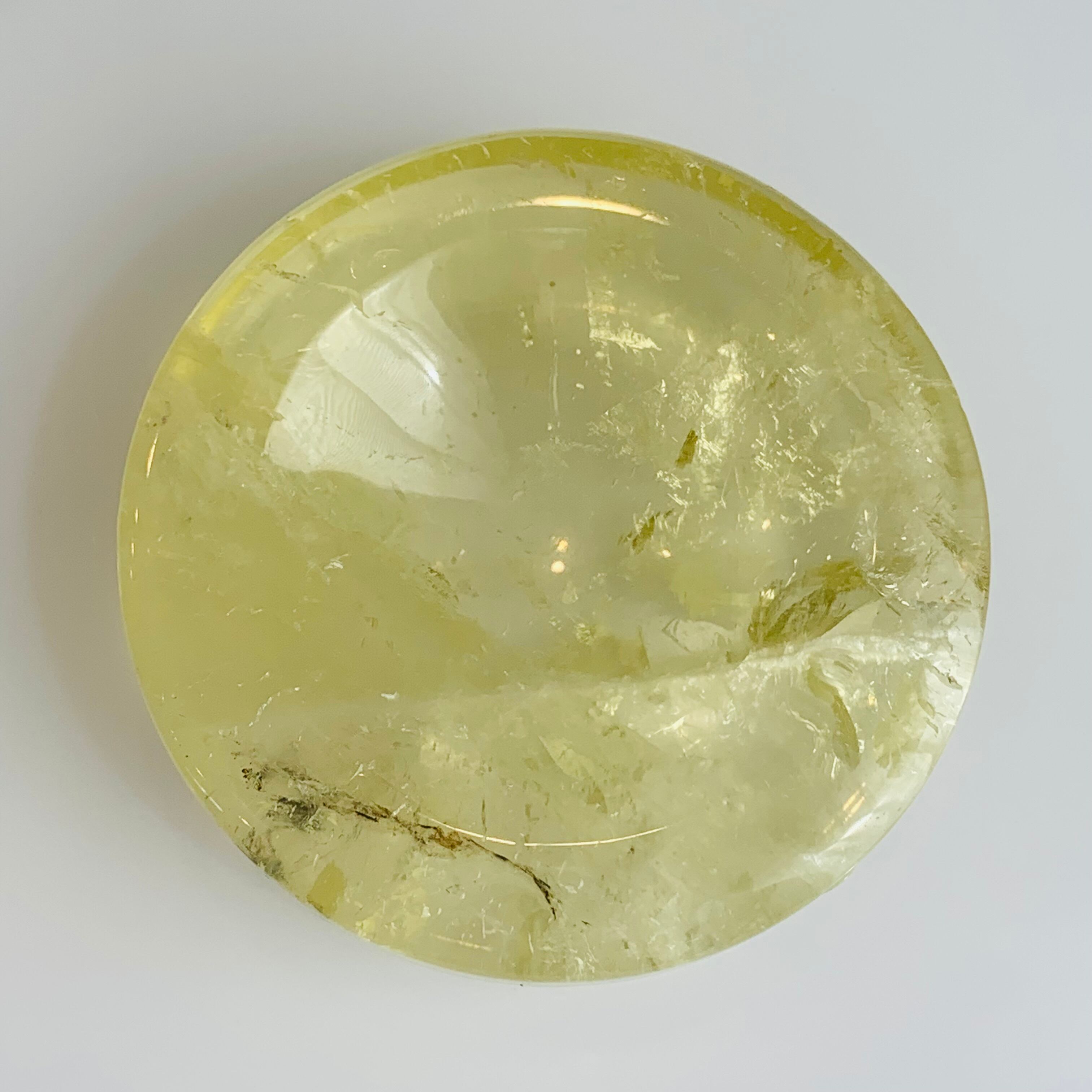 レモンクォーツ お皿 置物 水晶台座 天然石 パワーストーン 虹水晶 K242