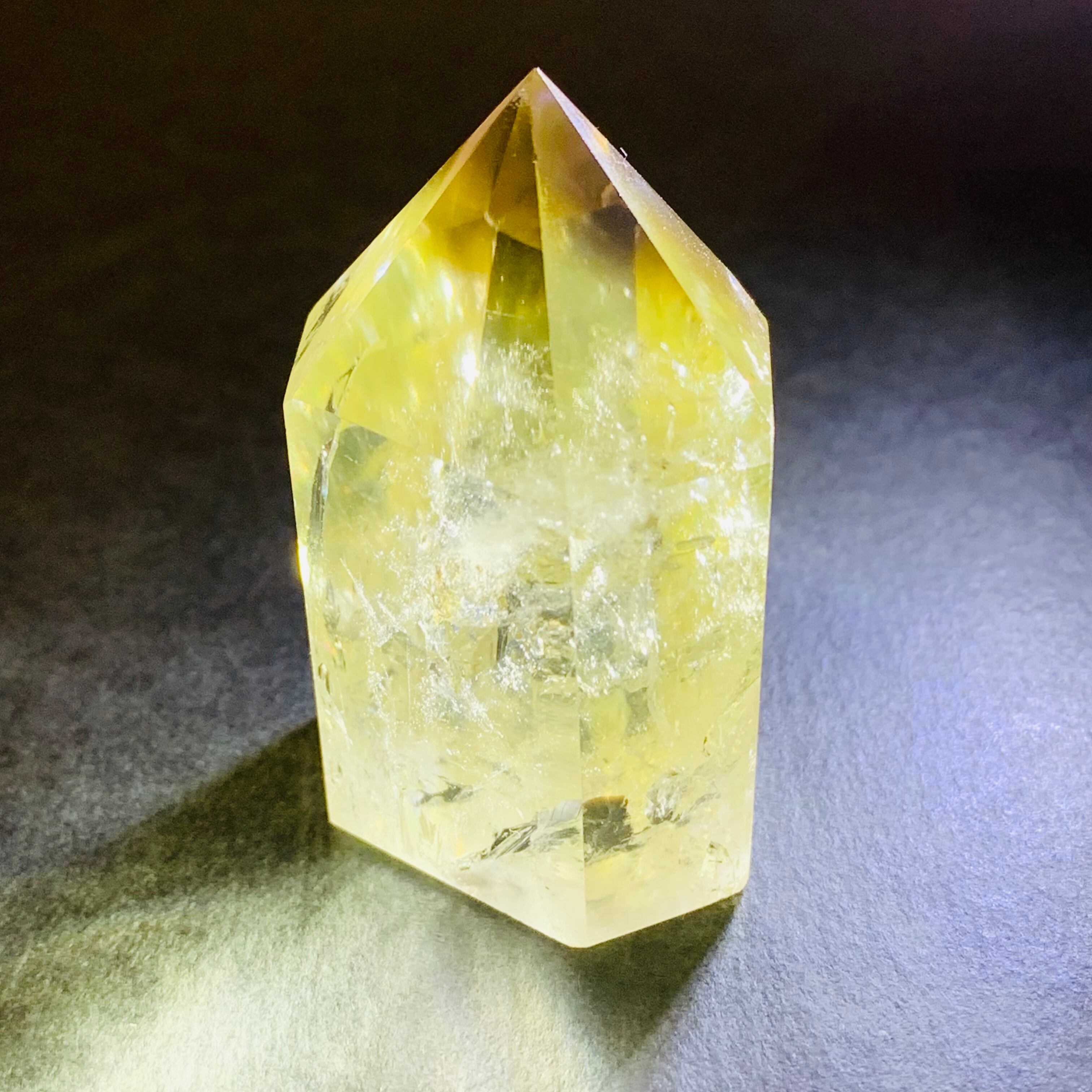 シトリンポイント 天然黄水晶 六角柱 置物 風水 虹水晶 43g R146
