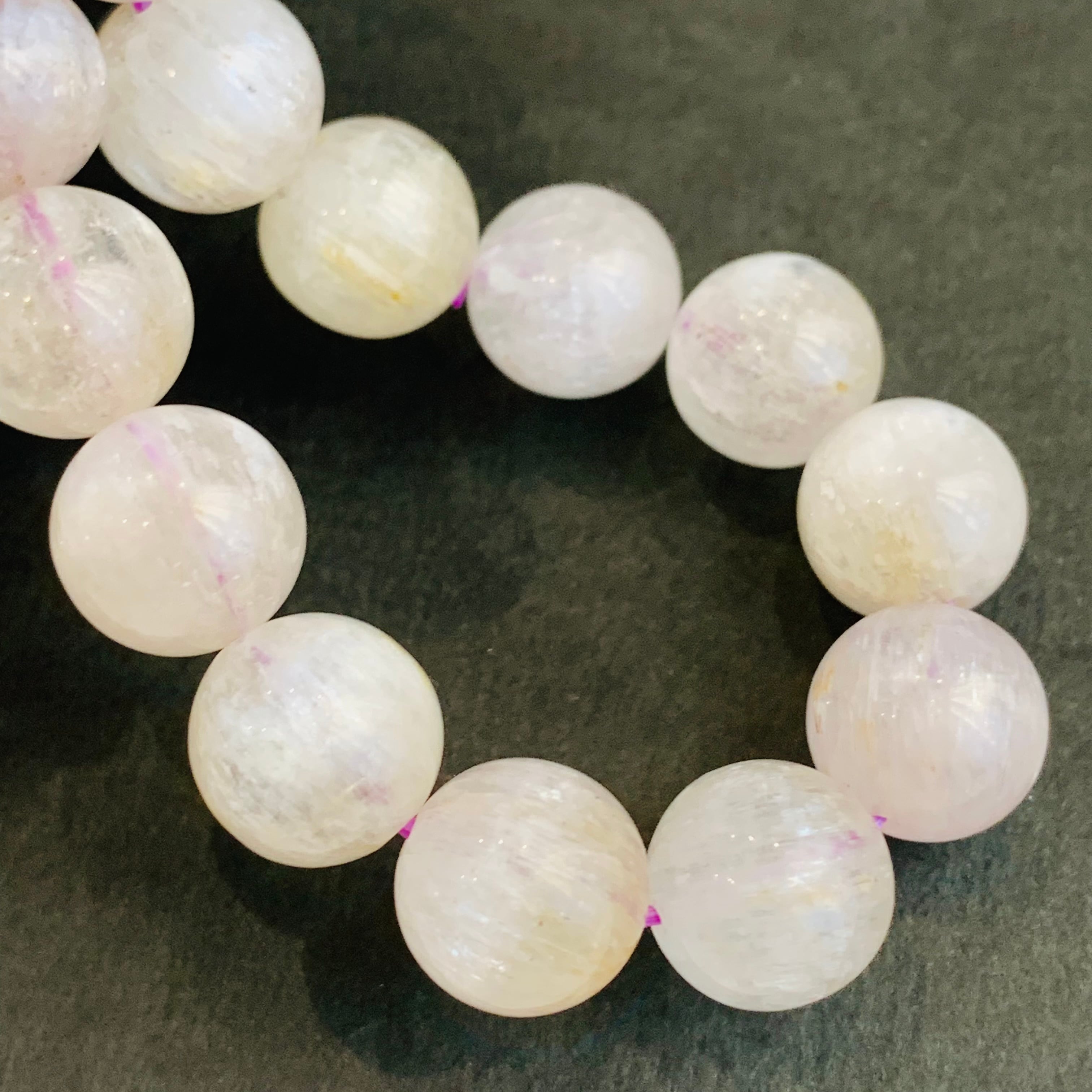 キャッツアイクンツァイト ブレスレット 大珠 天然未処理 透明 宝石質 WG4