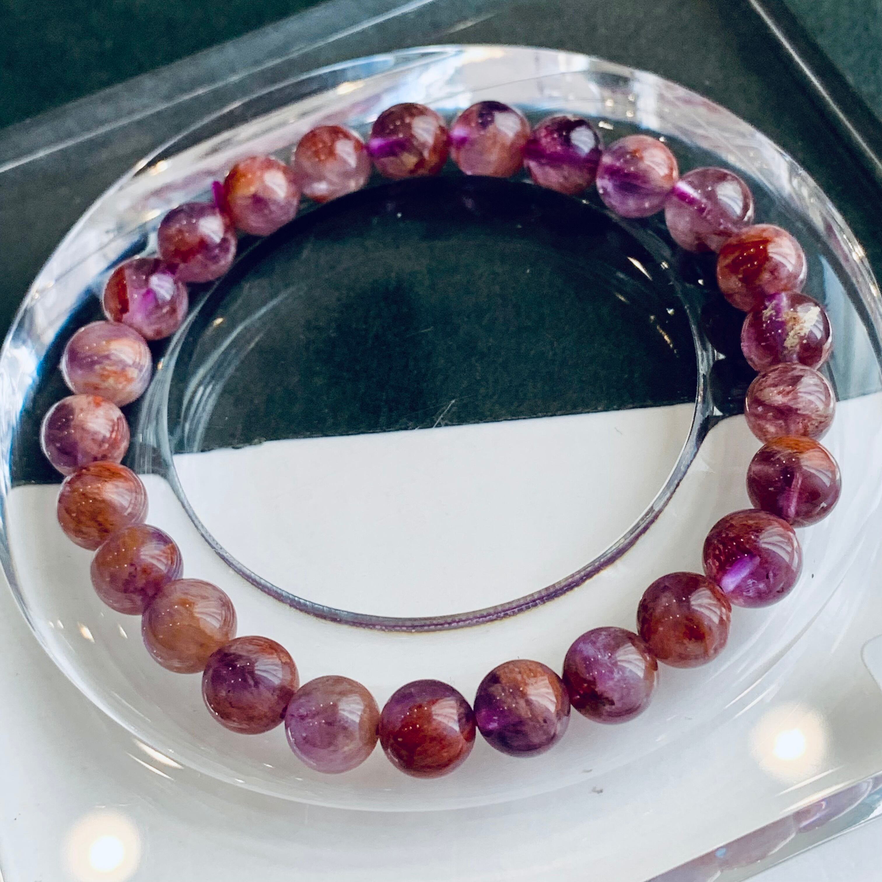 ガーデンクォーツの様に他鉱物を内包したアメジストで、白や赤褐色のアクセントが入った紫色は神秘的!