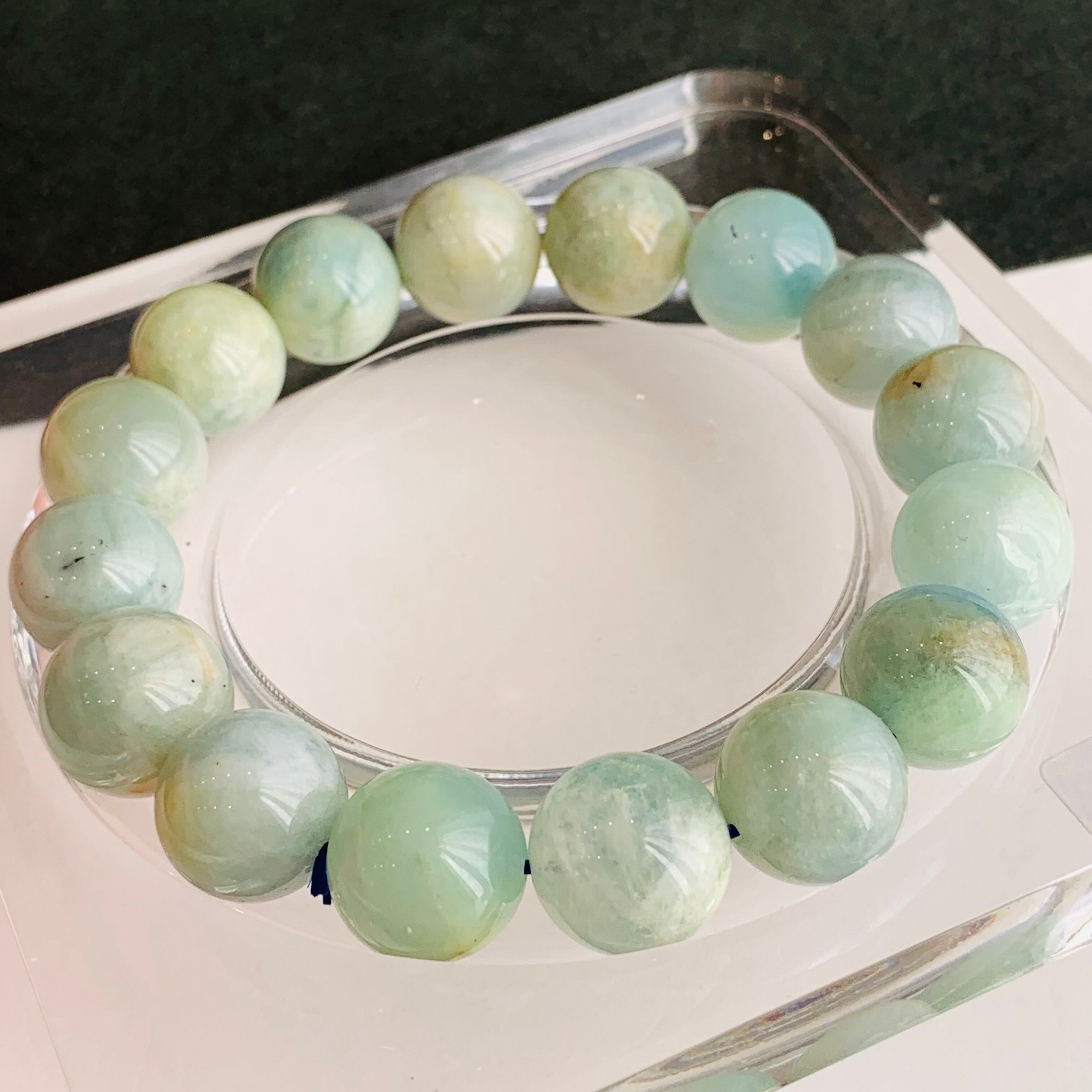 ブルーグリーンアクアマリン ブレスレット 天然石 希少 13㍉ WG26