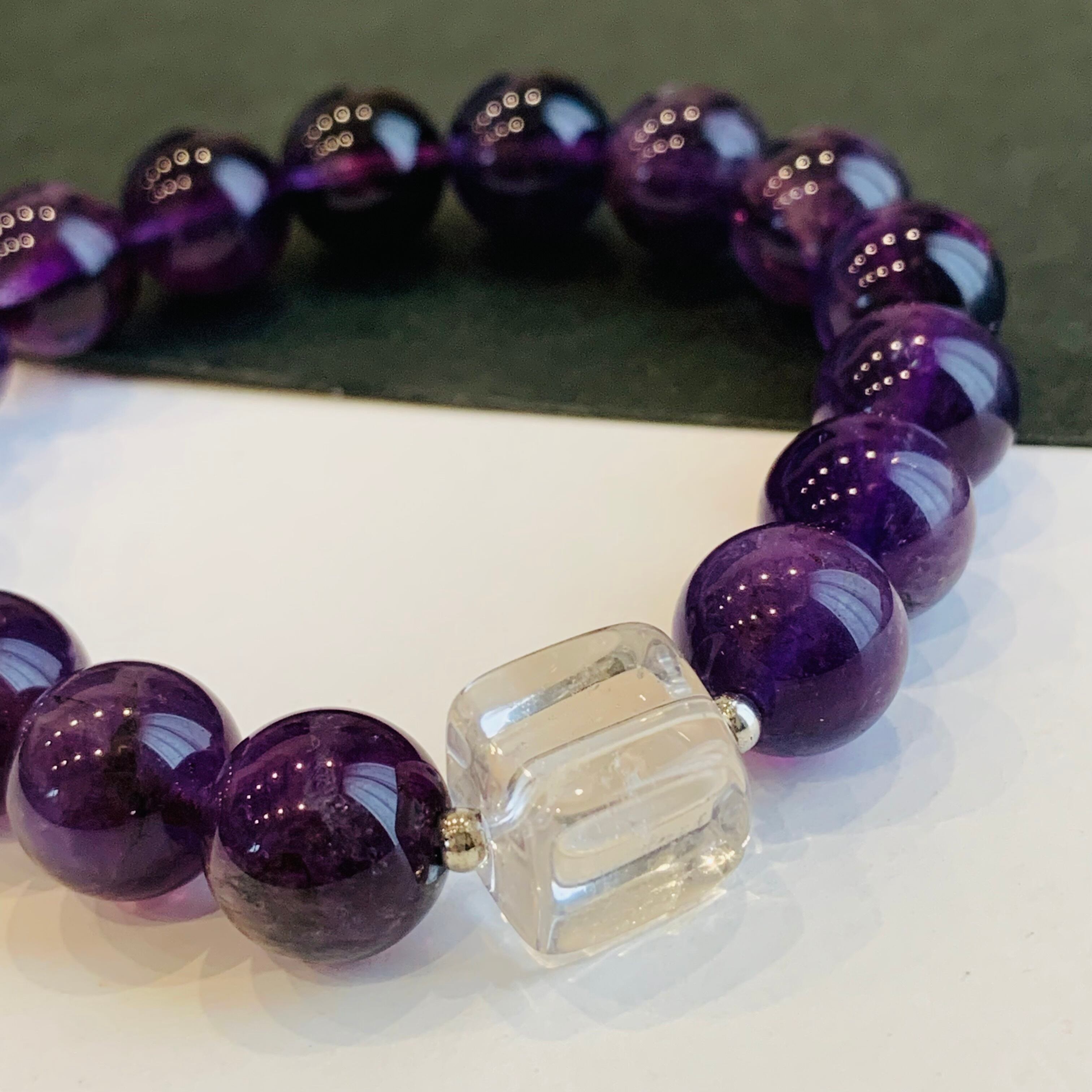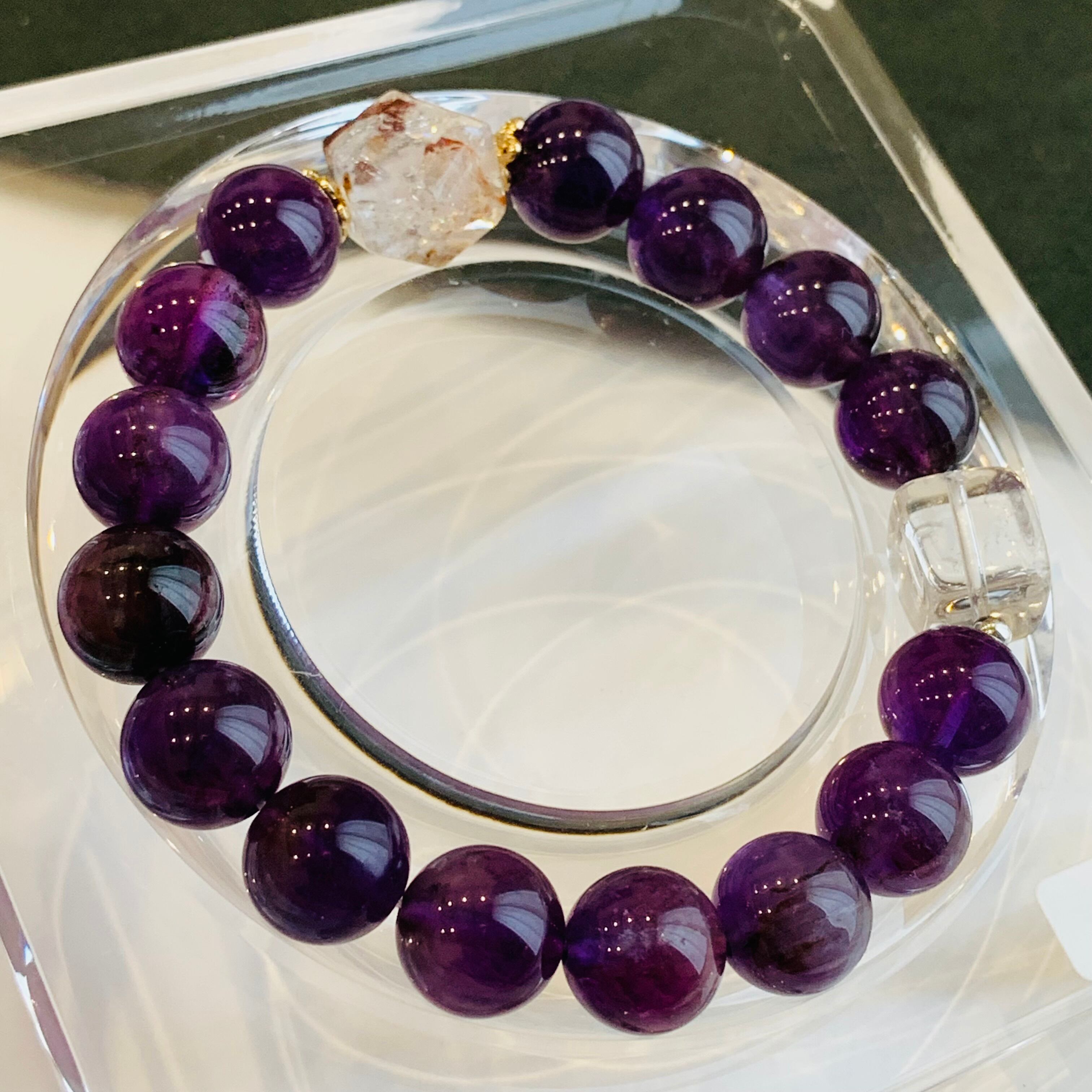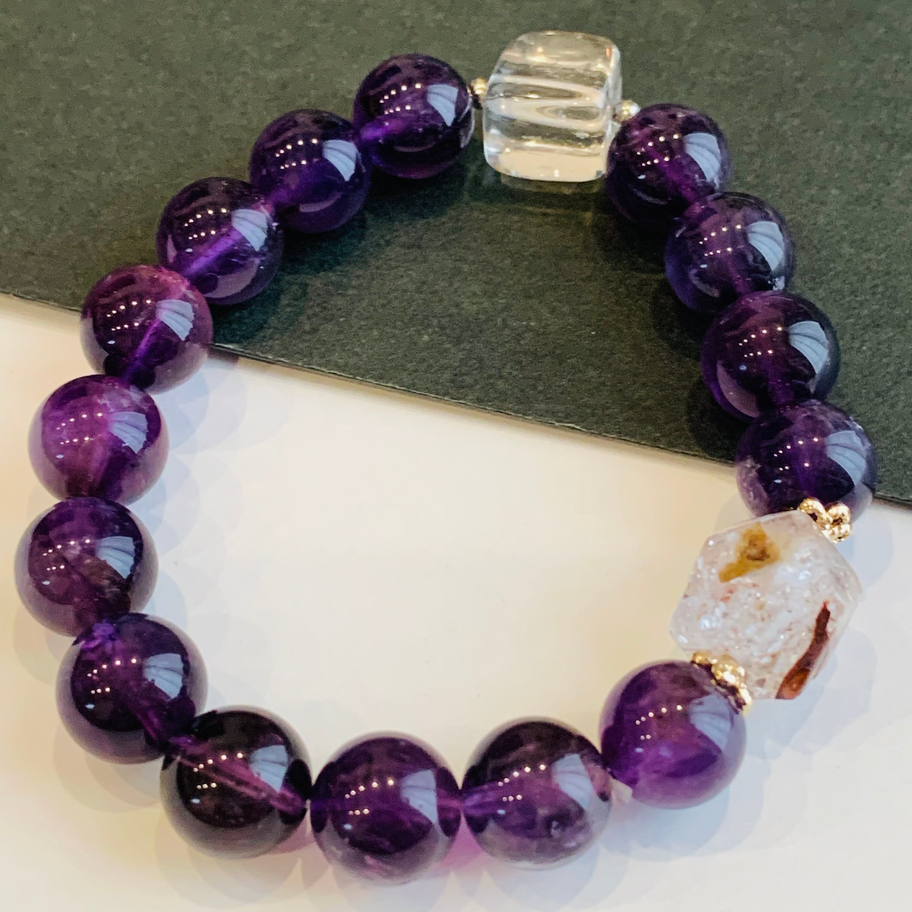 アメジストブレスレットハーキマーダイヤモンドエレスチャル 天然クリスタルWG91