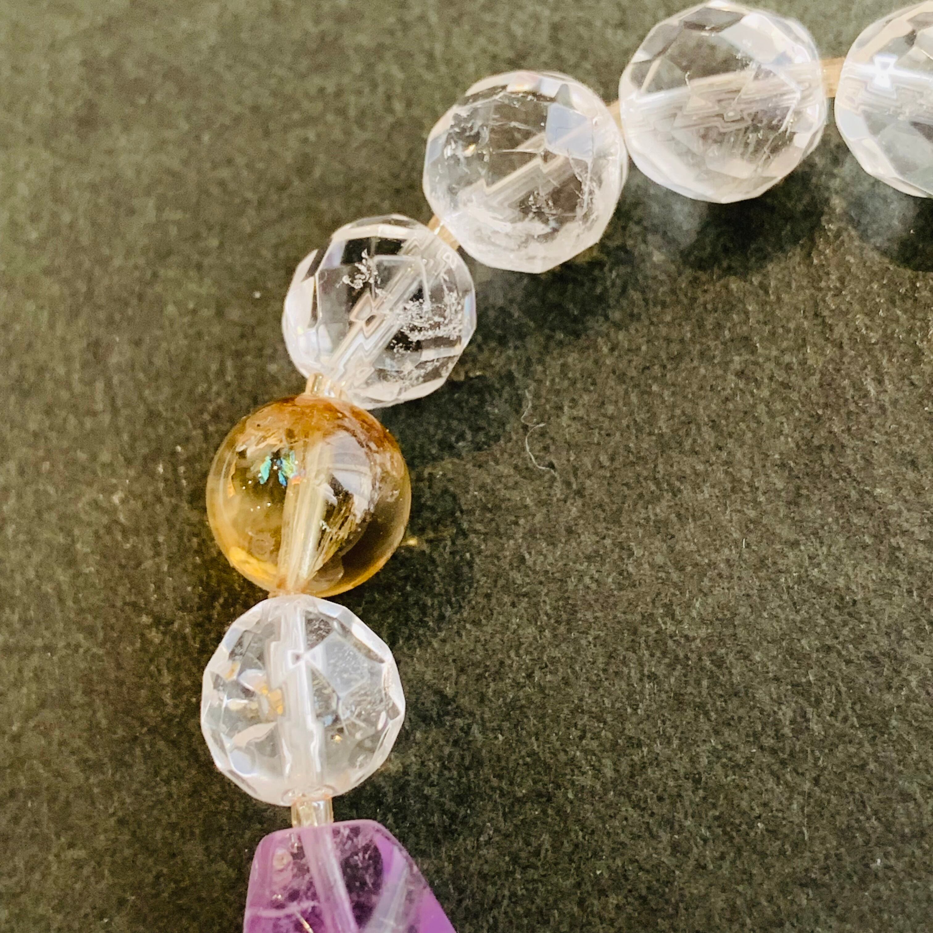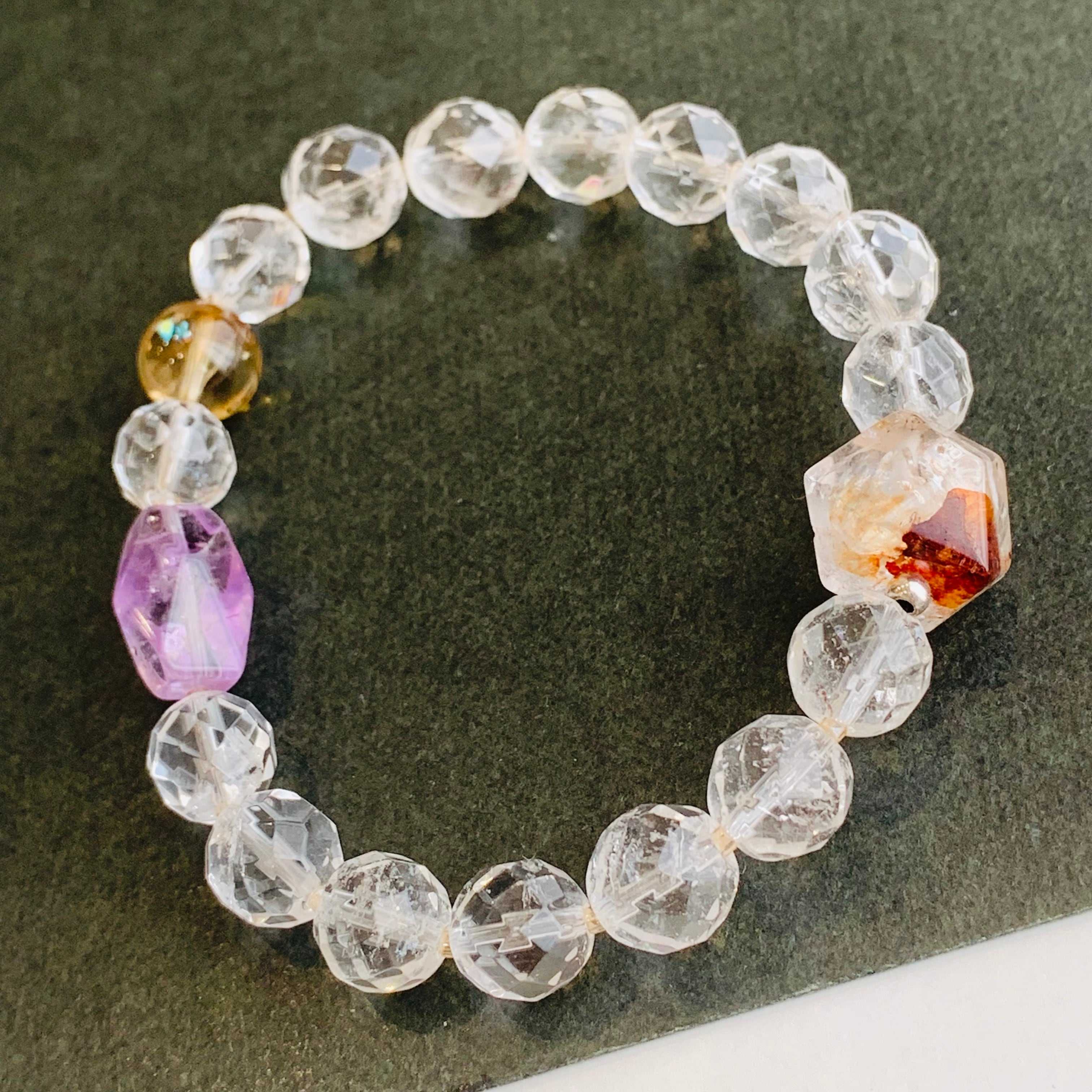 インドクリスタル ファントムシトリン ハーキマーダイヤモンドブレスレットG108