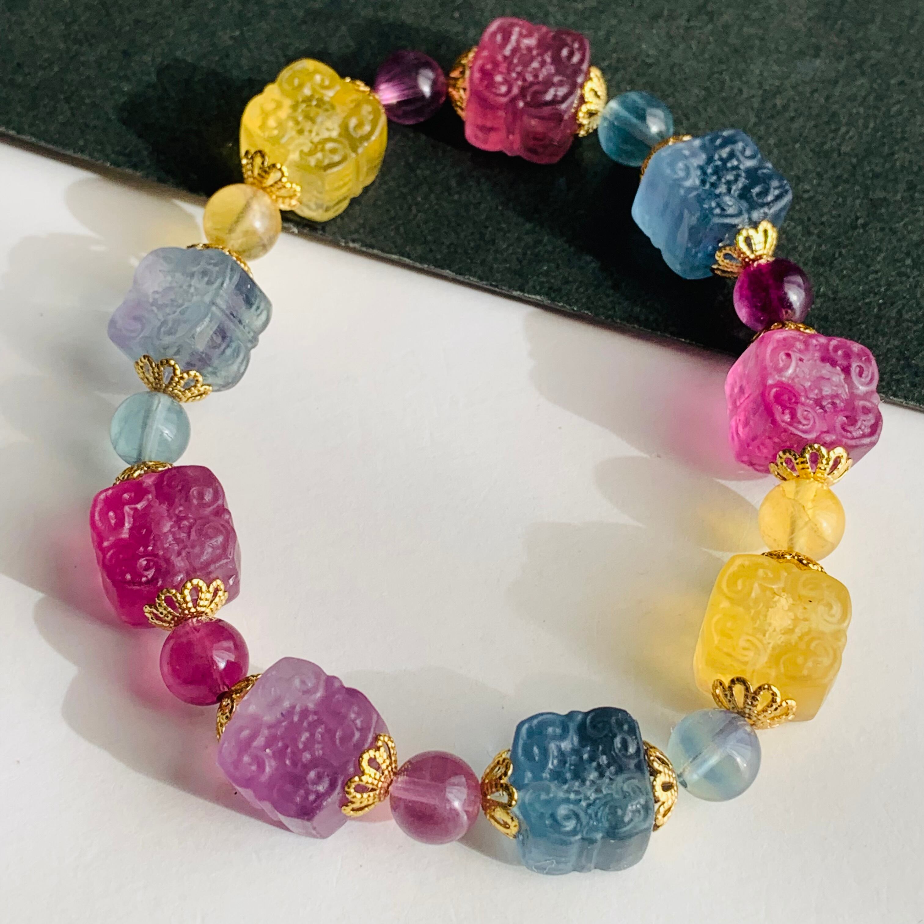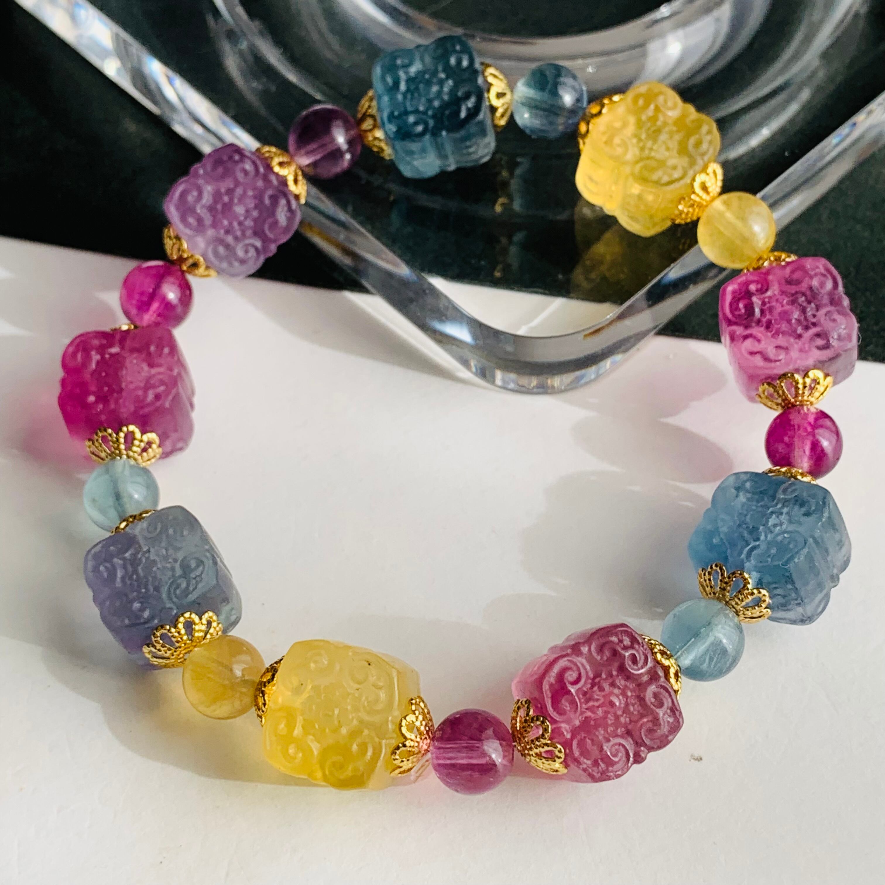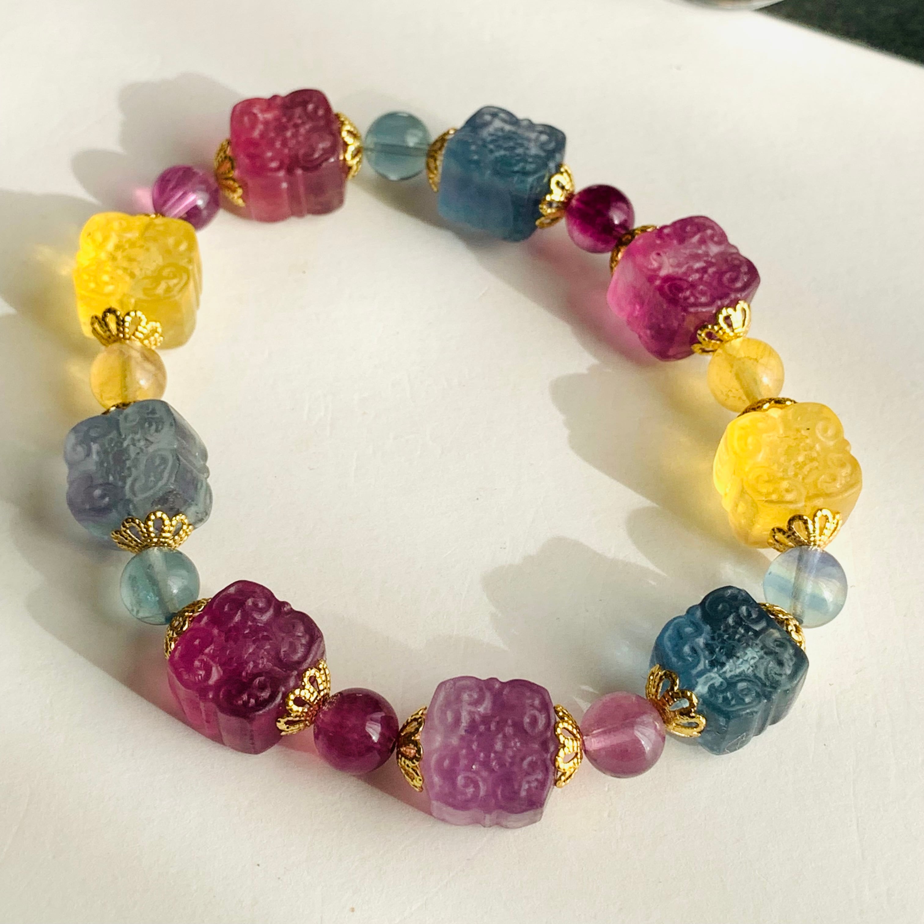フローライト ブレスレット バイカラー 天然石 瑞雲 G116