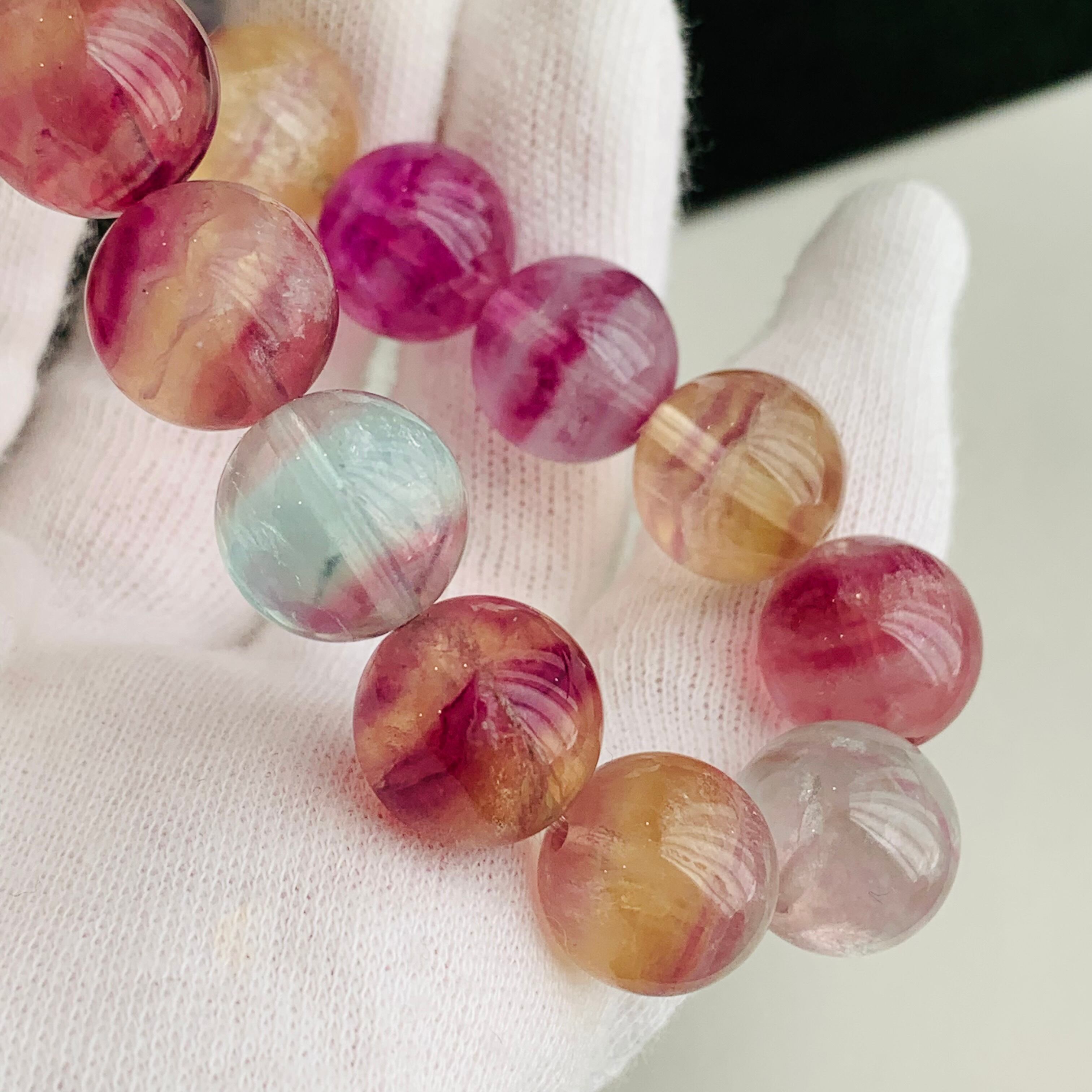 フローライト ブレスレット バイカラー 天然石 13ミリ大珠 G122