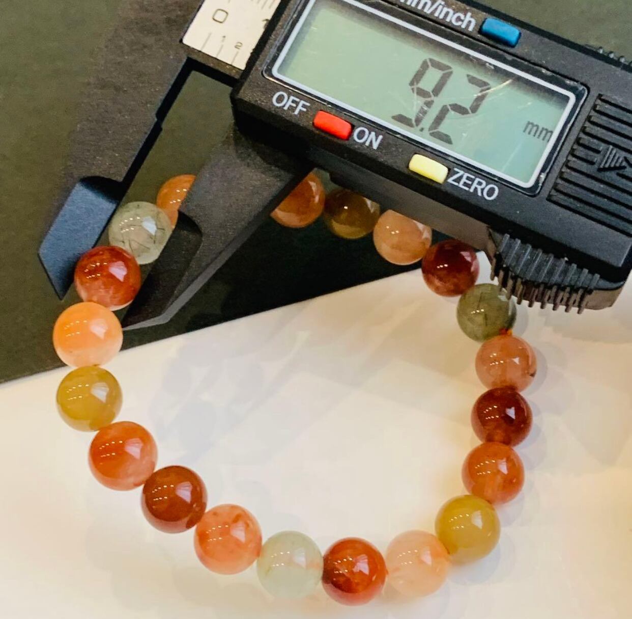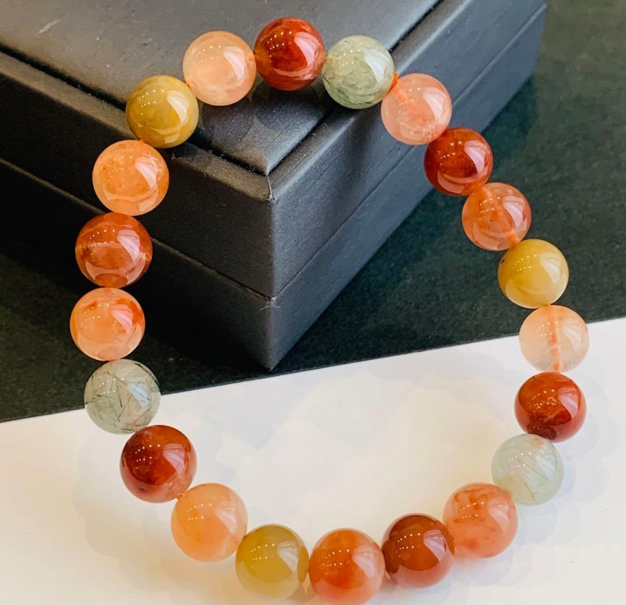 福禄寿は赤黄緑色のラビットヘア水晶です