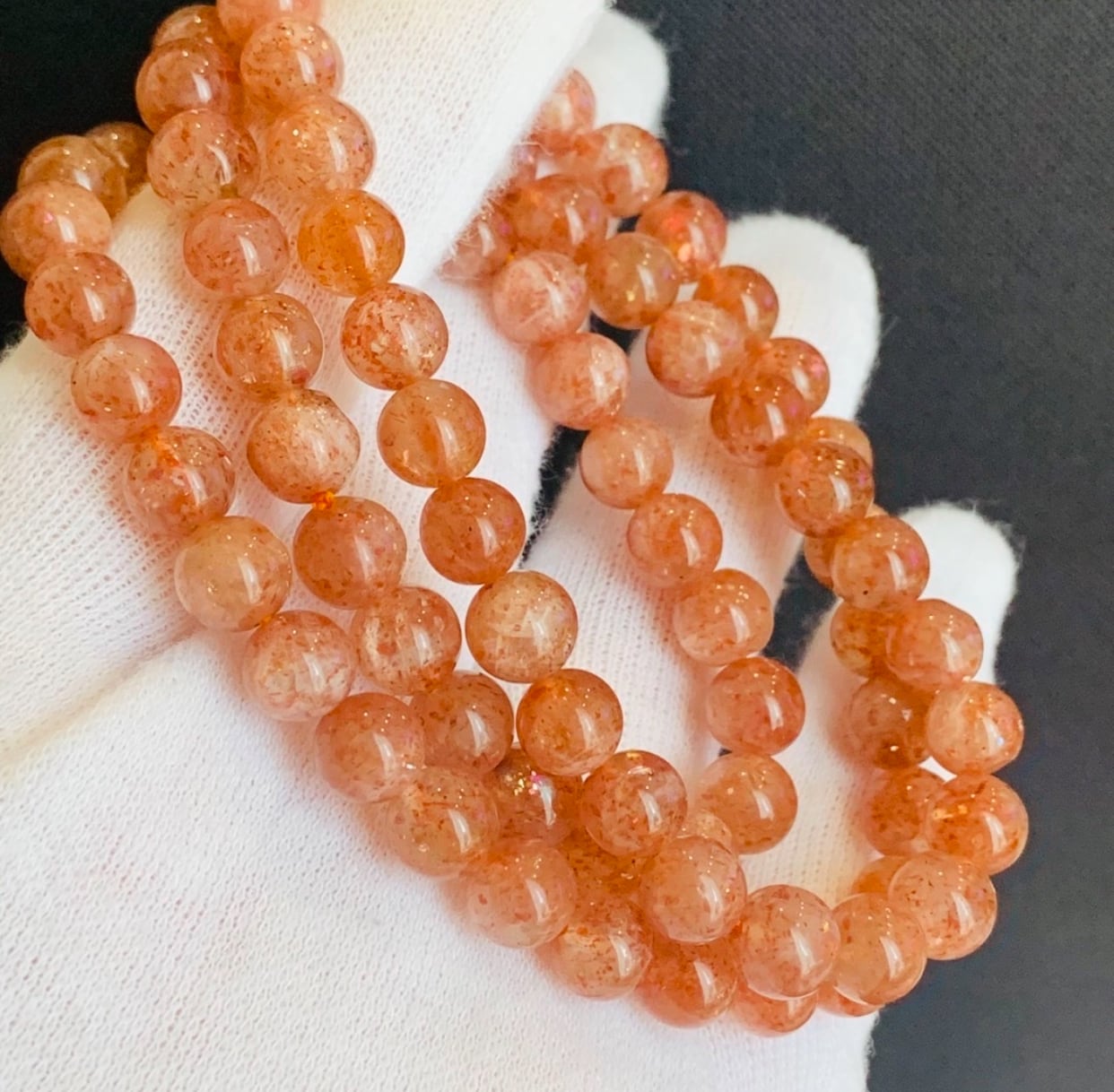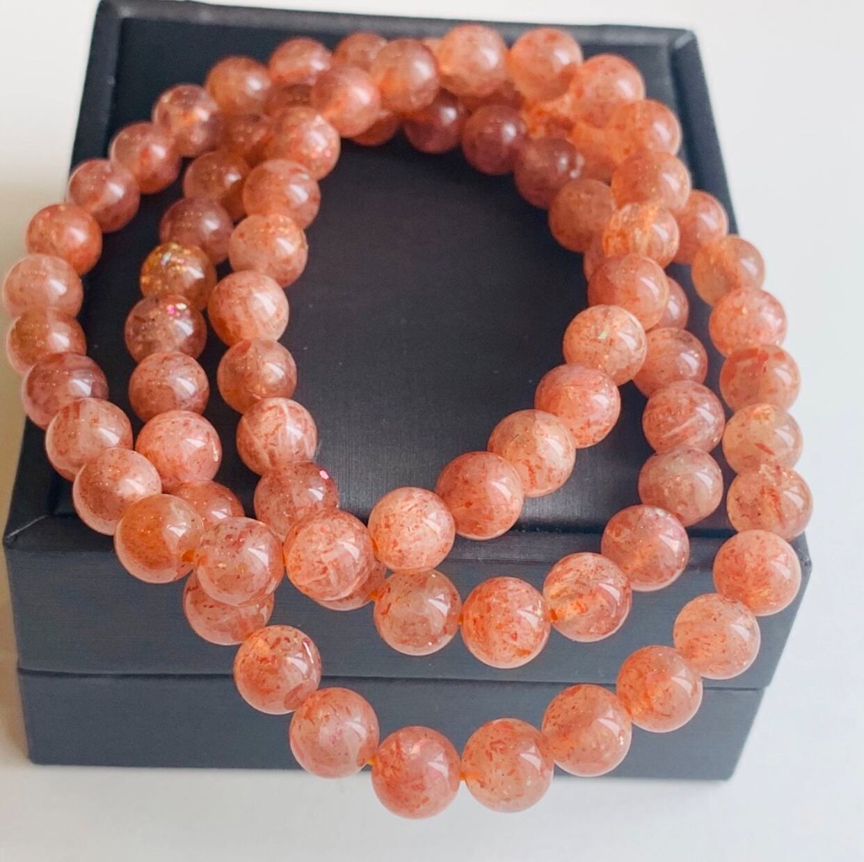 アルーシャサンストーン オレンジサンストーン 太陽の石ブレスレット 3連 39g