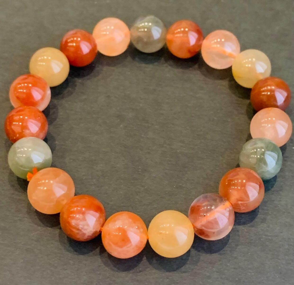 福禄寿は赤黄緑色のラビットヘア水晶です