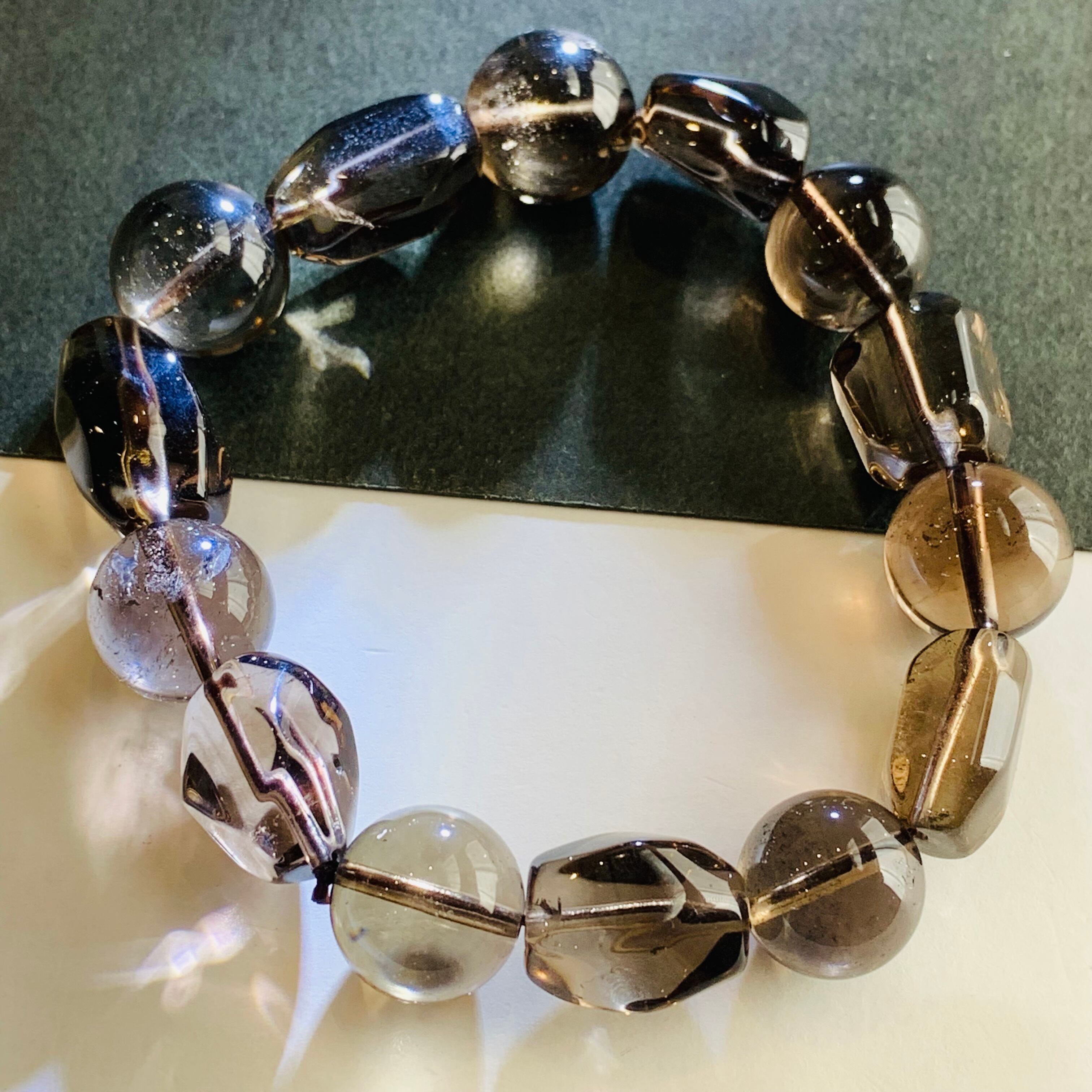 スモーキークォーツ 茶水晶 ブレスレット 12ミリ タンブル G157