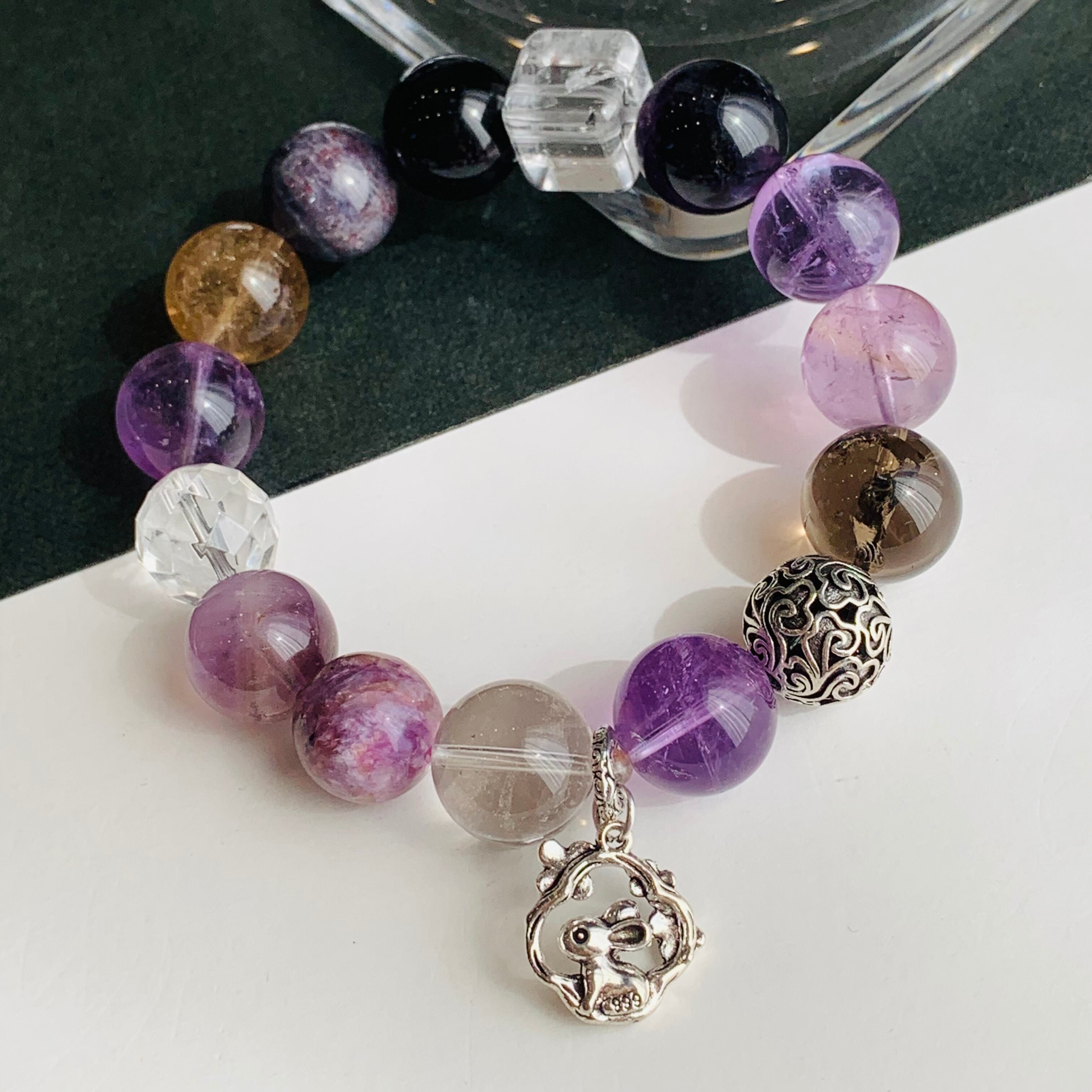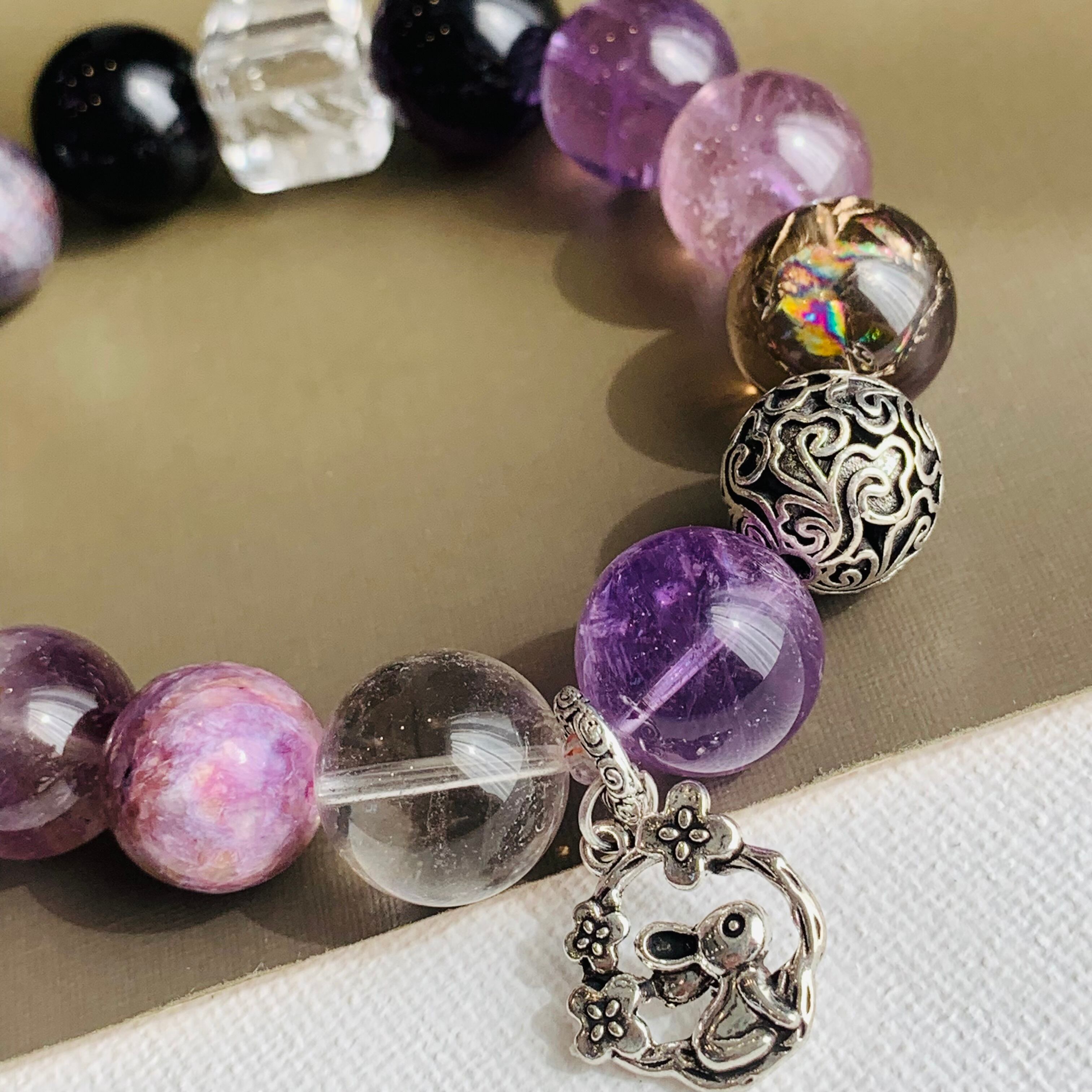 デザインブレスレット 天然石 アメジスト オーラライト23 WG19