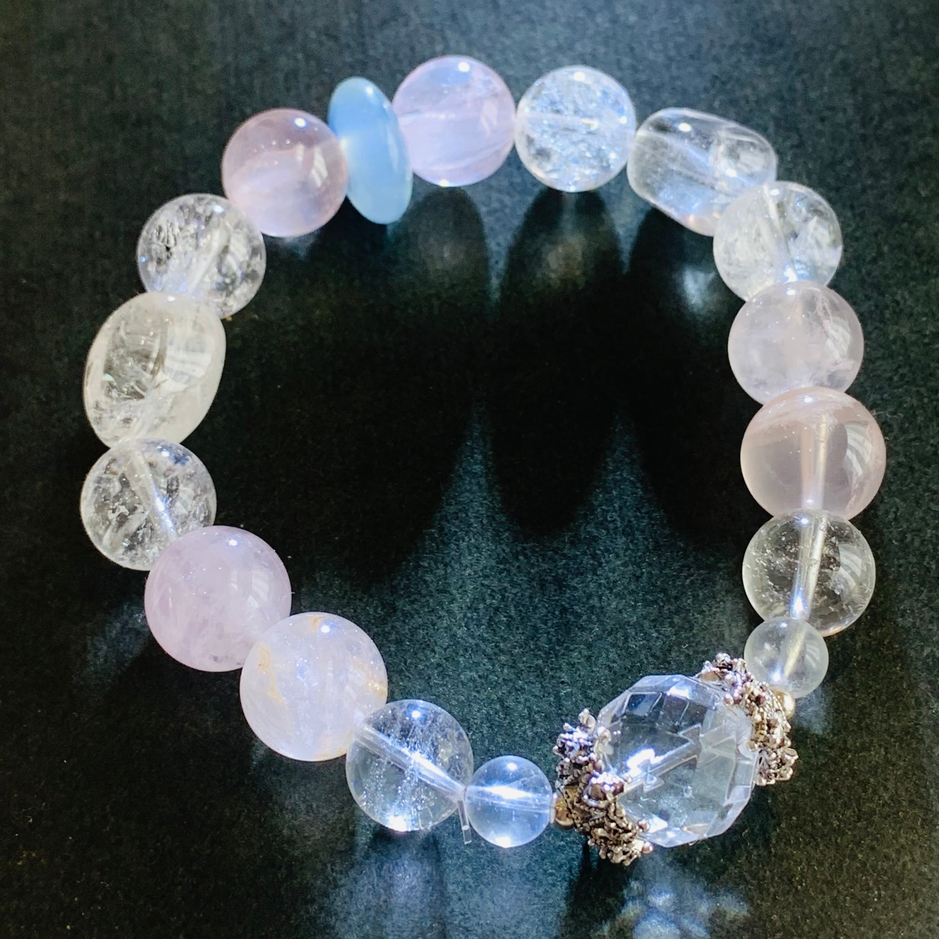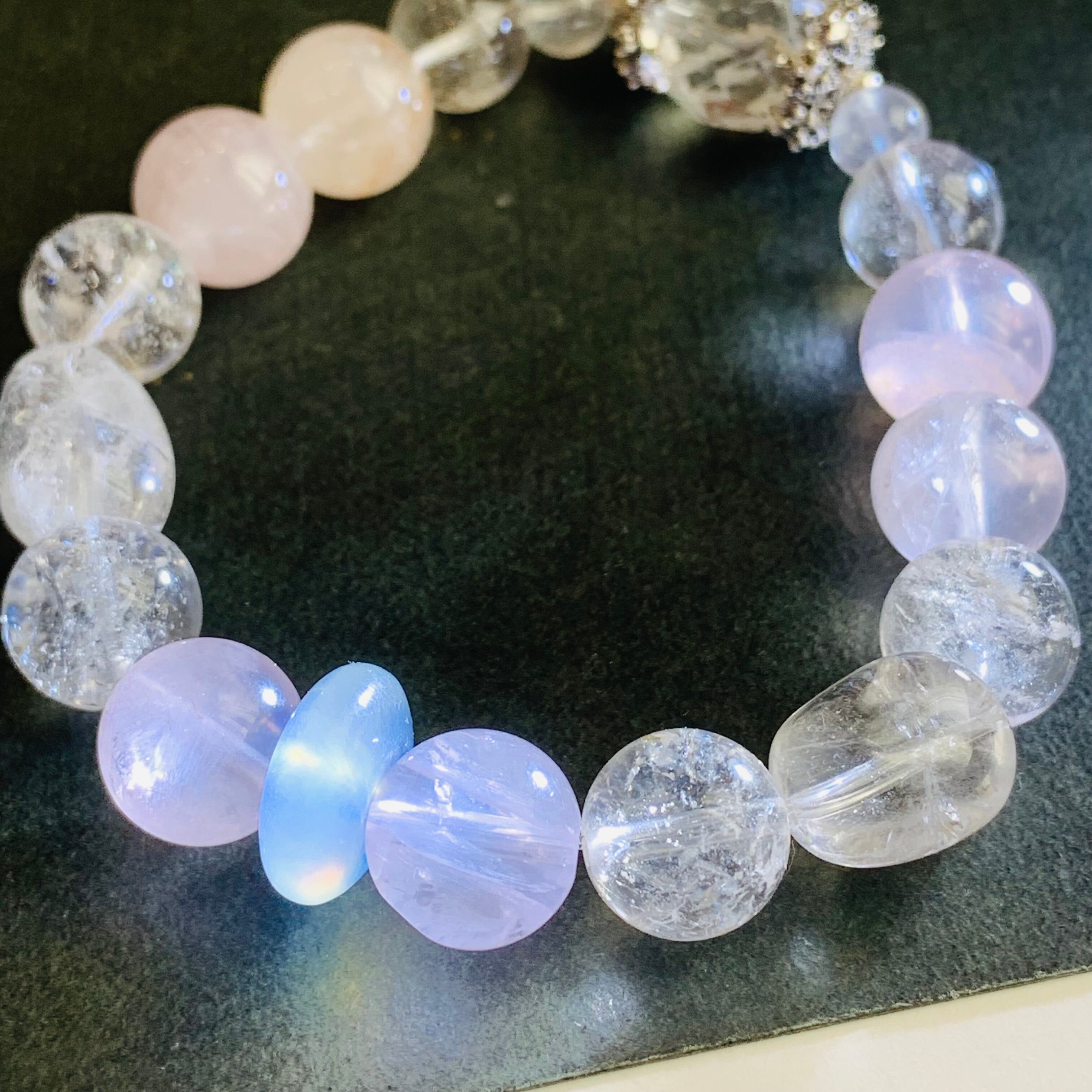 ローズクォーツ アゼツライトブレスレット アクアマリン入り G186