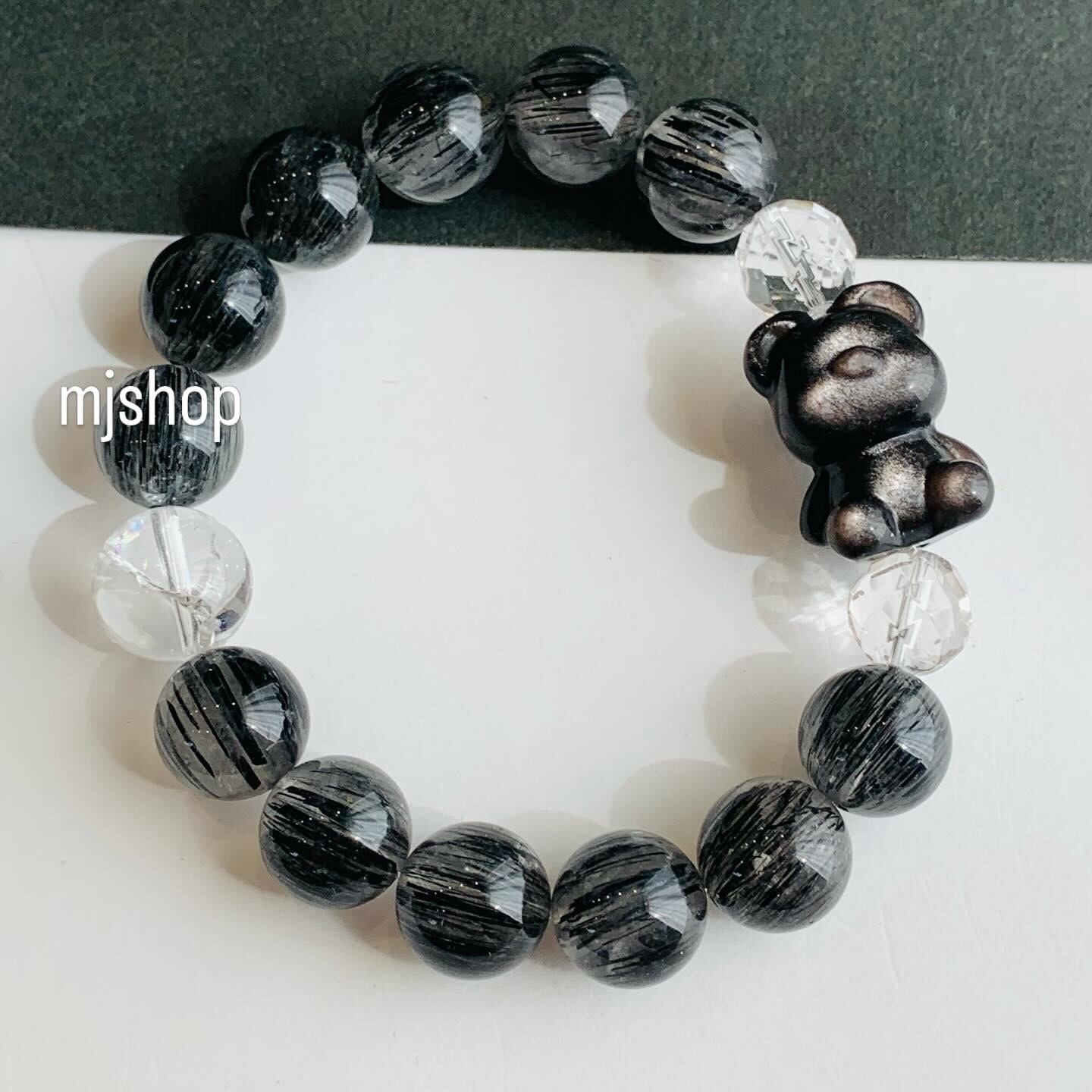 ブラックルチルクォーツ オブシディアン ブレスレット 12㍉大玉 J48