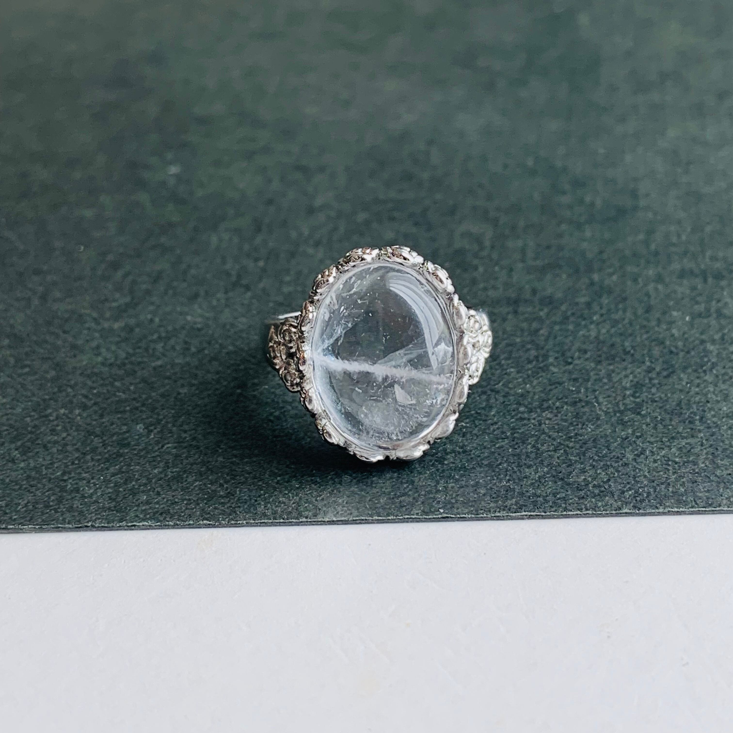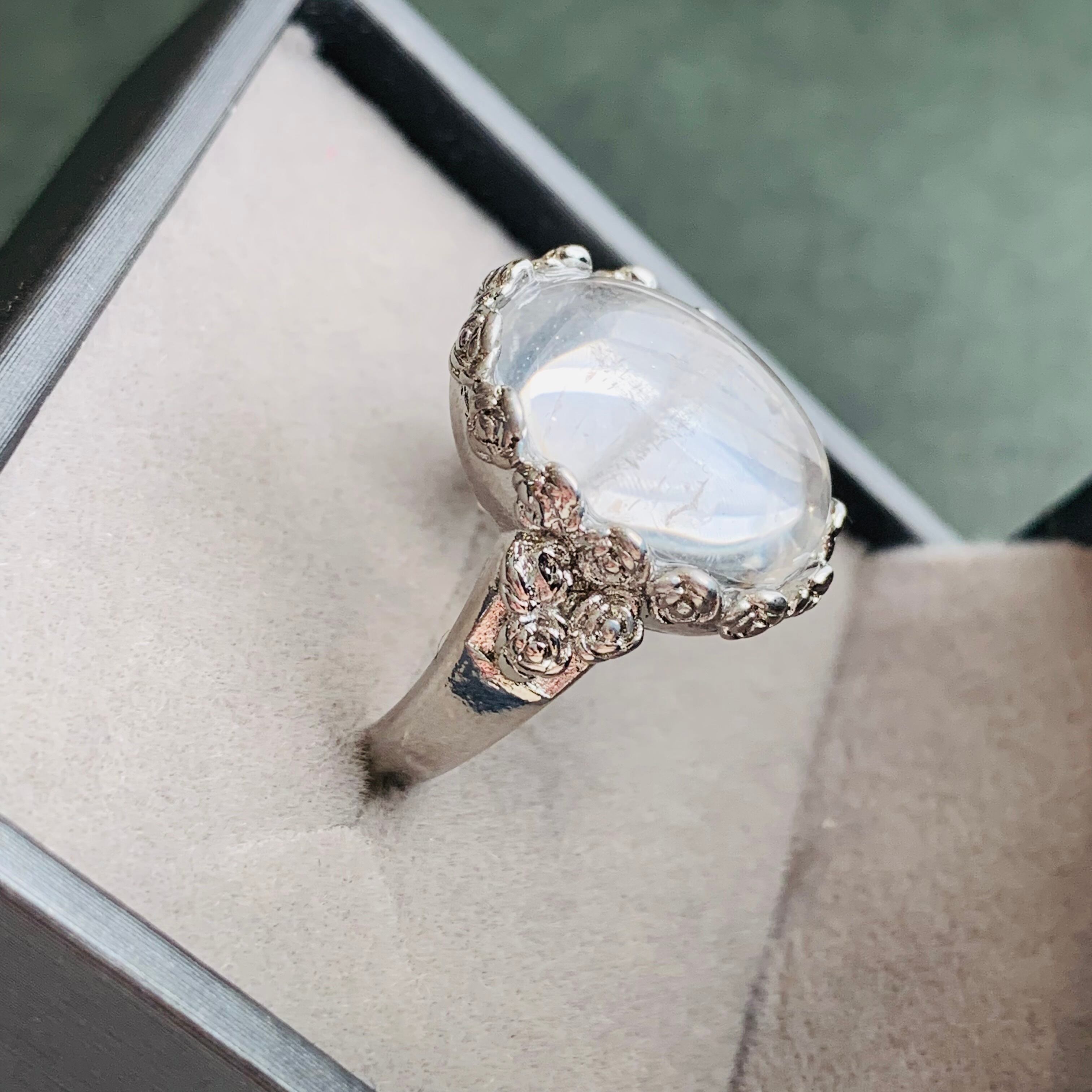 ホワイトガーデンクォーツ天然石リング ビンテージ風指輪 フリーサイズ 合金 4
