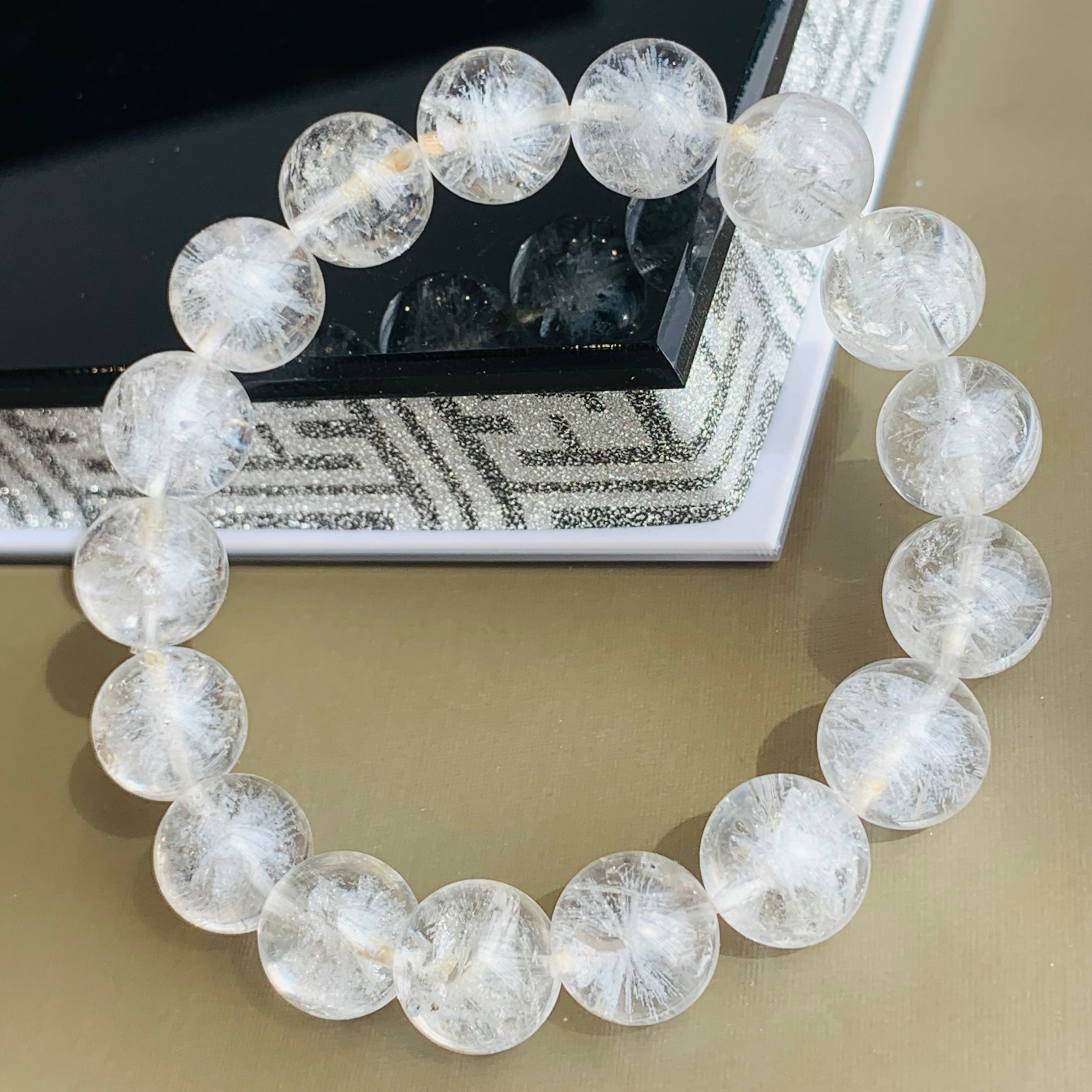 銀銅鉱スノーガーデンクォーツ ブレスレット 12ミリ 雪結晶 K509