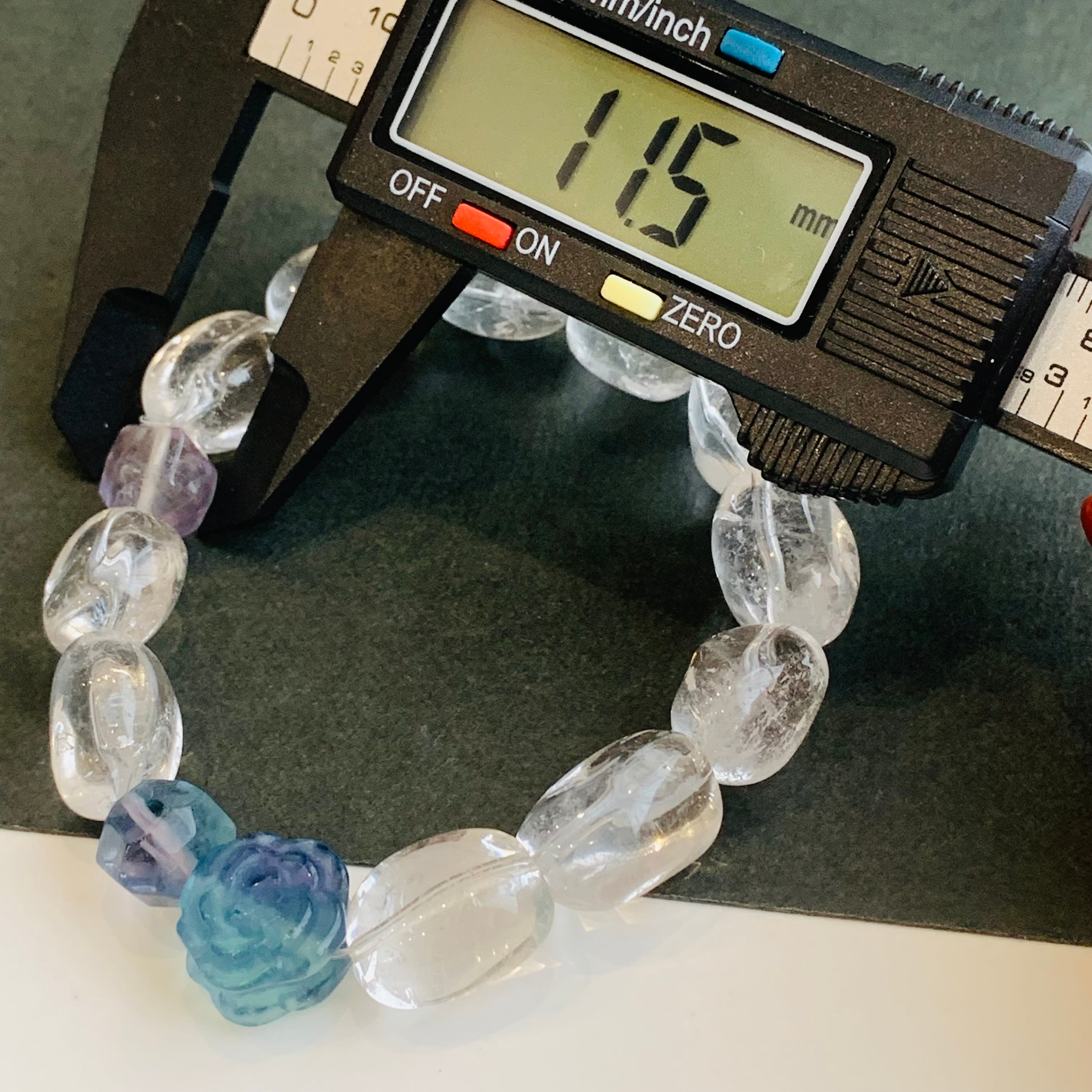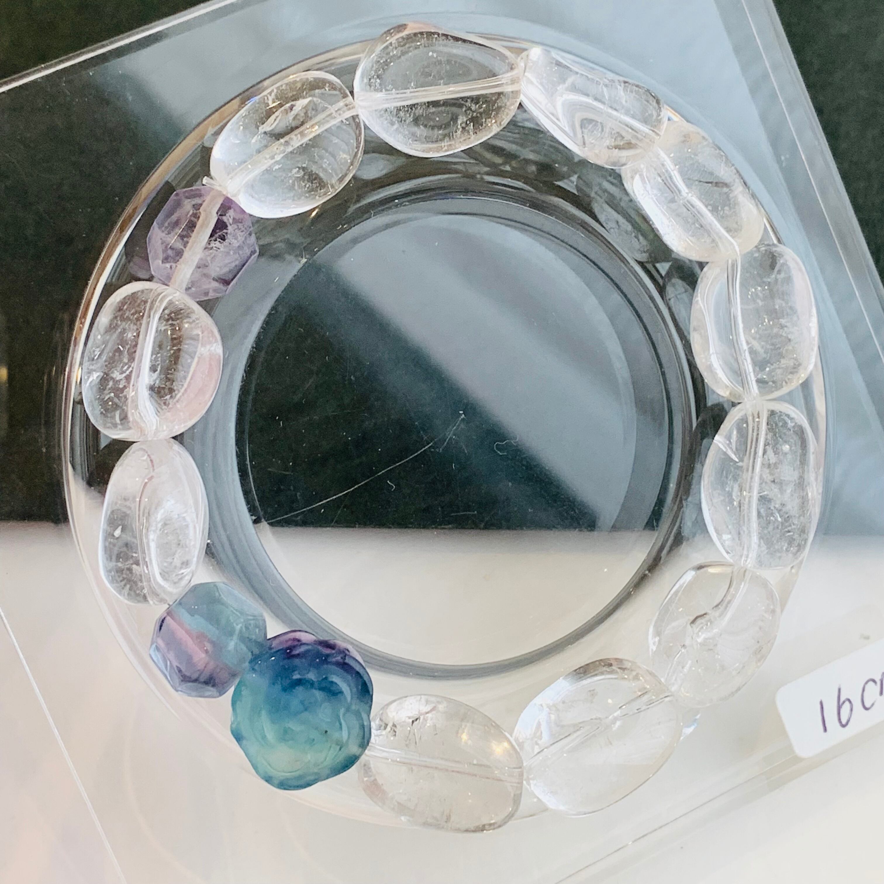 インド産天然クォーツ フローライト 水晶 ブレスレット パワーストーン WGAH