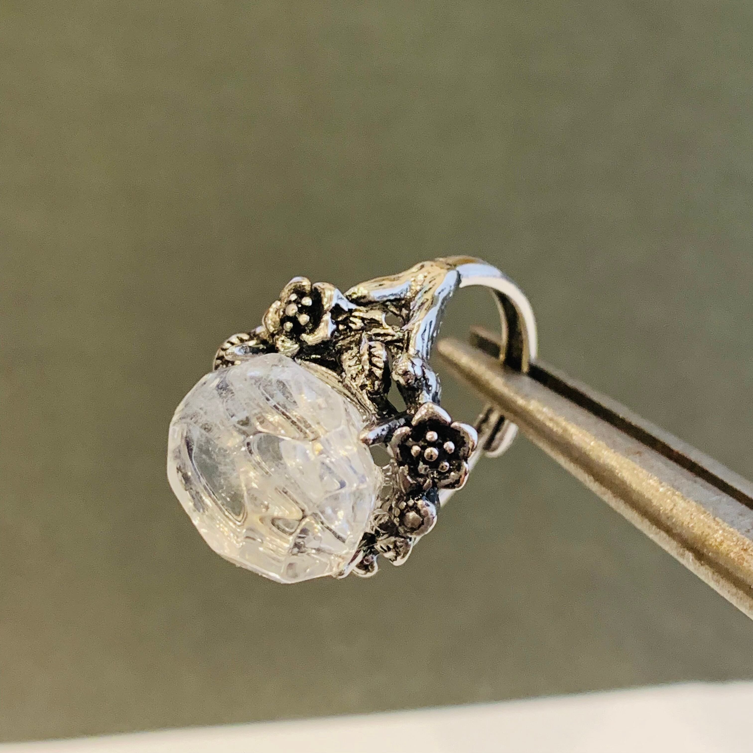 天然水晶リング インド産クリスタルビンテージ風指輪 フリーサイズ 合金 8
