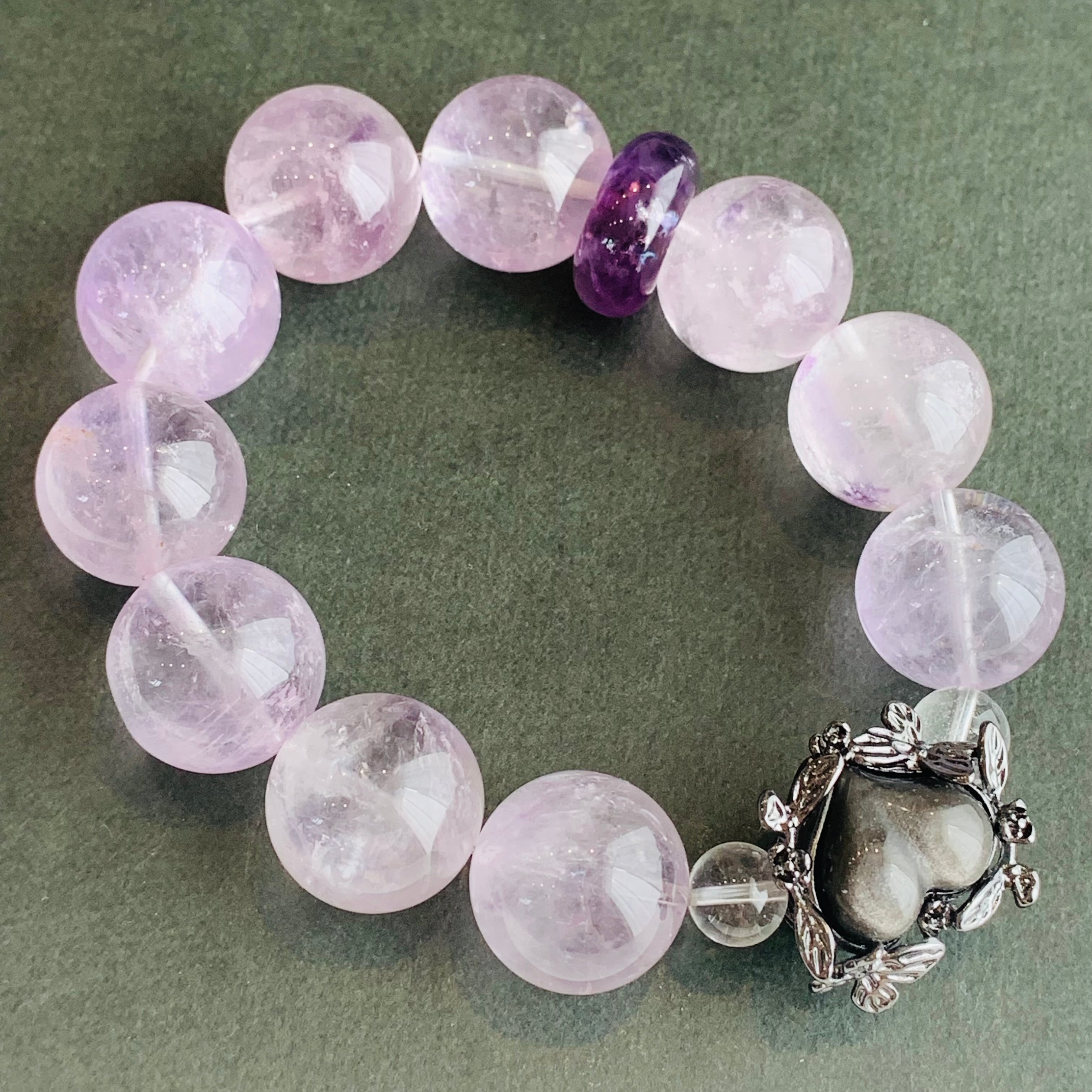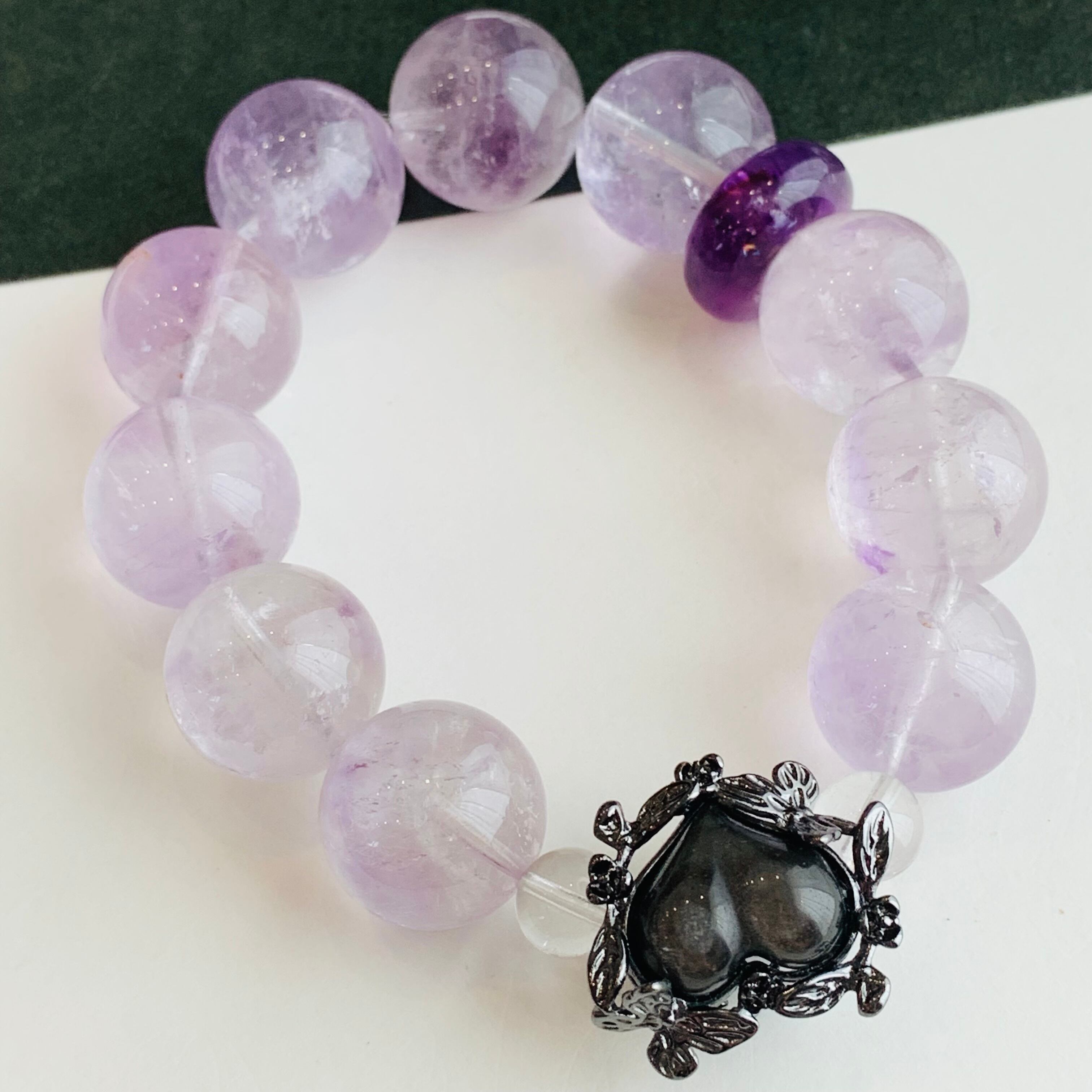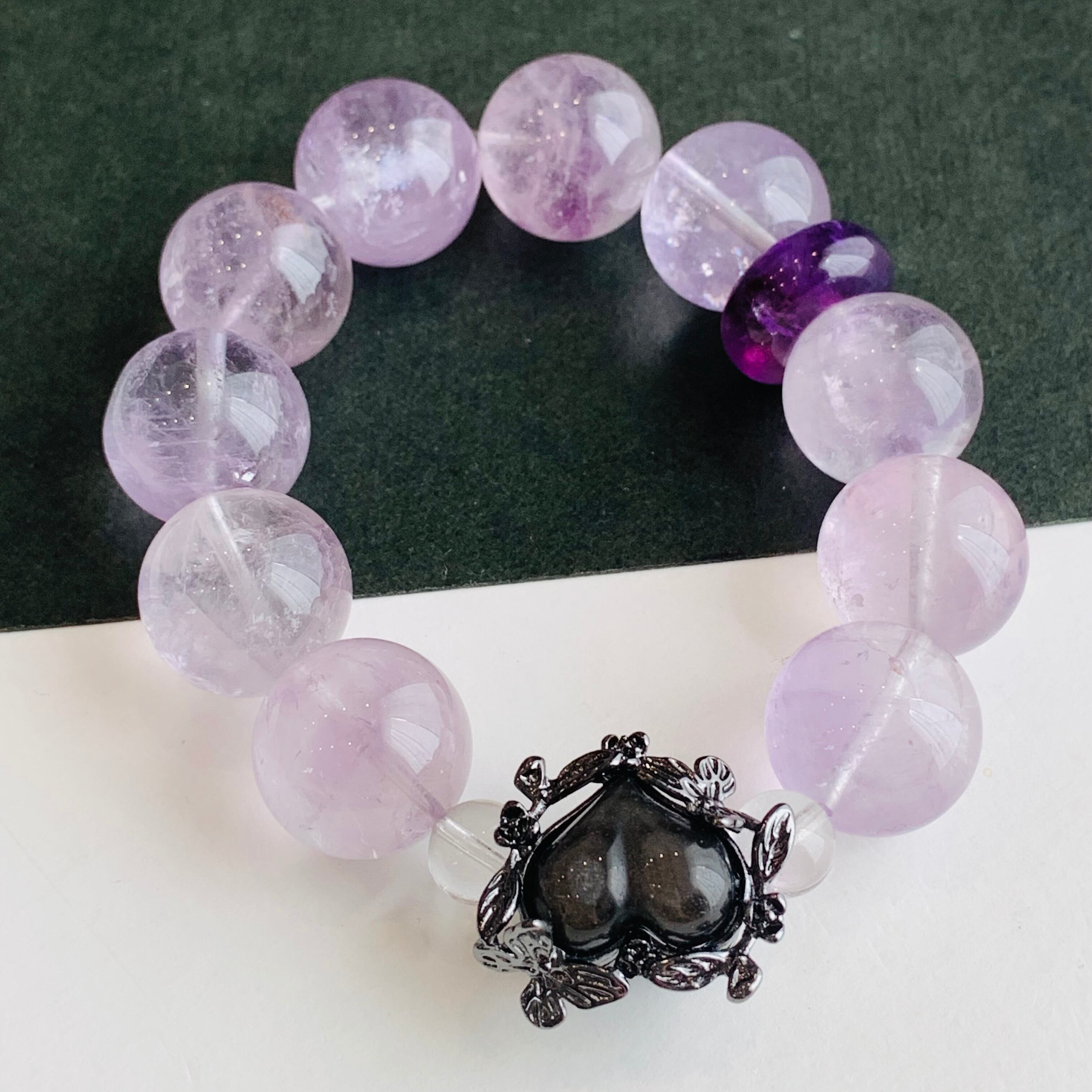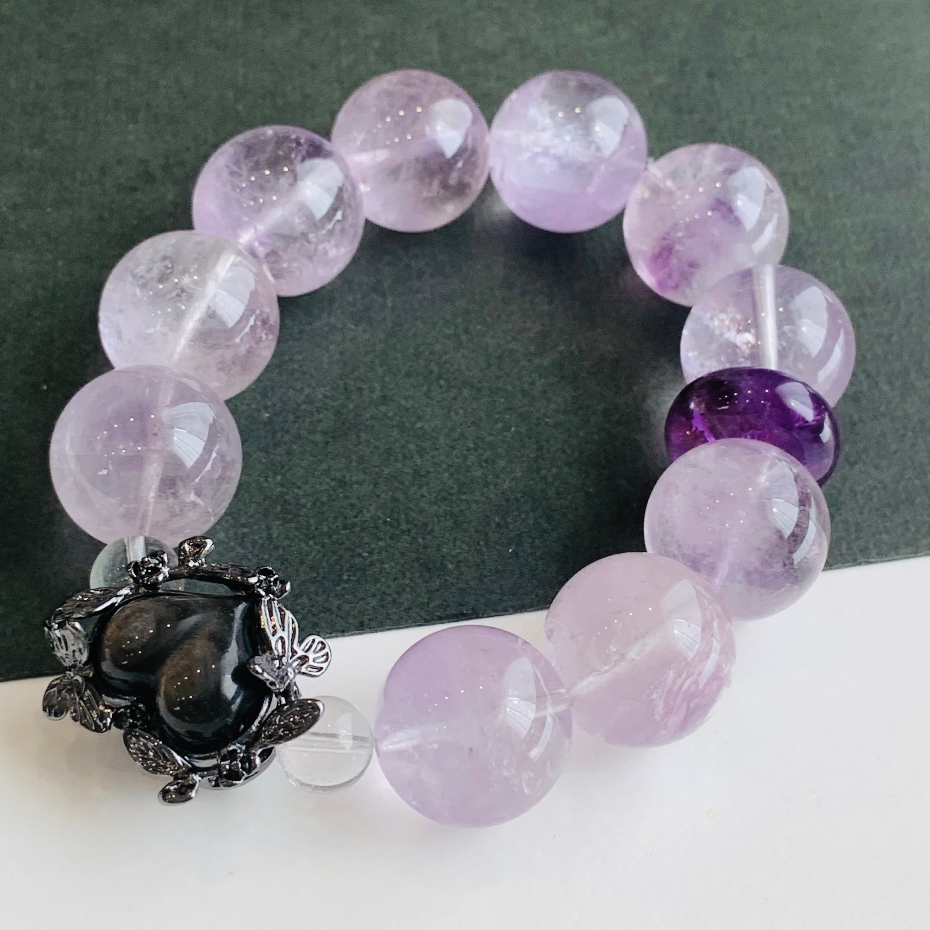 ラベンダーラビットヘアクォーツ ブレスレット 兎毛水晶 天然石 WG17
