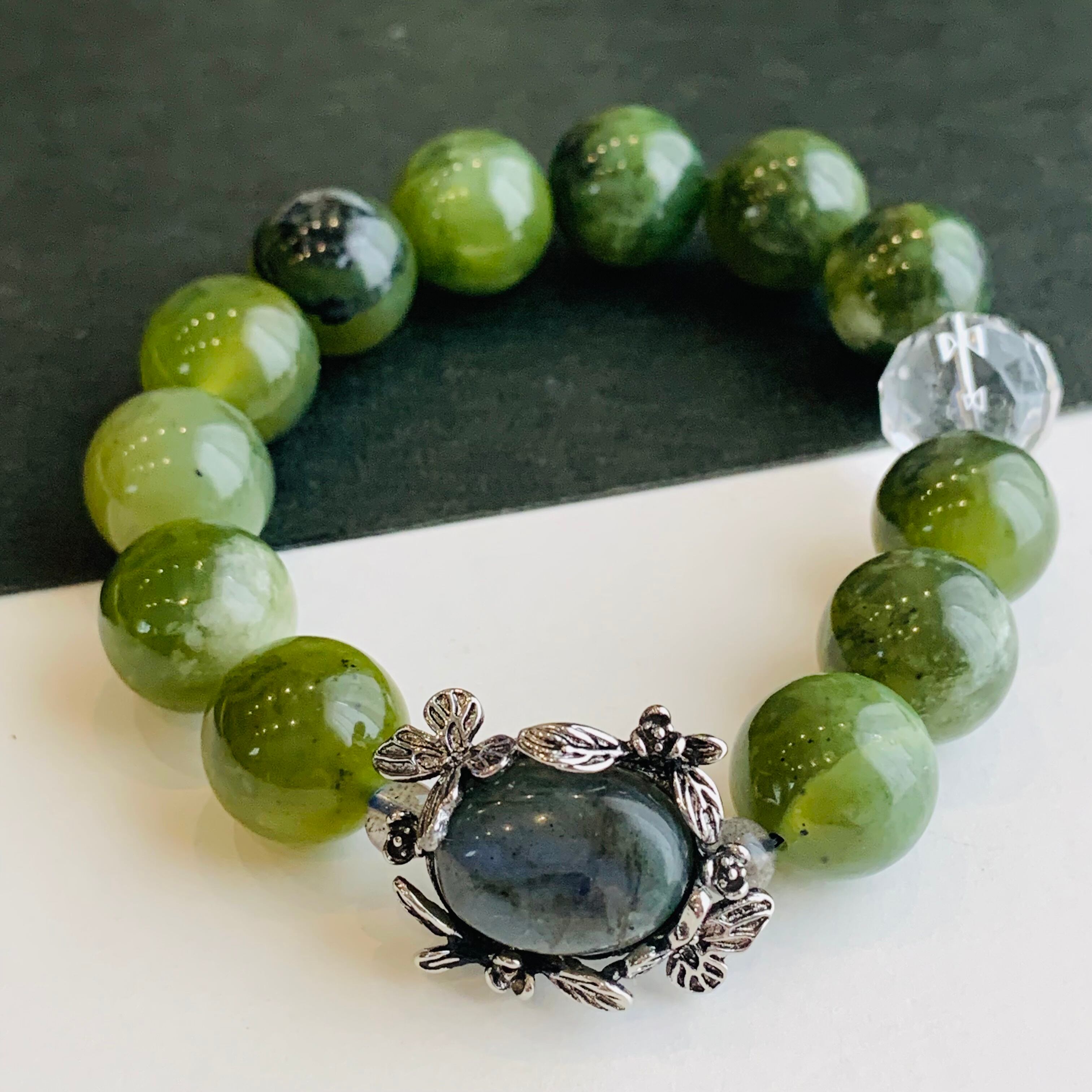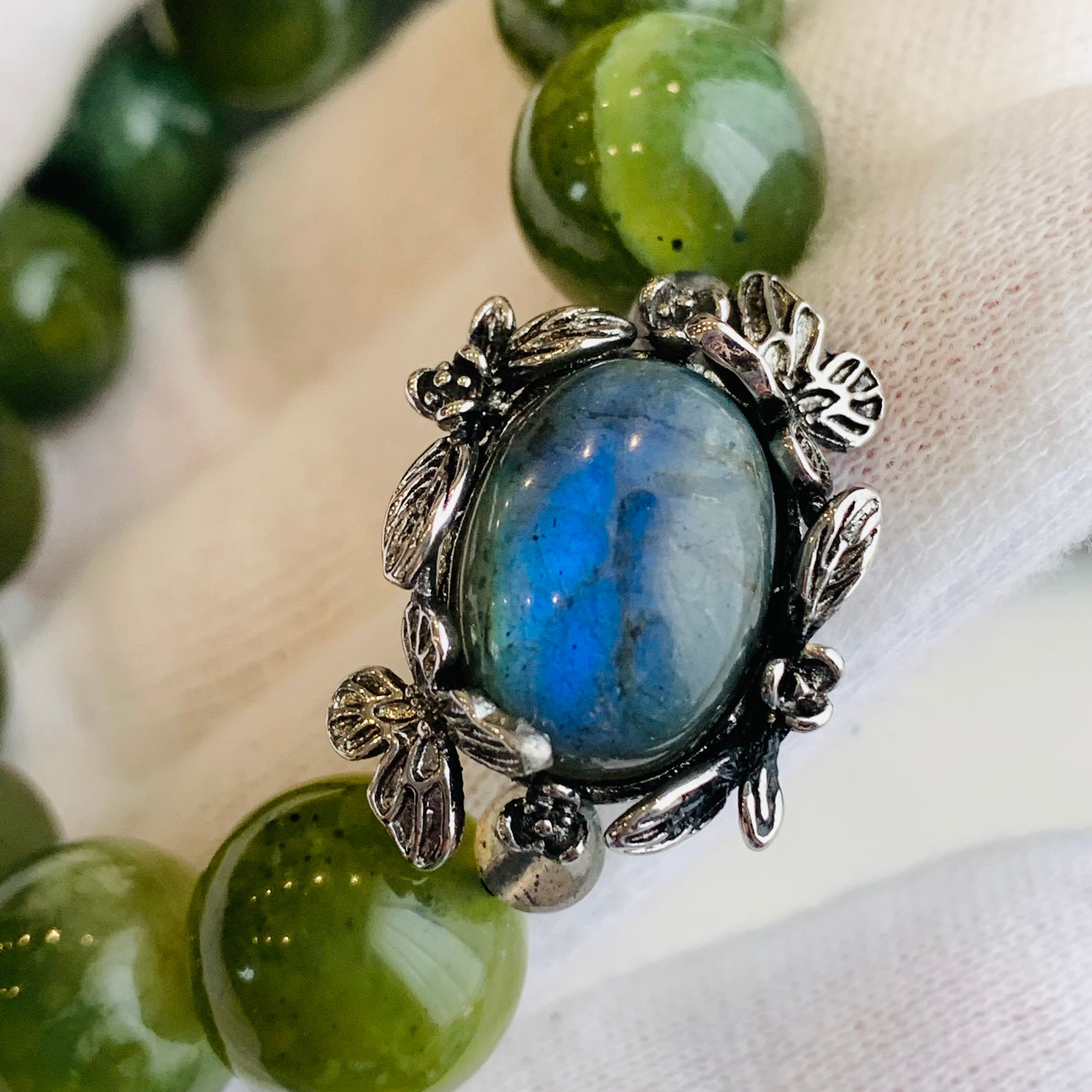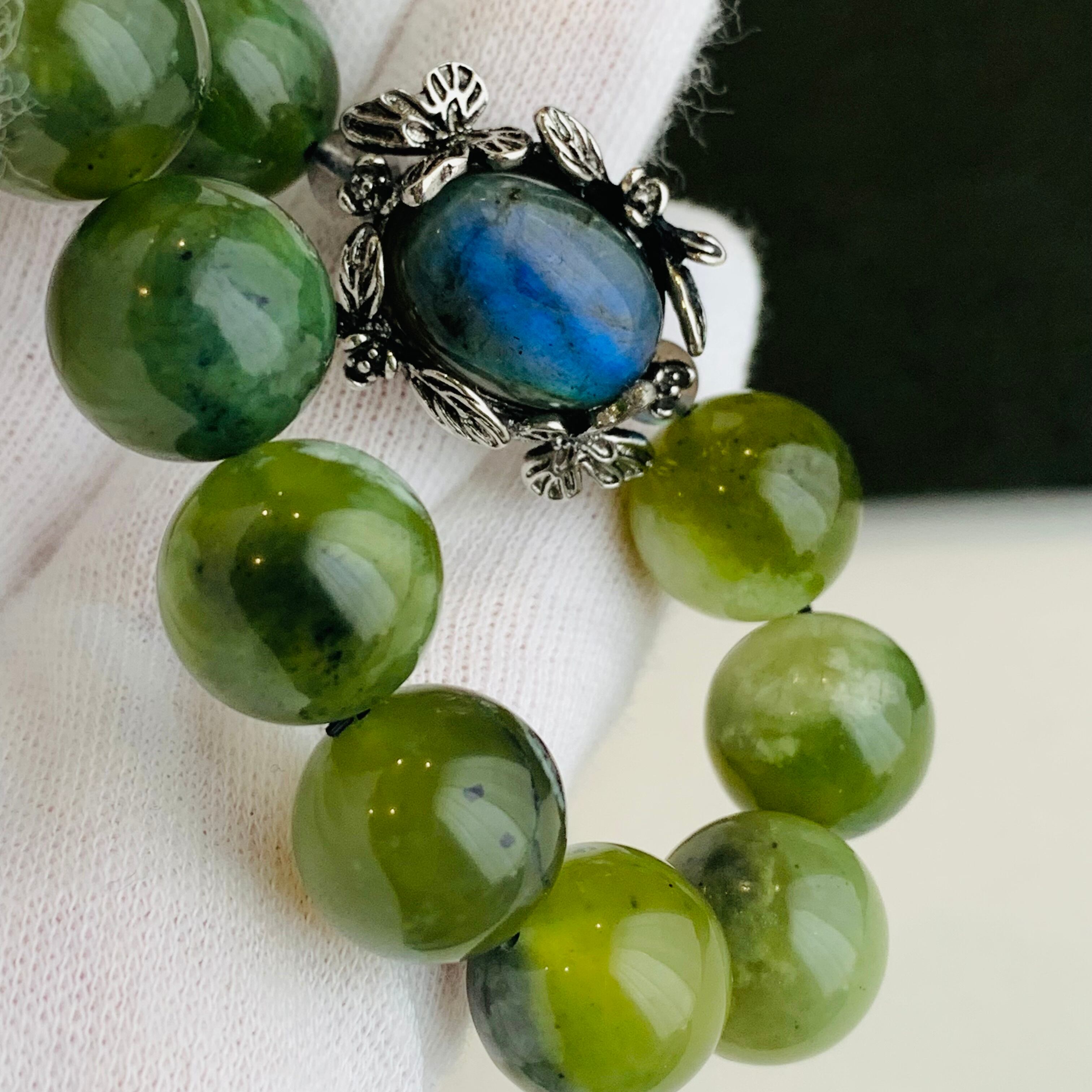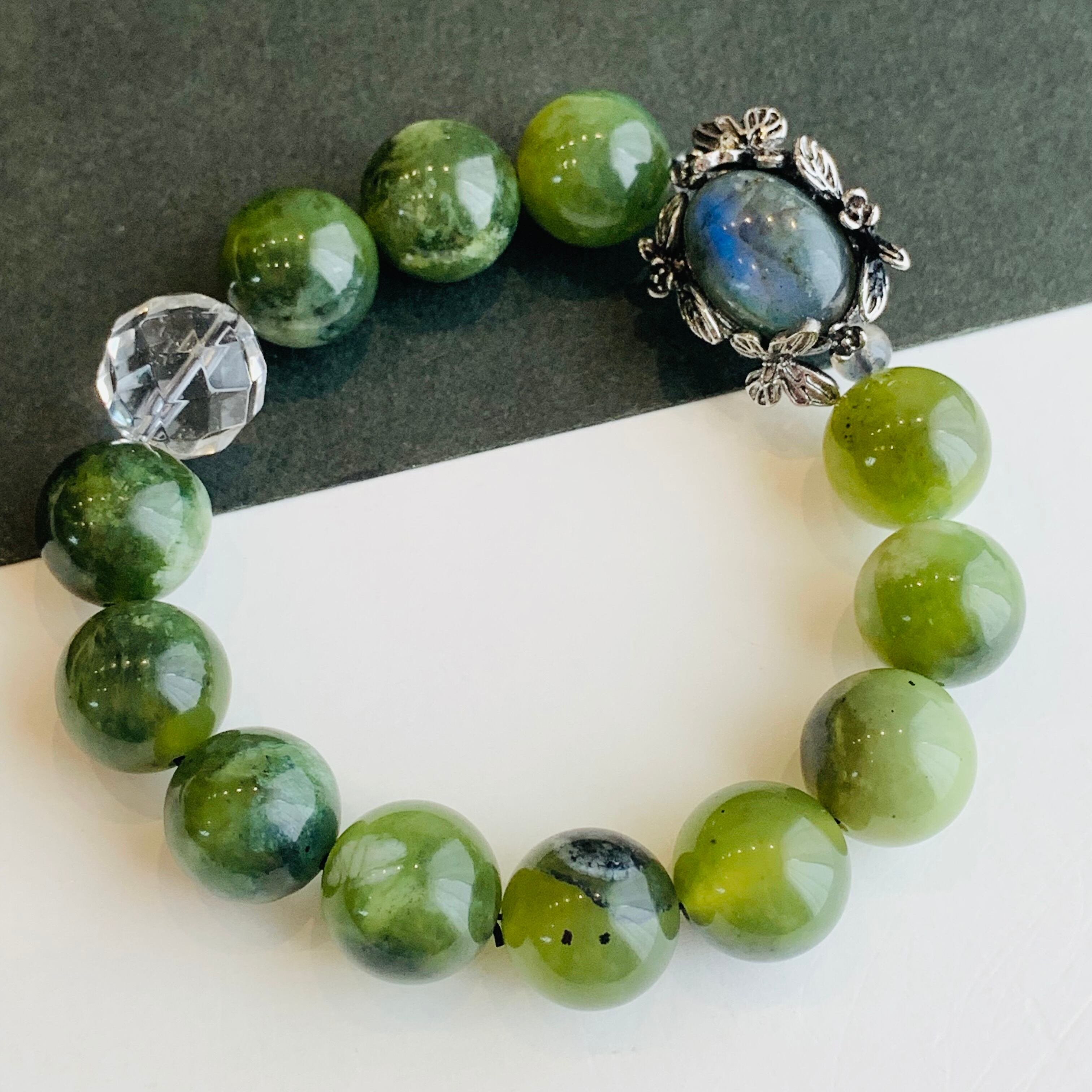 エンジェルフェザー サーペンティン 岫玉(ボーウェナイト)抹茶ミルク ブレスレット WG20