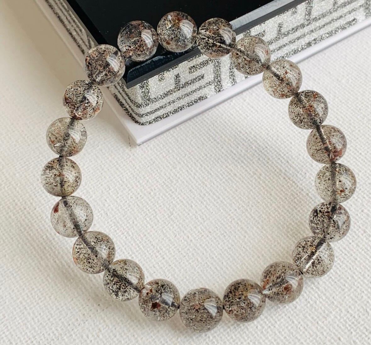 バイオタイトインクォーツ(Biotite in Quartz)とは、水晶の中に黒雲母(バイオタイト)などの鉱物が内包された希少な天然石で、独特の模様と光沢が特徴です。別名「命の石」とも呼ばれ、未来への前進する力や希望をもたらすパワーストーンとして人気があり、孤独や不安を癒し、ポジティブなエネルギーを与える効果があるとされています。