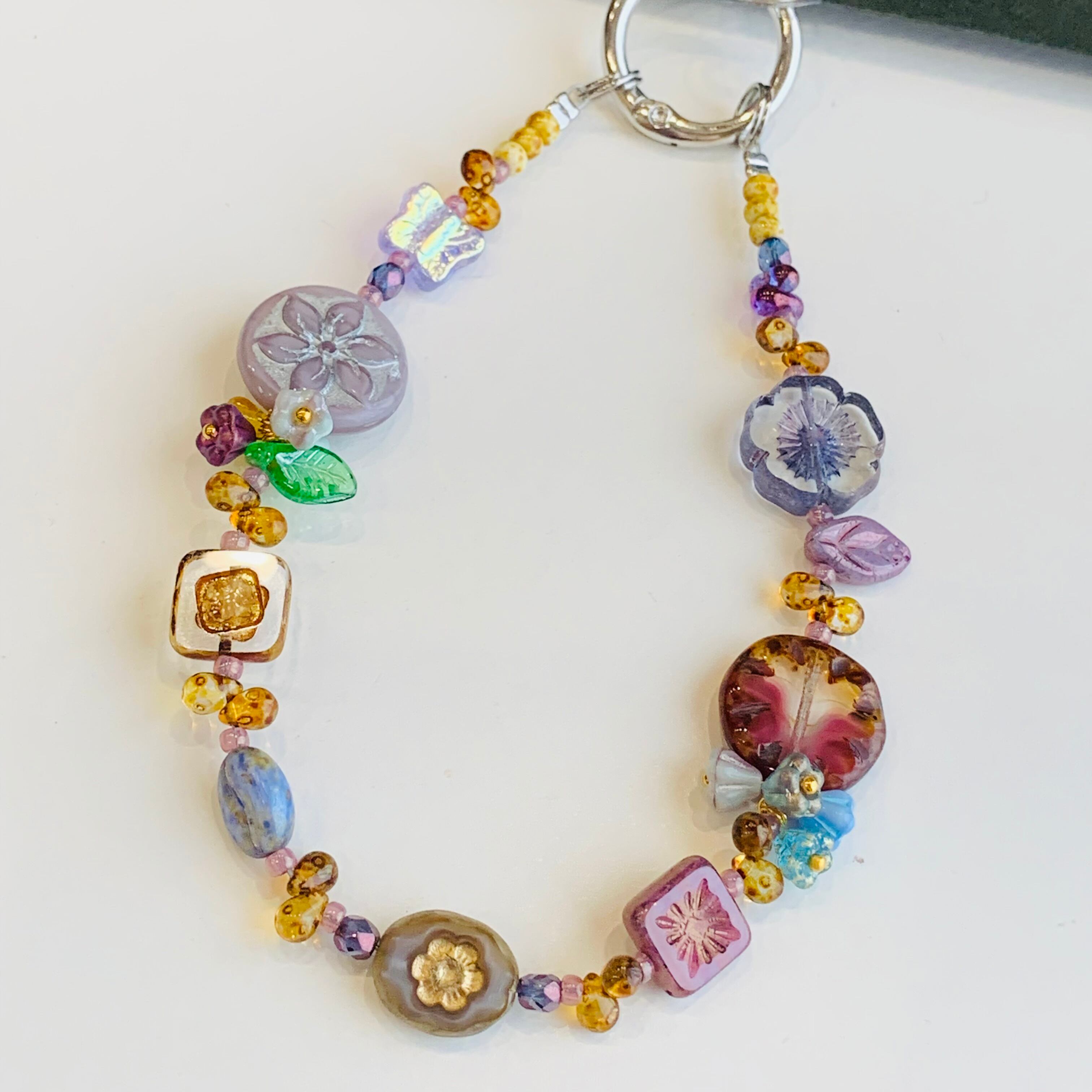スマホストラップ スマホ 携帯 アクセサリー チェコビーズ 花