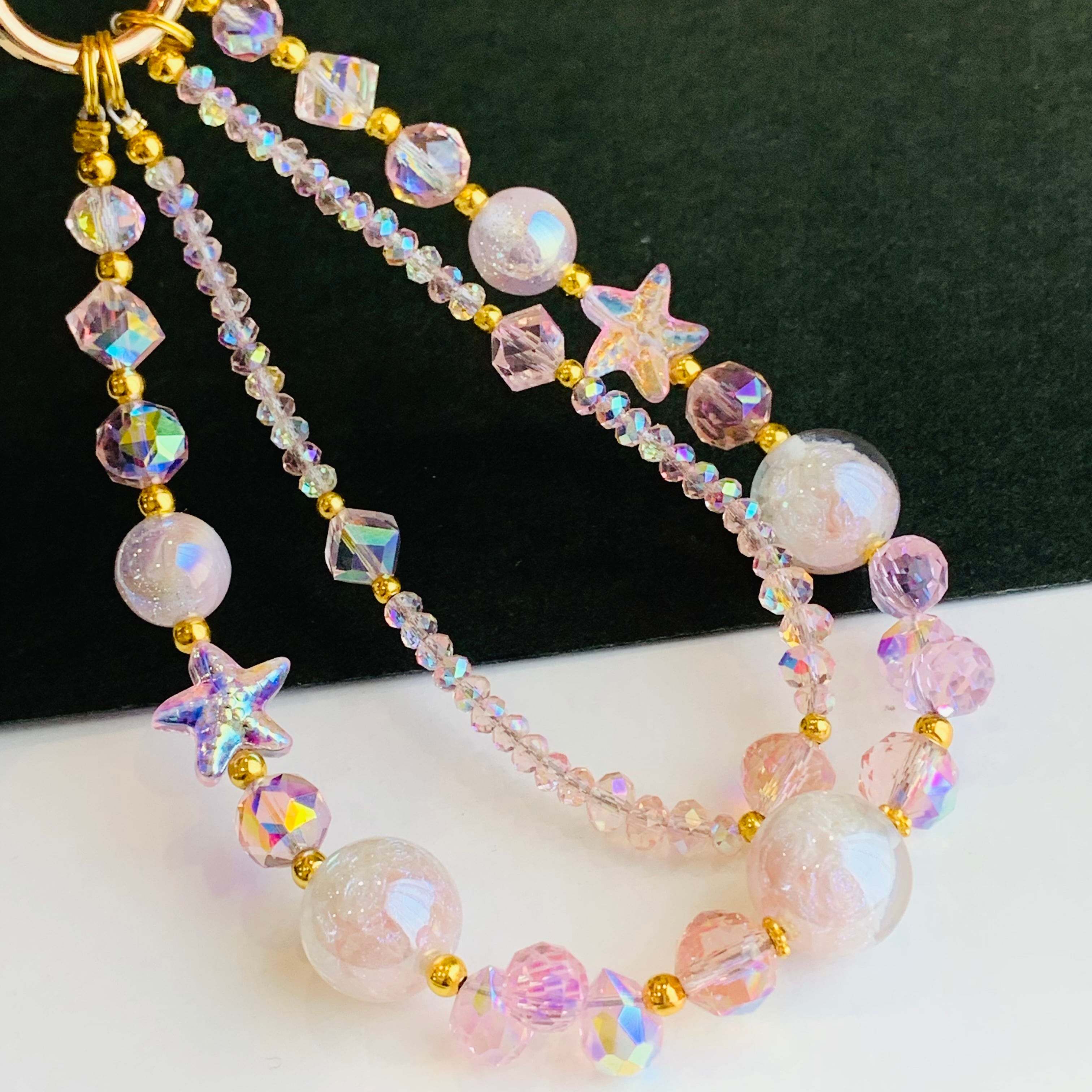 スマホストラップ スマホ 携帯 アクセサリー 押花オーロラビーズ 星