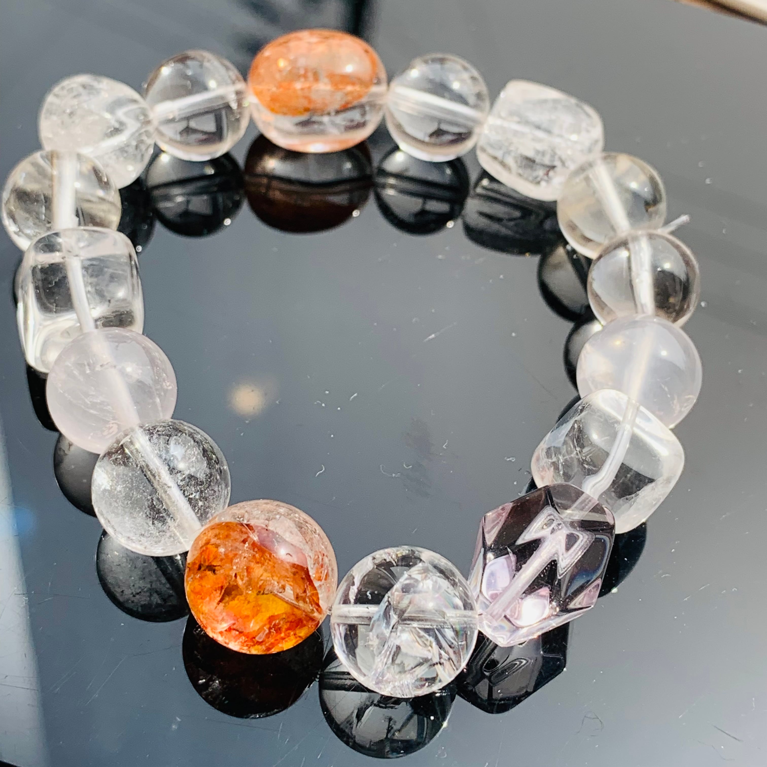 水晶ブレスレット オーロラクォーツ クリスタル アメジスト ローズクォーツB12