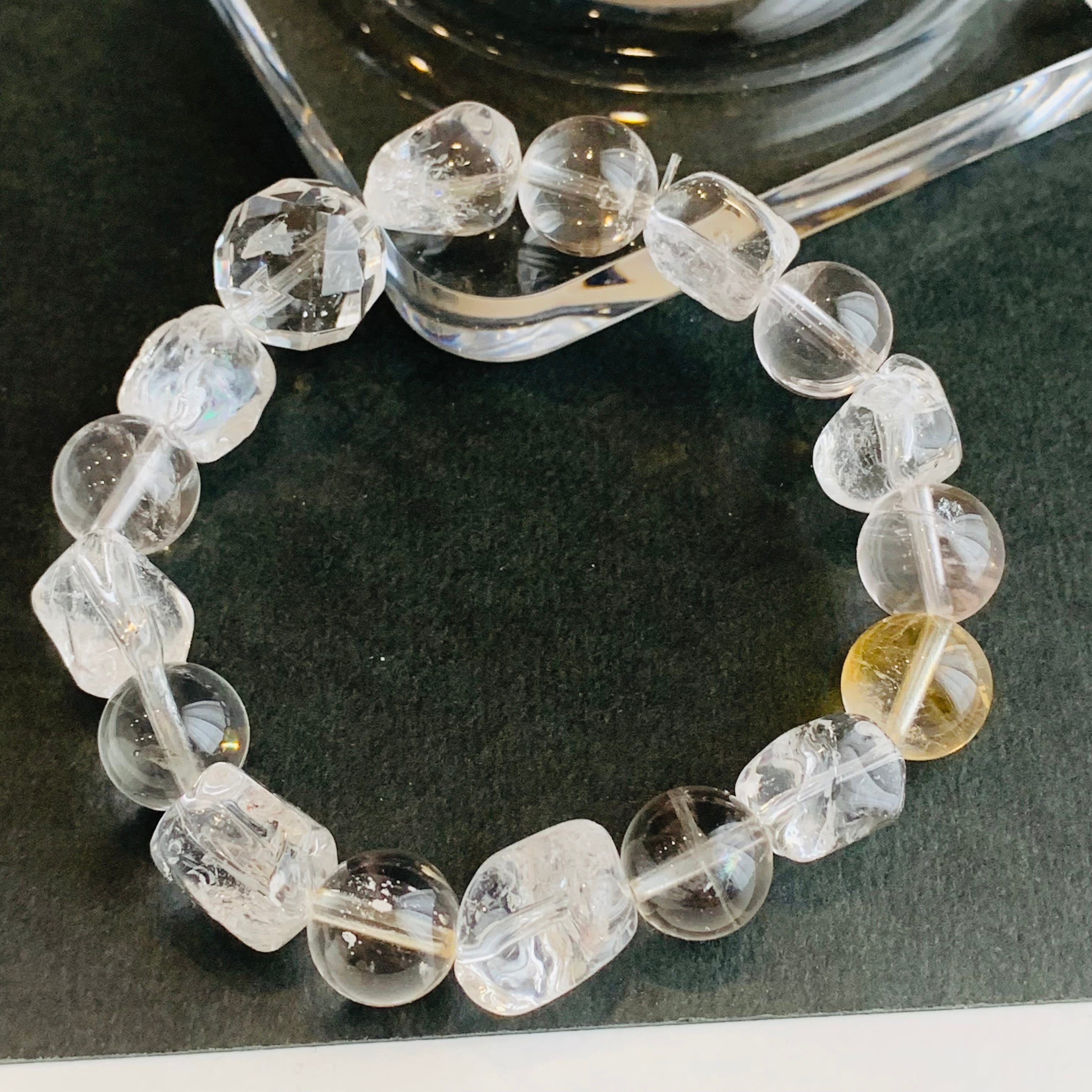 いろんな形のインド産クリスタルにシトリン1粒付きのブレスレット