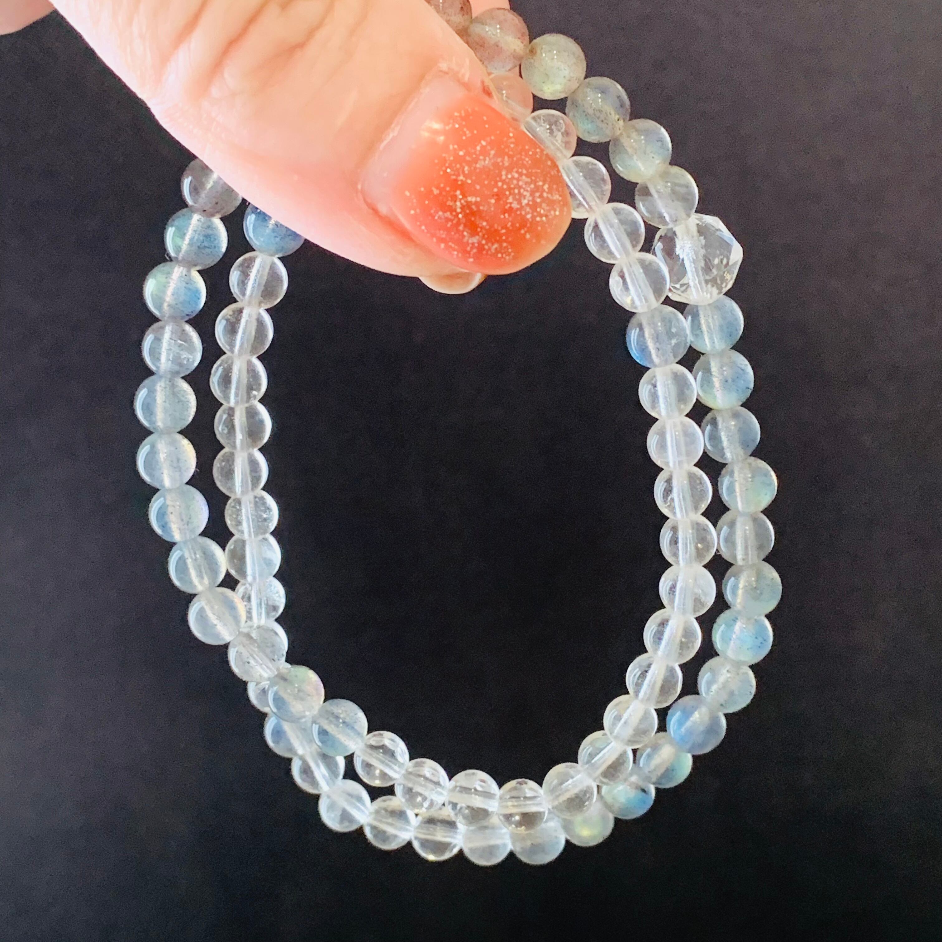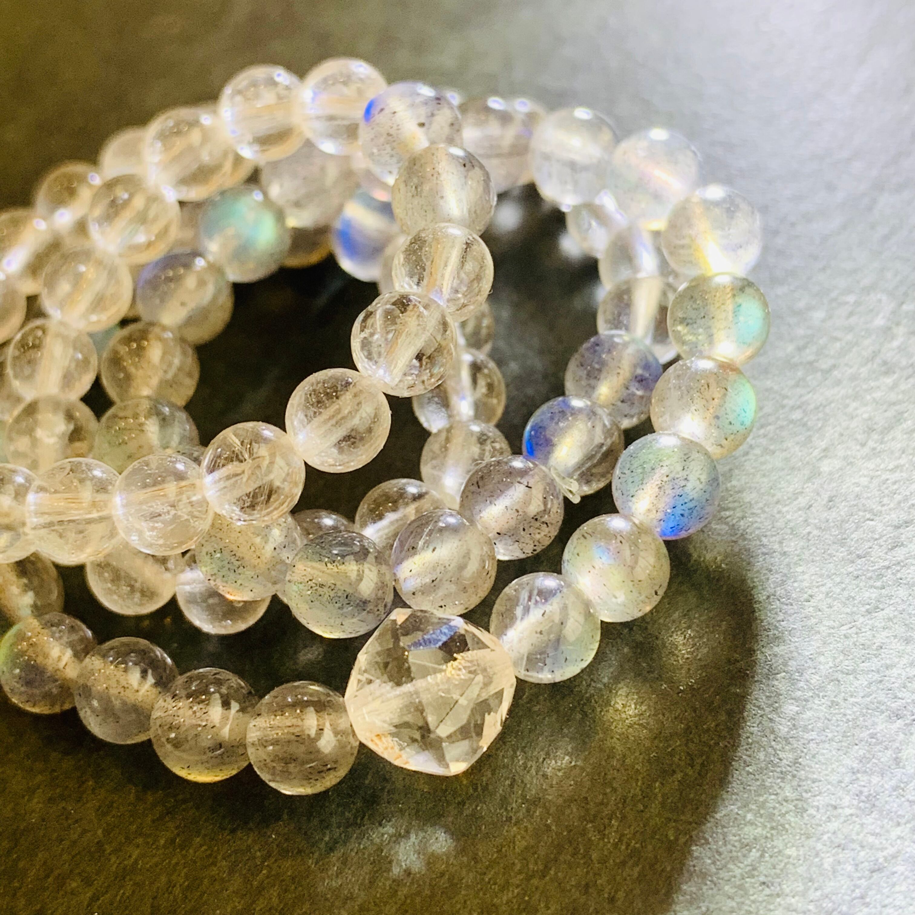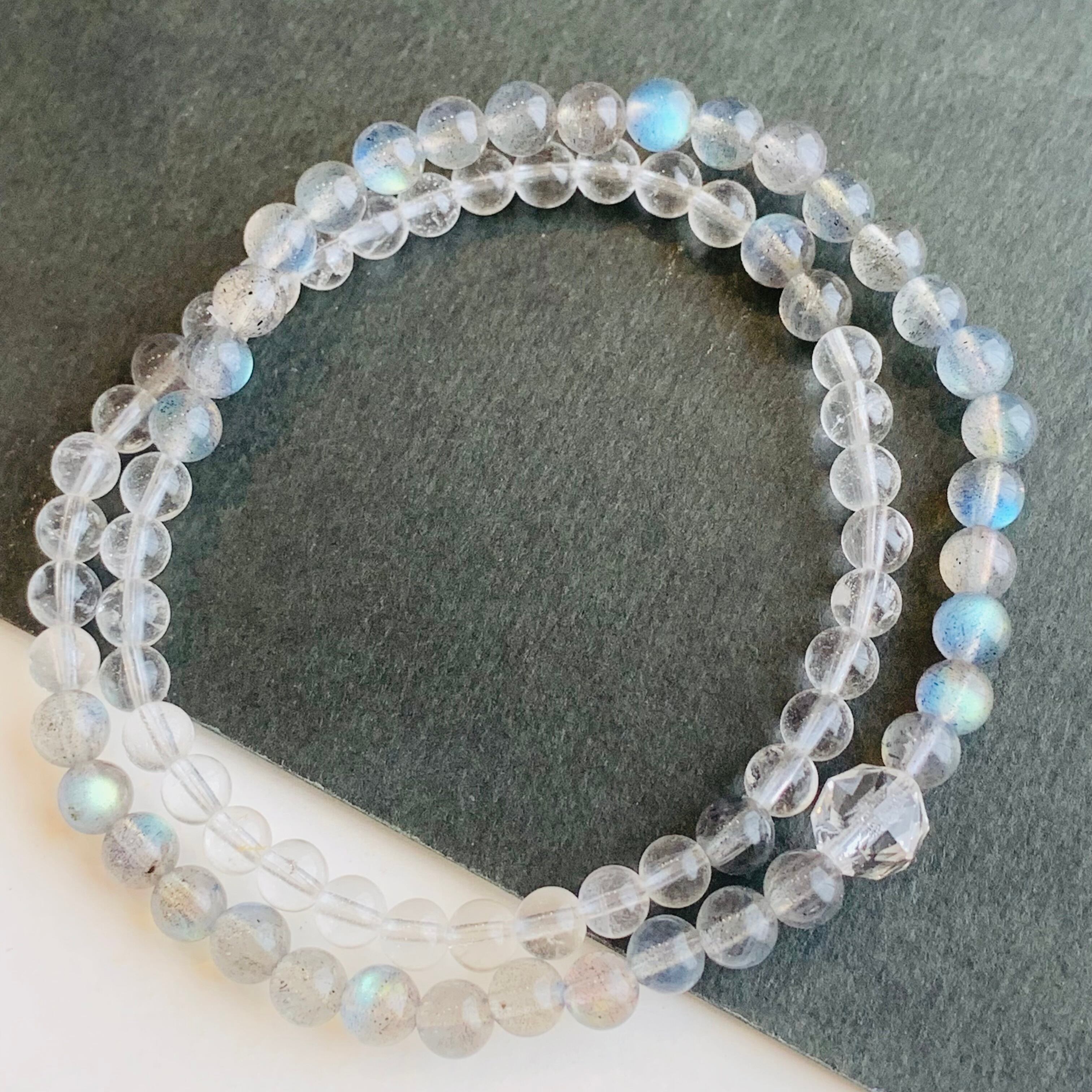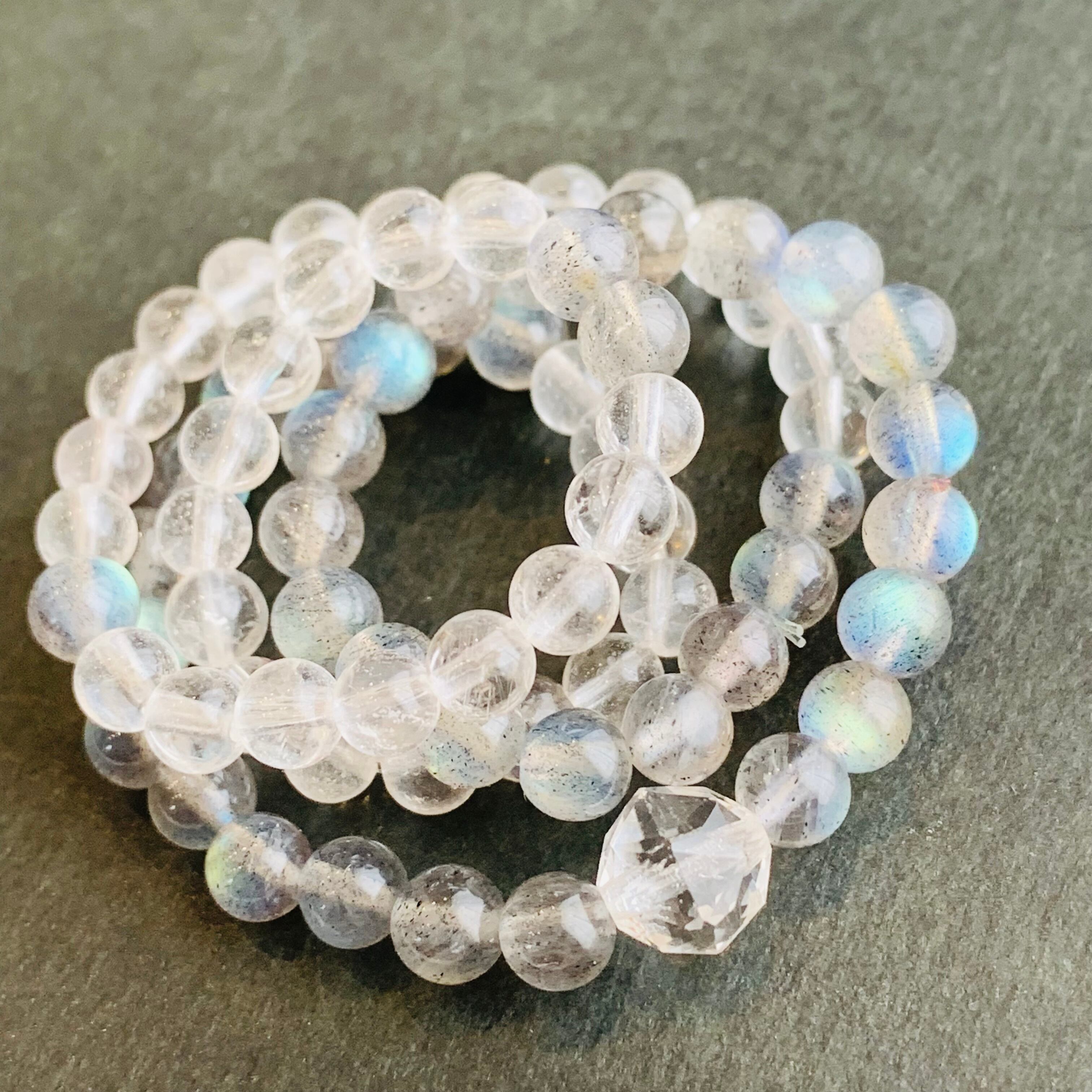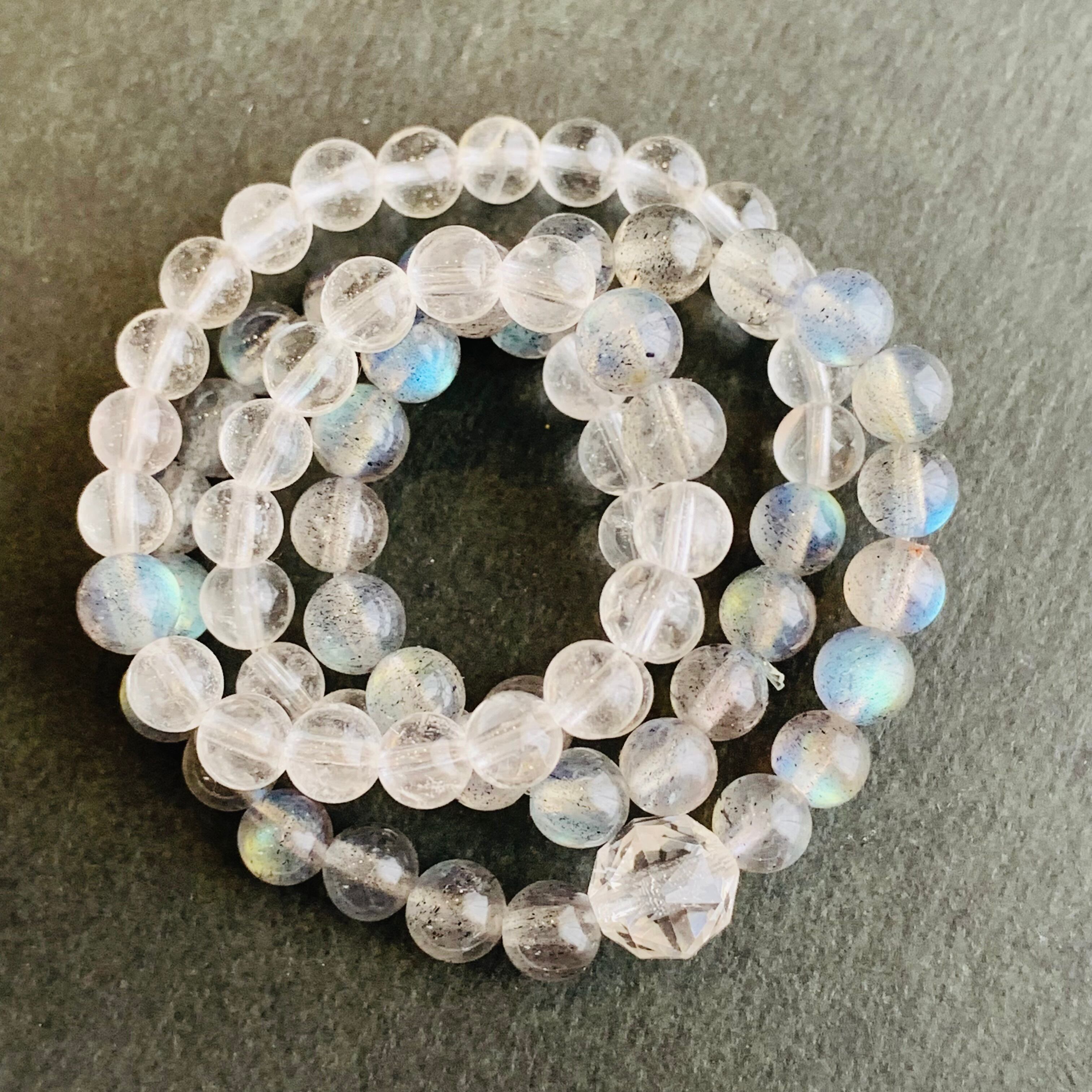 天然水晶とラブラドライト(ムーンストーン)メインにインド産クリスタルスターカット1粒の2連ブレスレット