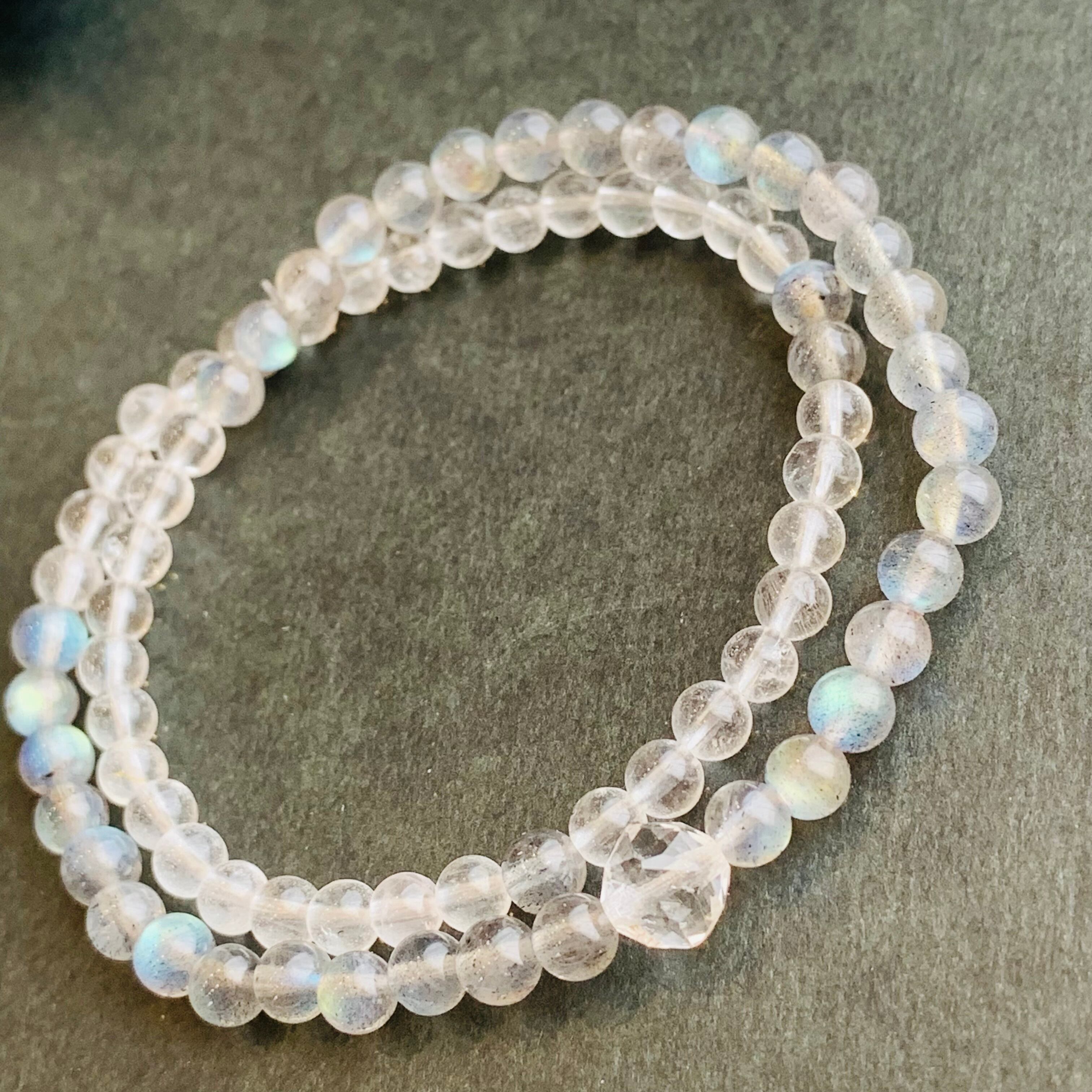 天然水晶 クリスタルとラブラドライトの2重巻きブレスレット B21