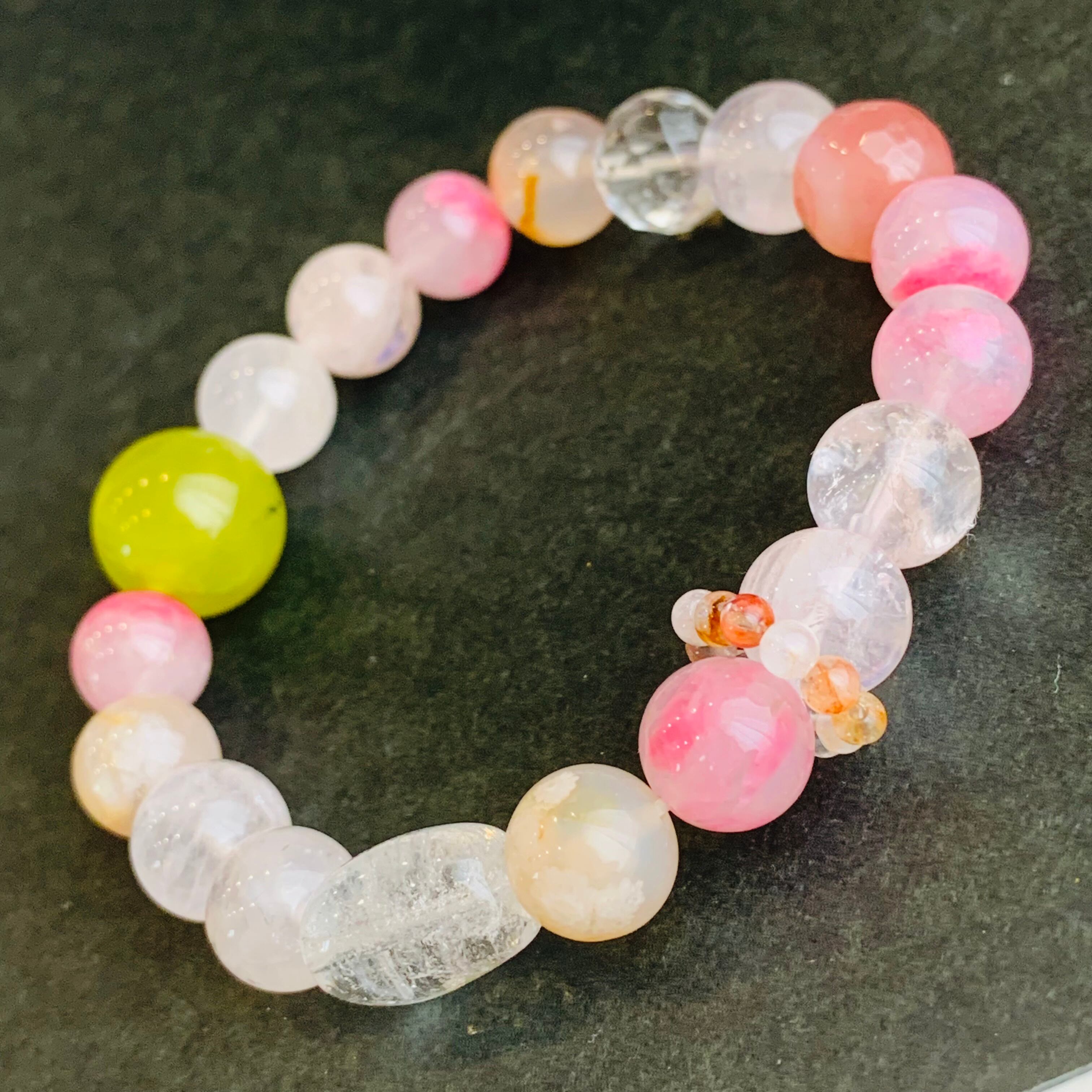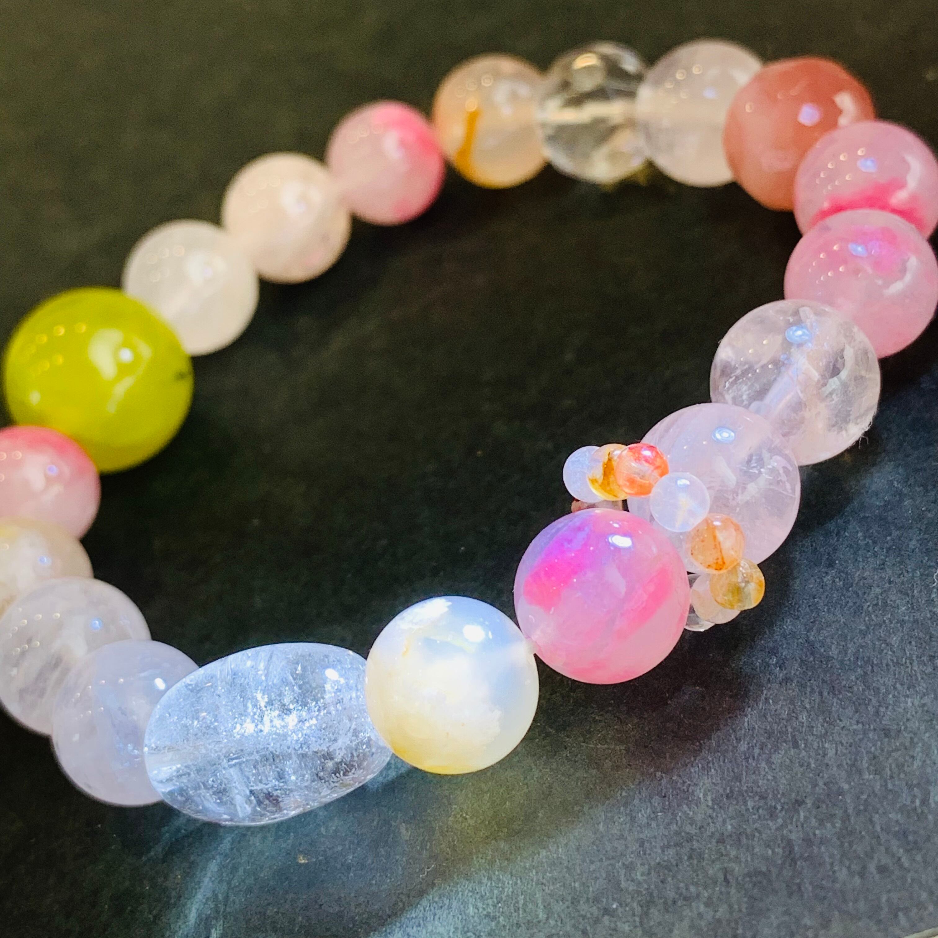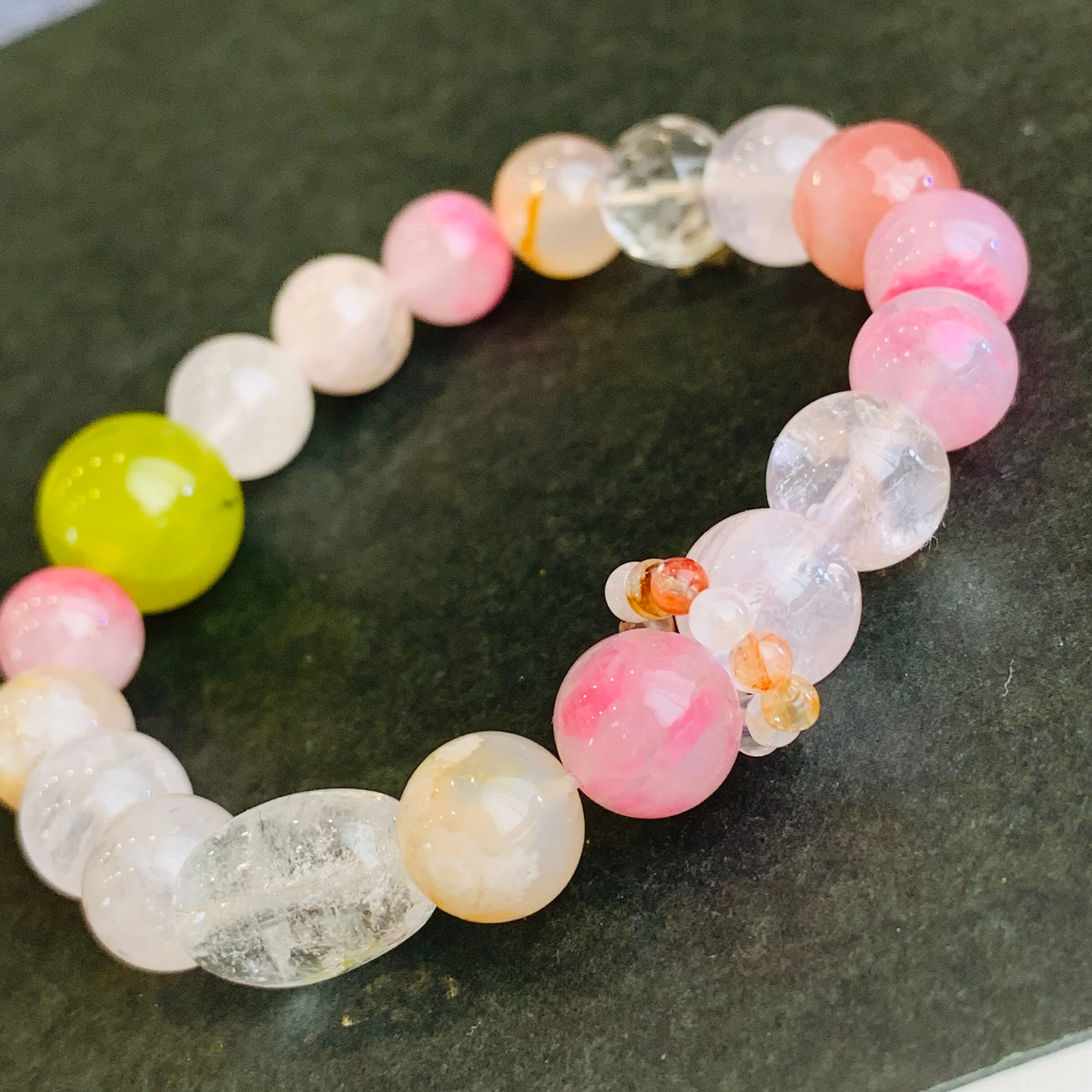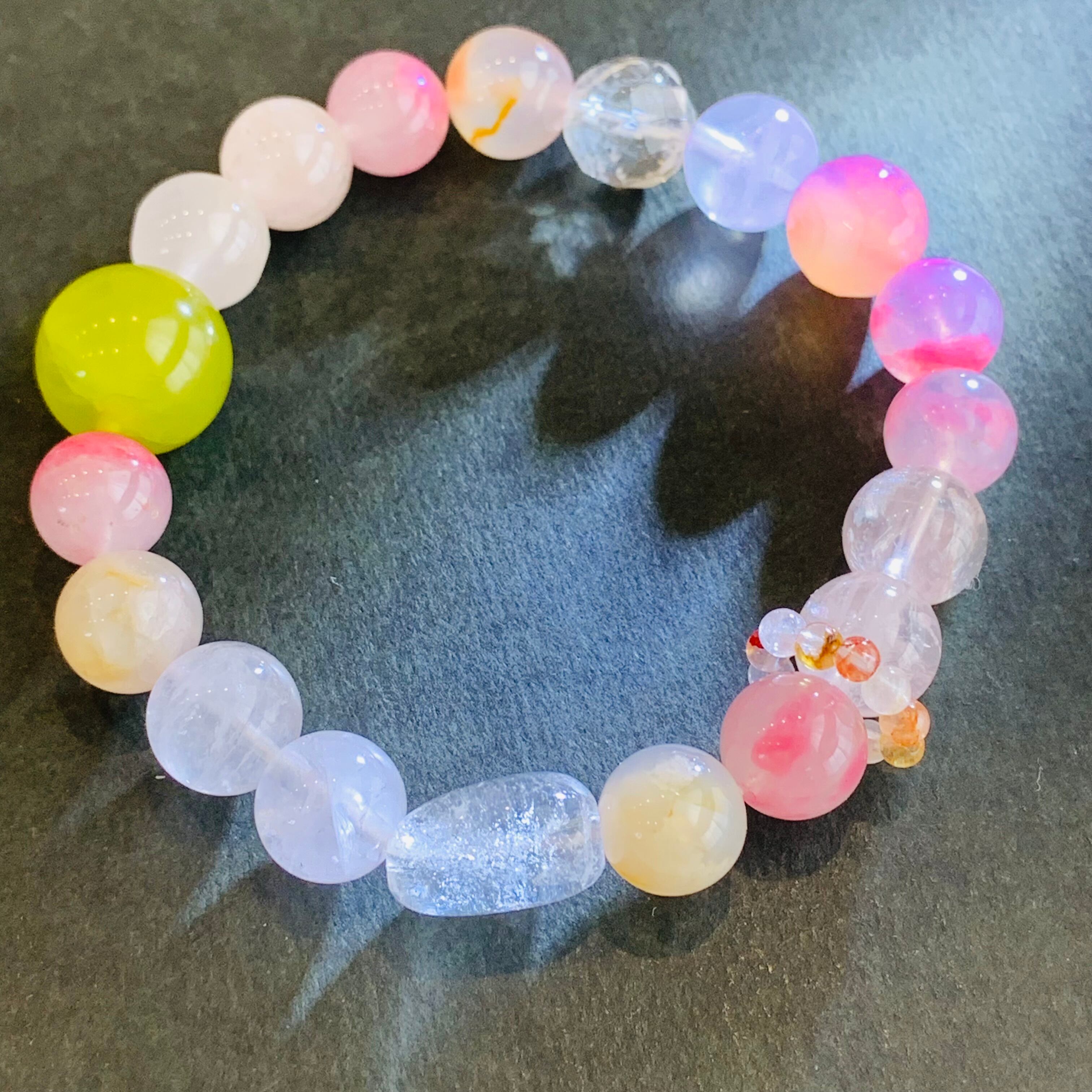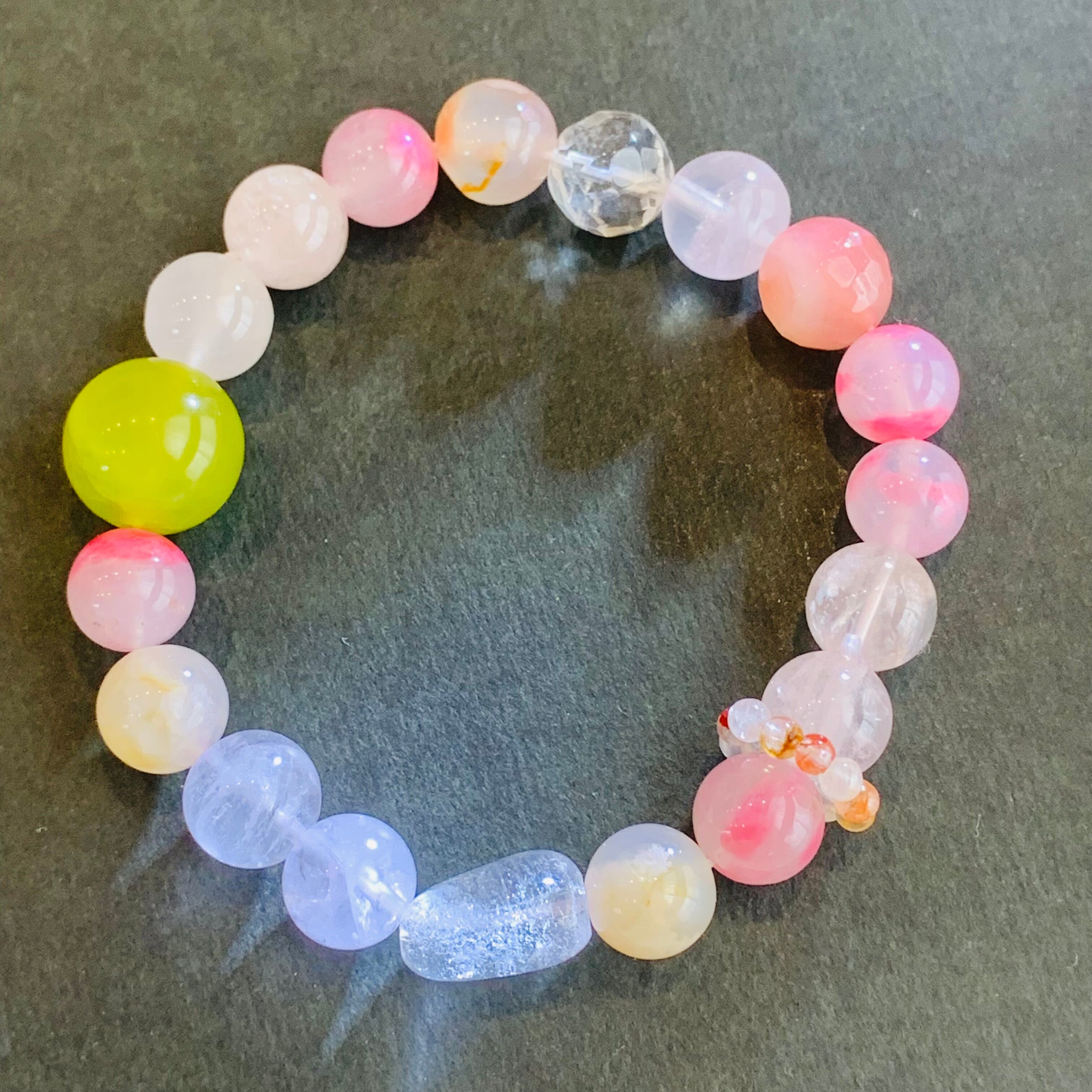 16cm ミックス水晶ブレスレット 春カラー