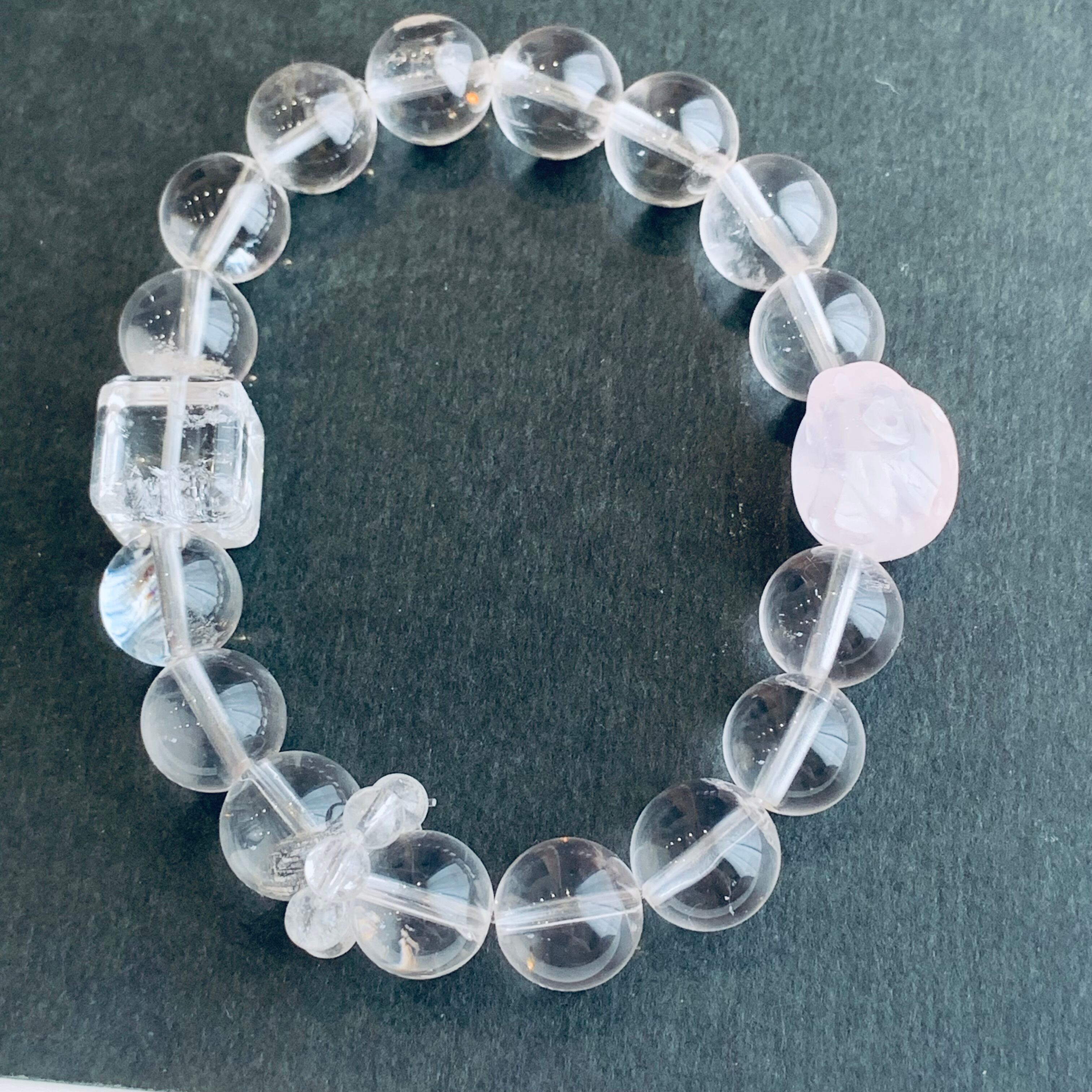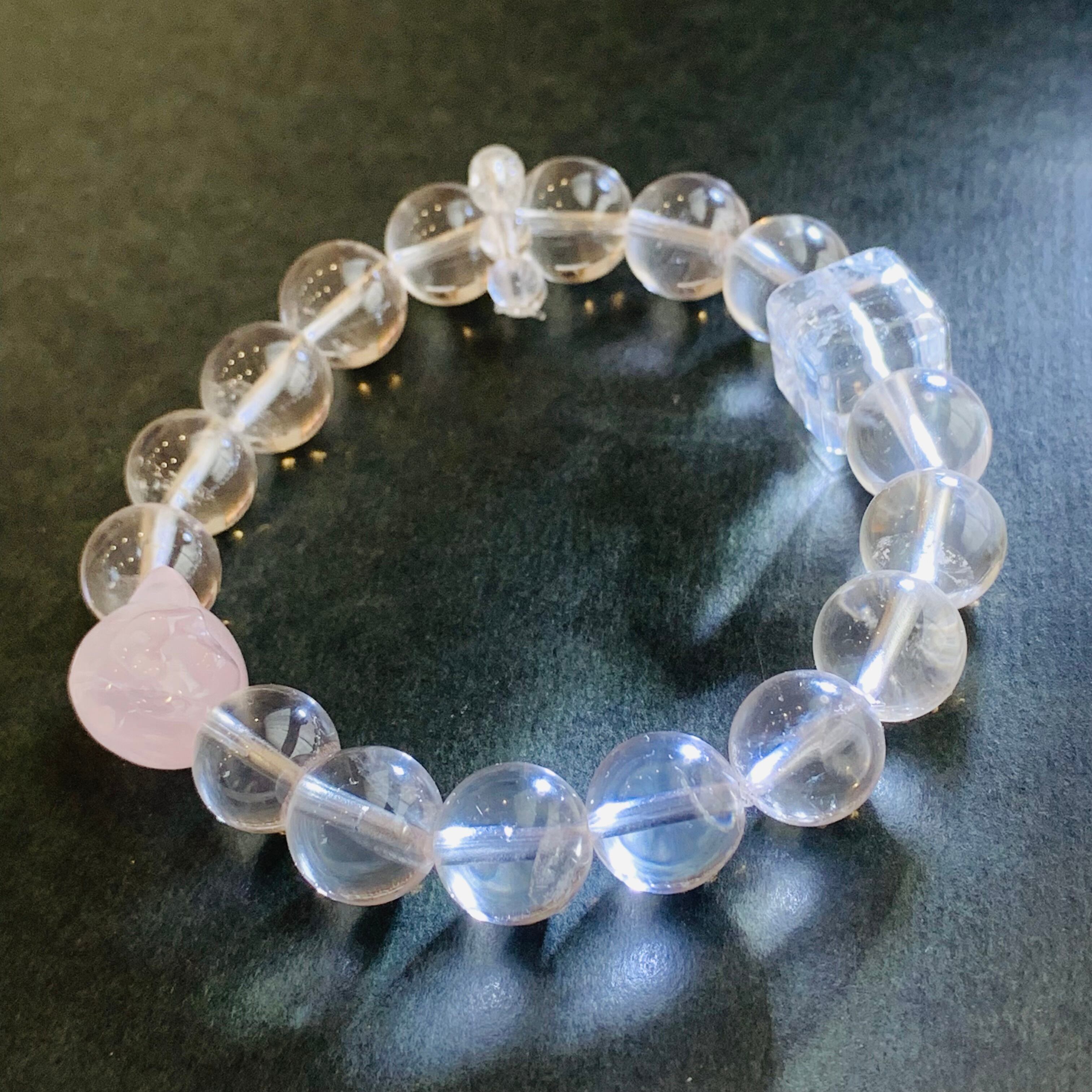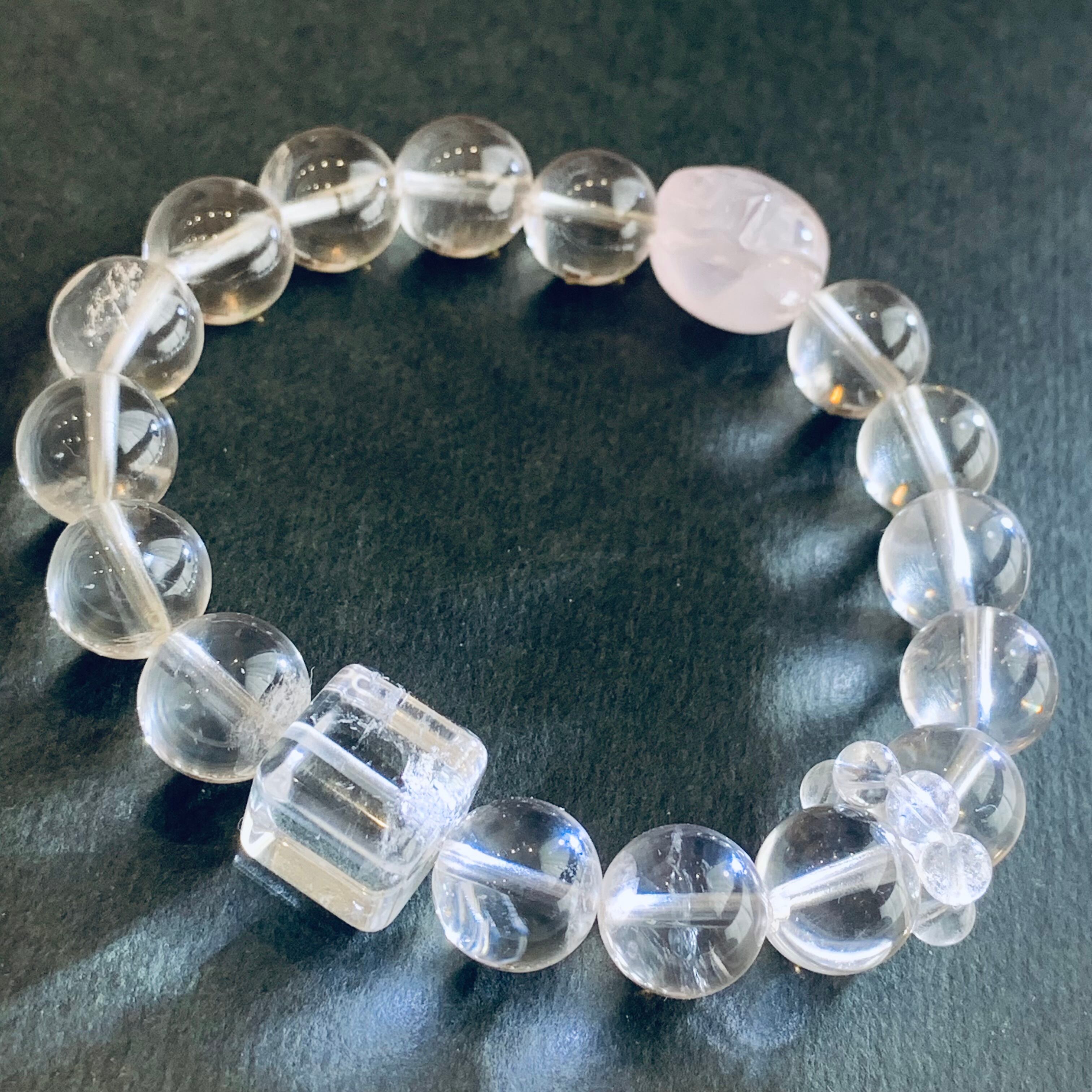 ヒマラヤクォーツブレスレット ローズクォーツ入り 天然クリスタル B24