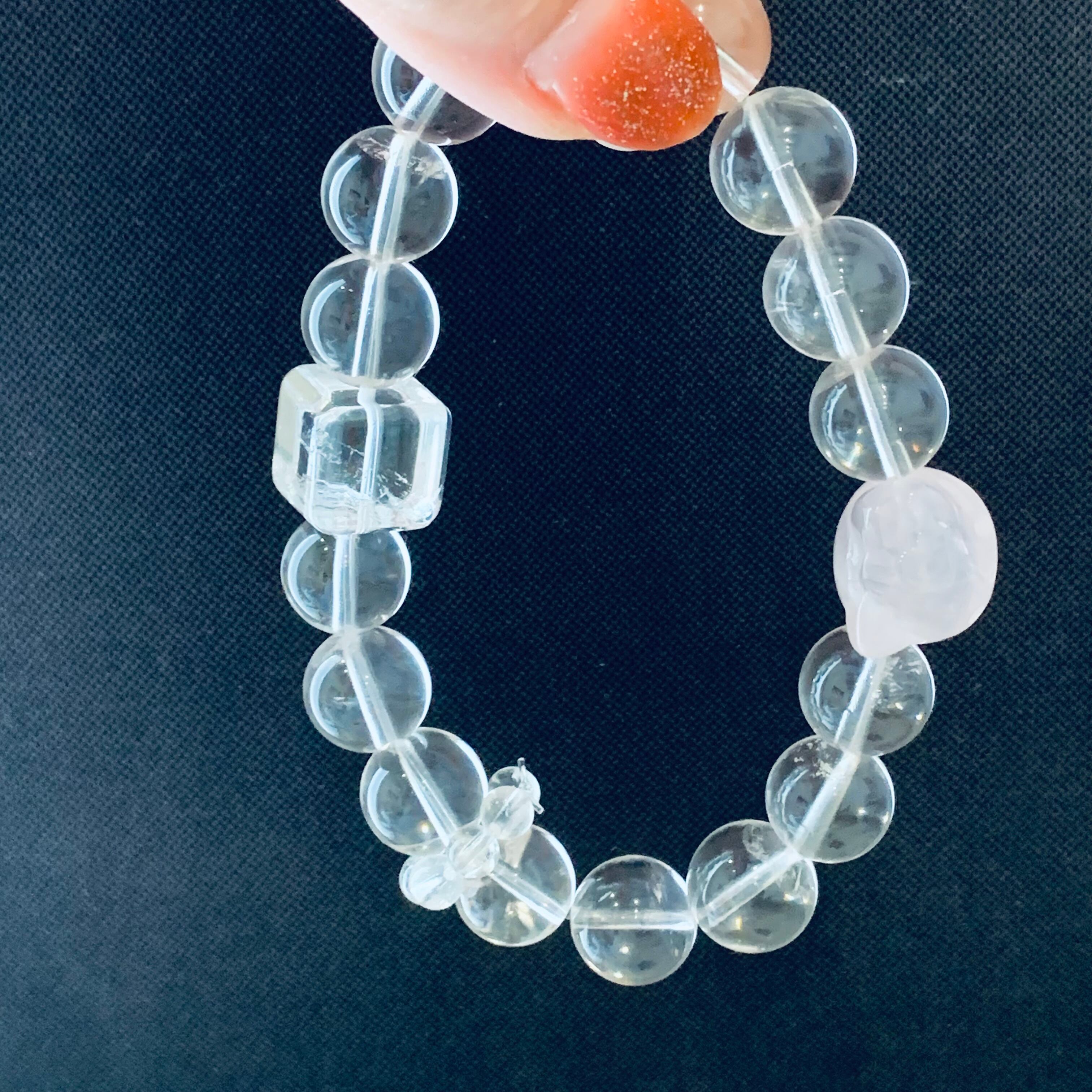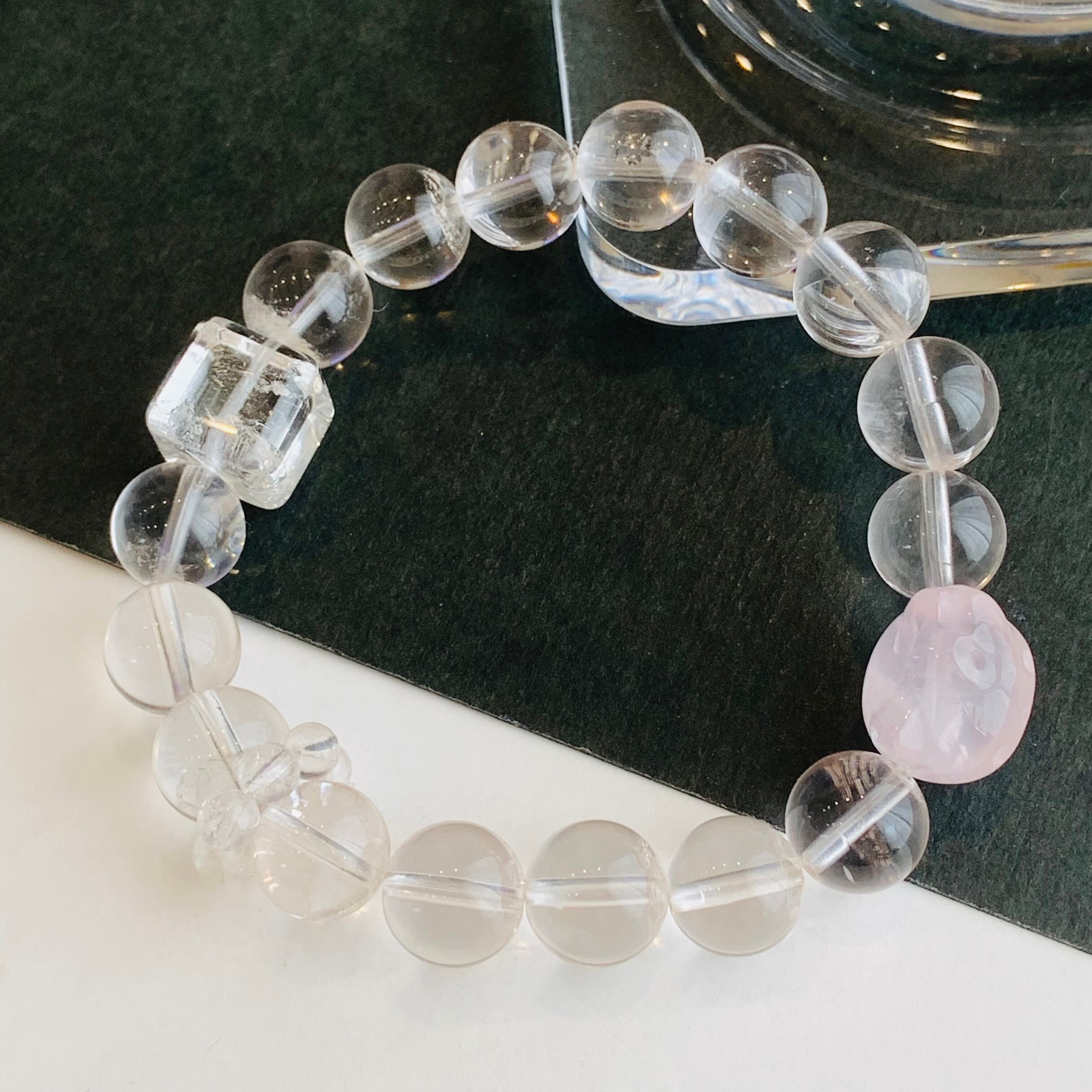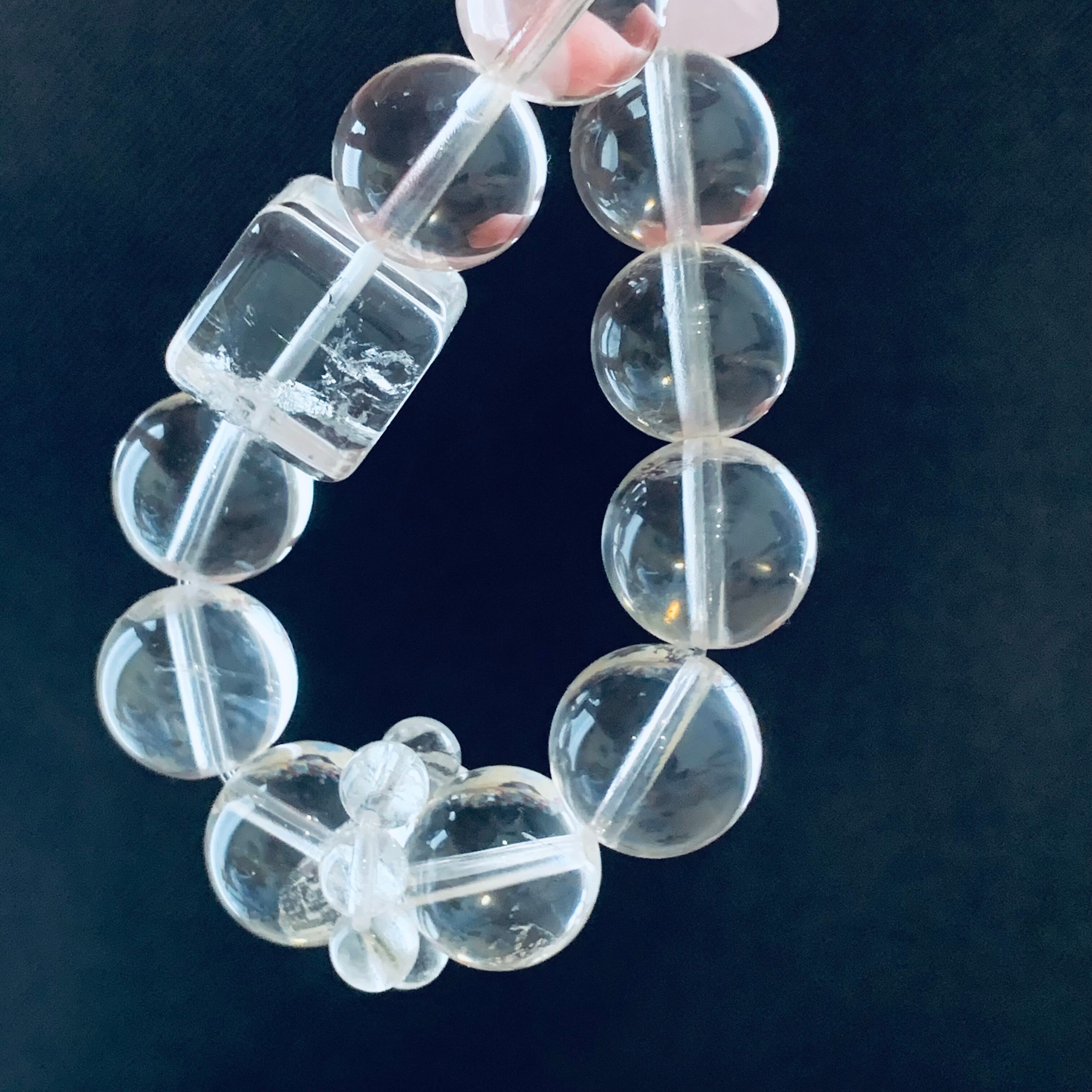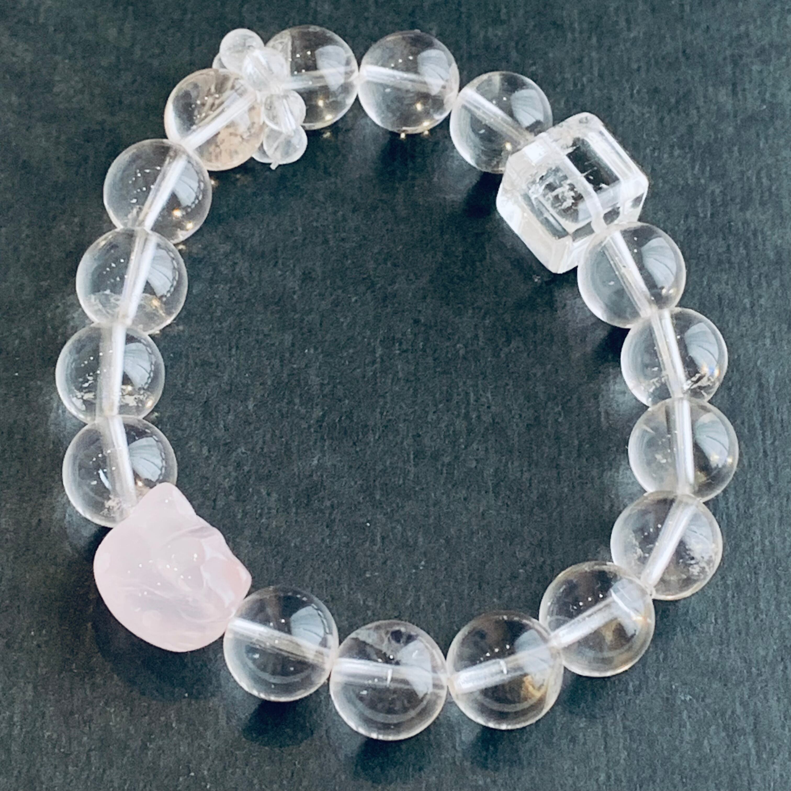 ヒマラヤクォーツブレスレット ローズクォーツ入り 天然クリスタル B24