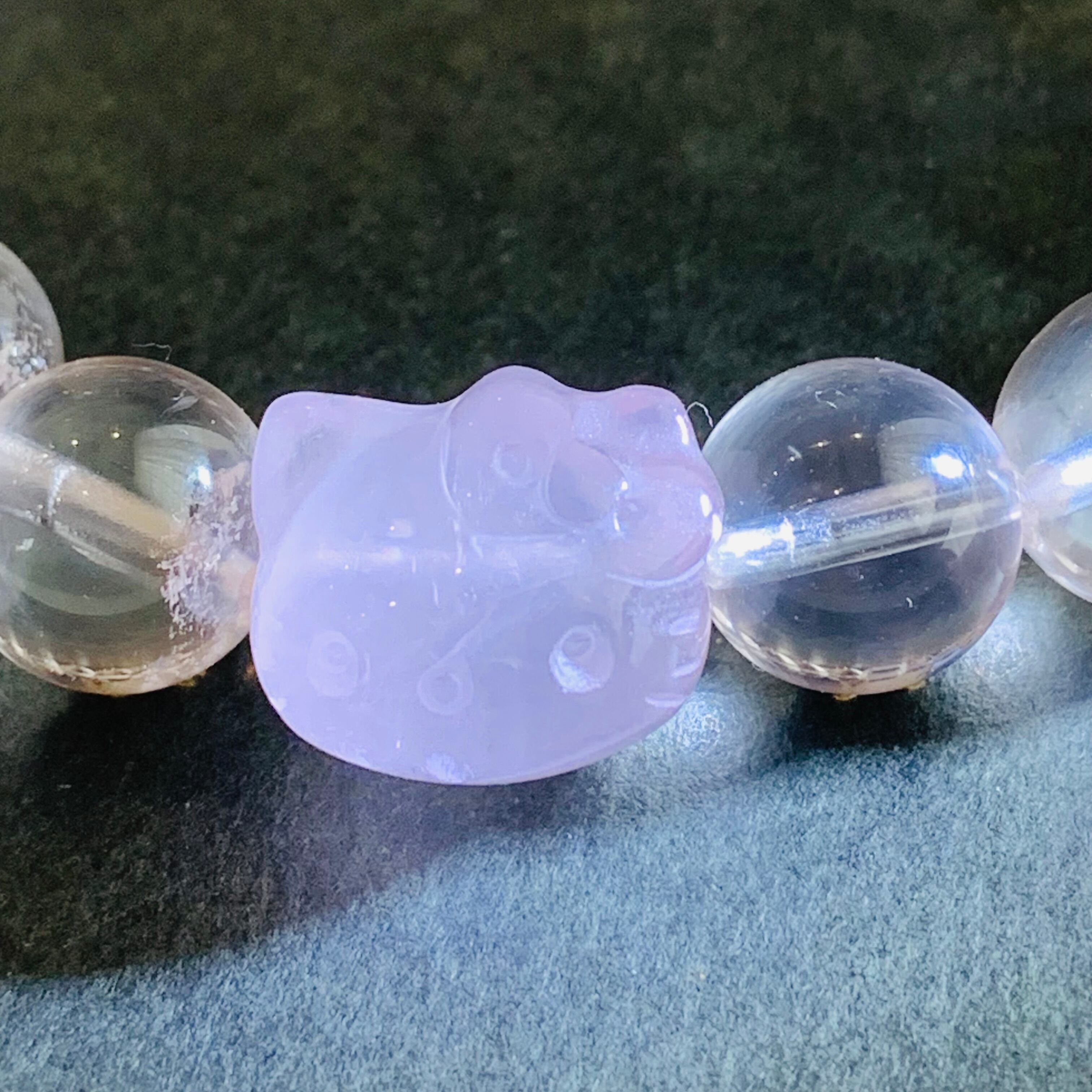 11ミリ丸玉のヒマラヤクォーツにローズクォーツの猫珠1粒