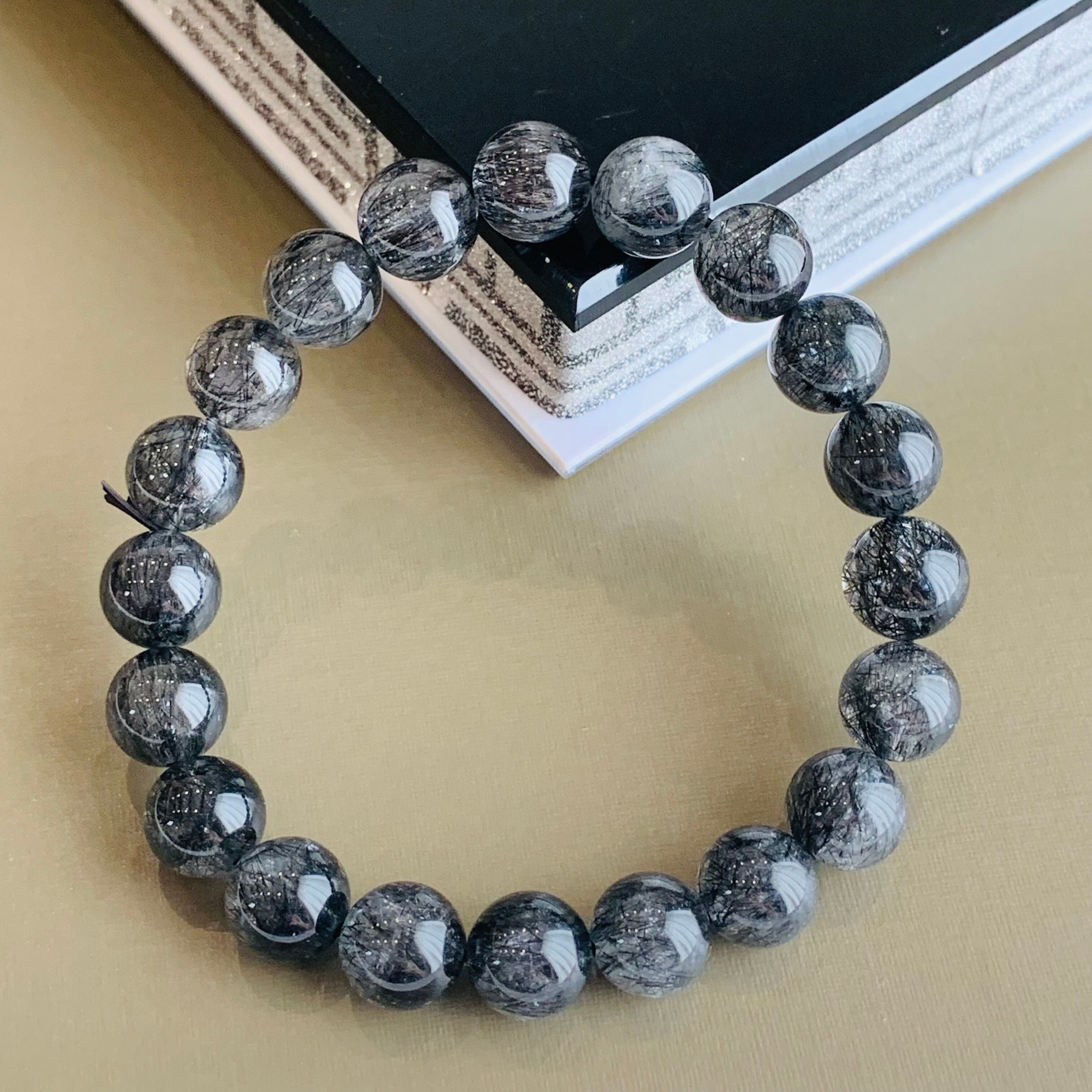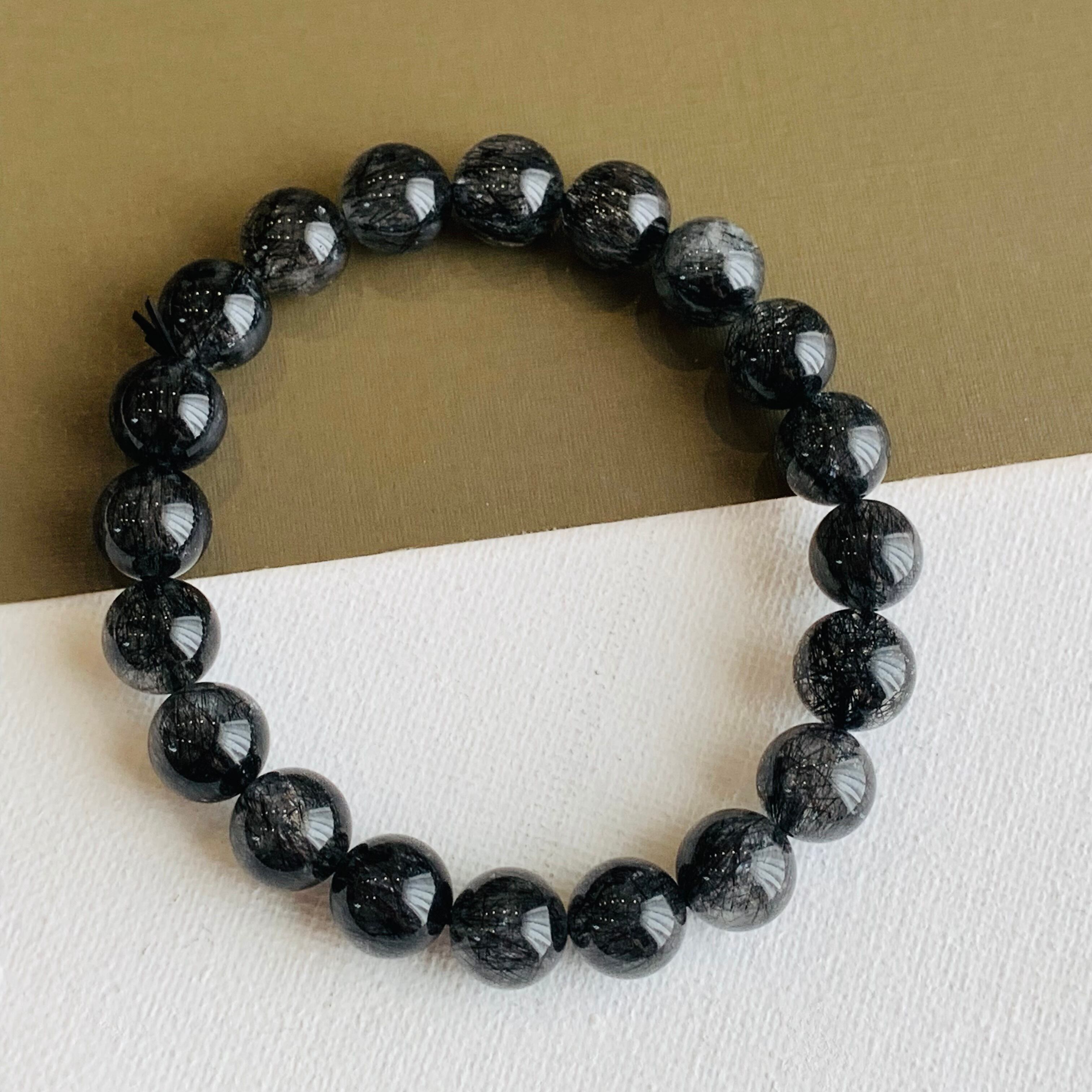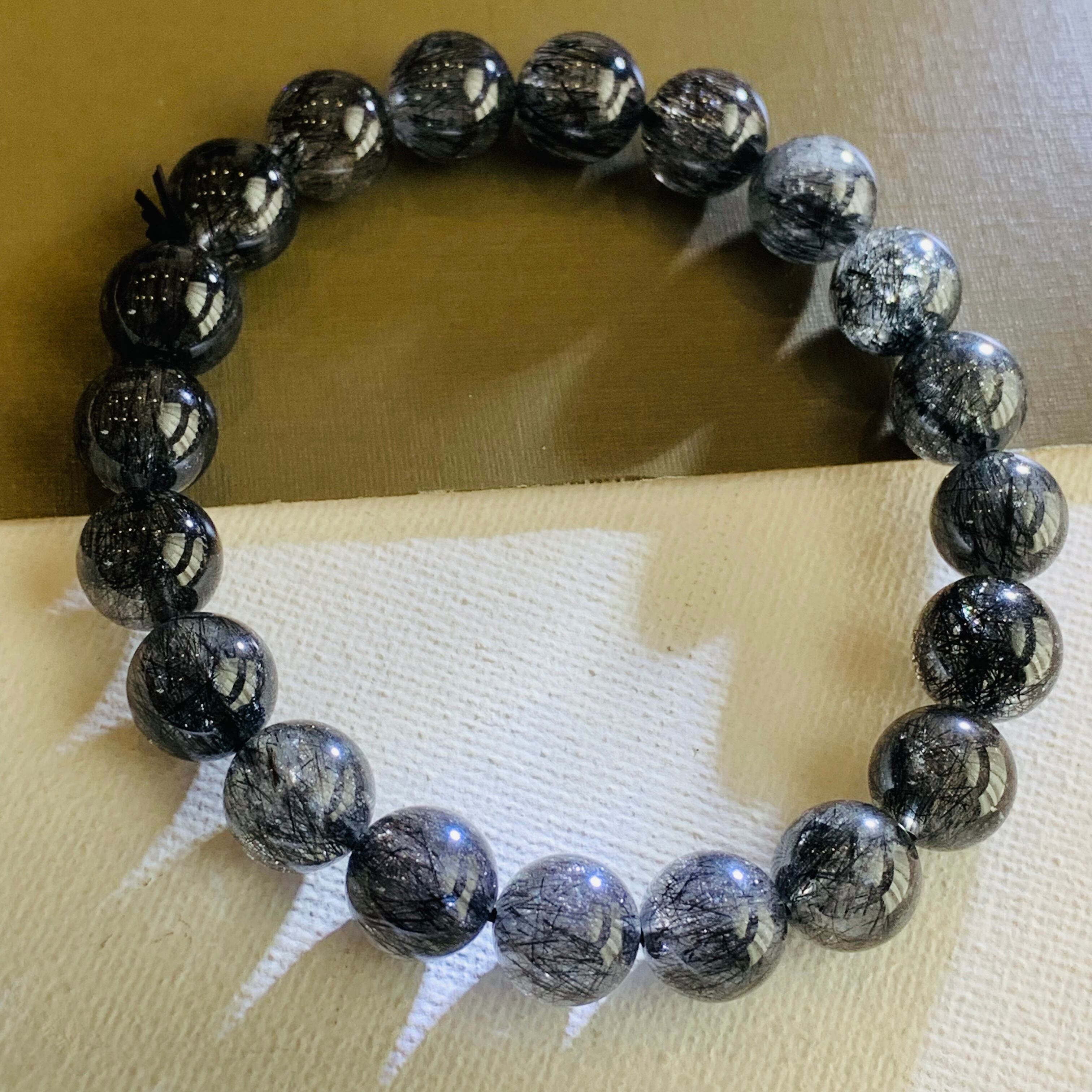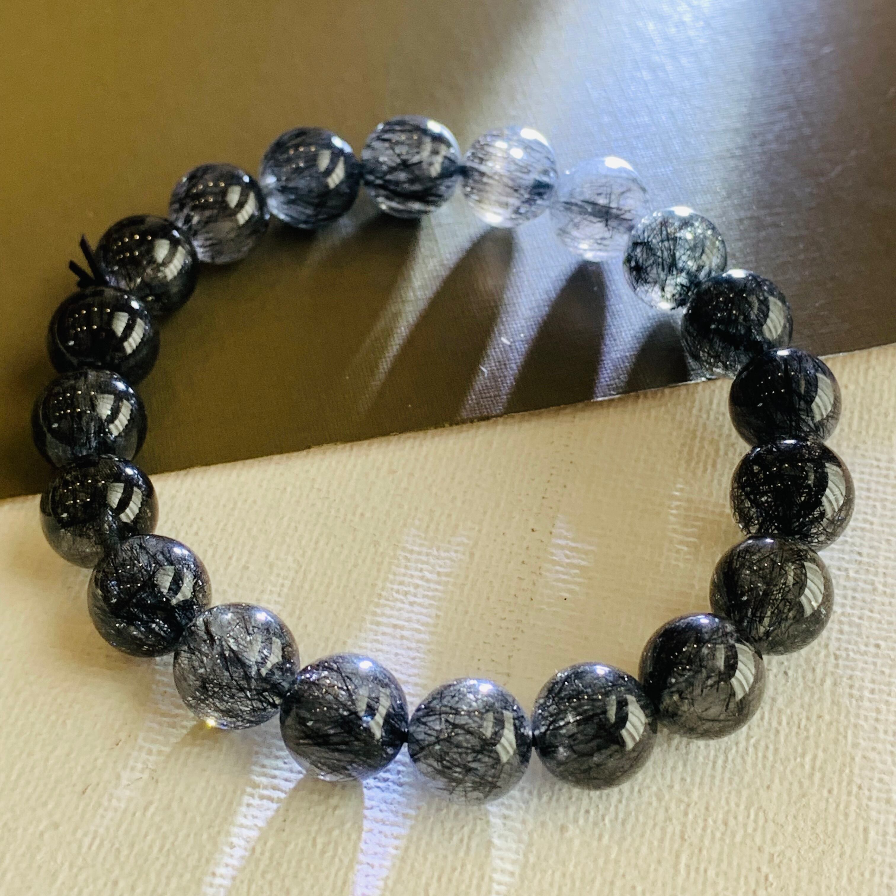 ブラックルチルクォーツ 10㍉黒髪晶 ブレスレット 天然石 K159